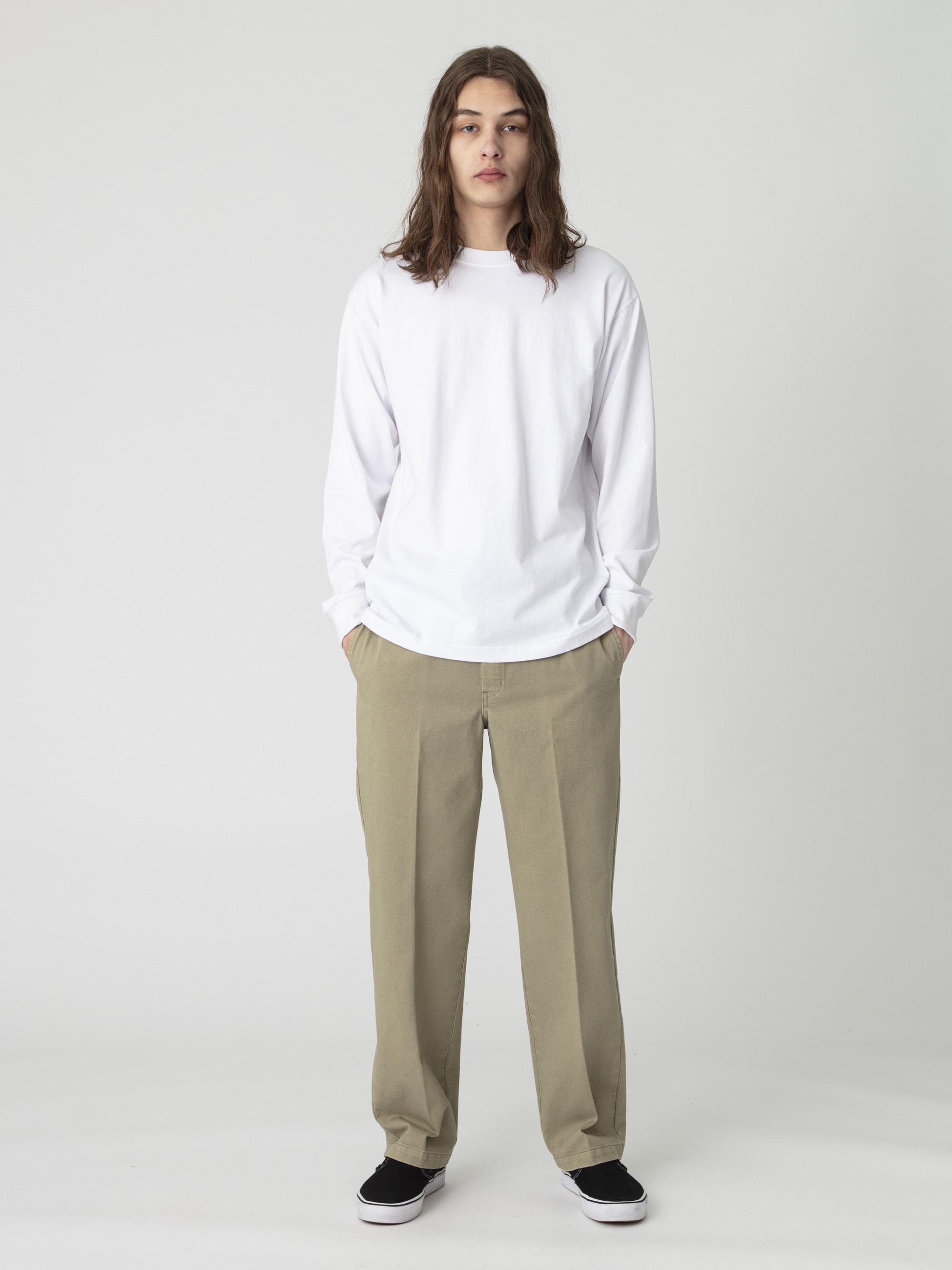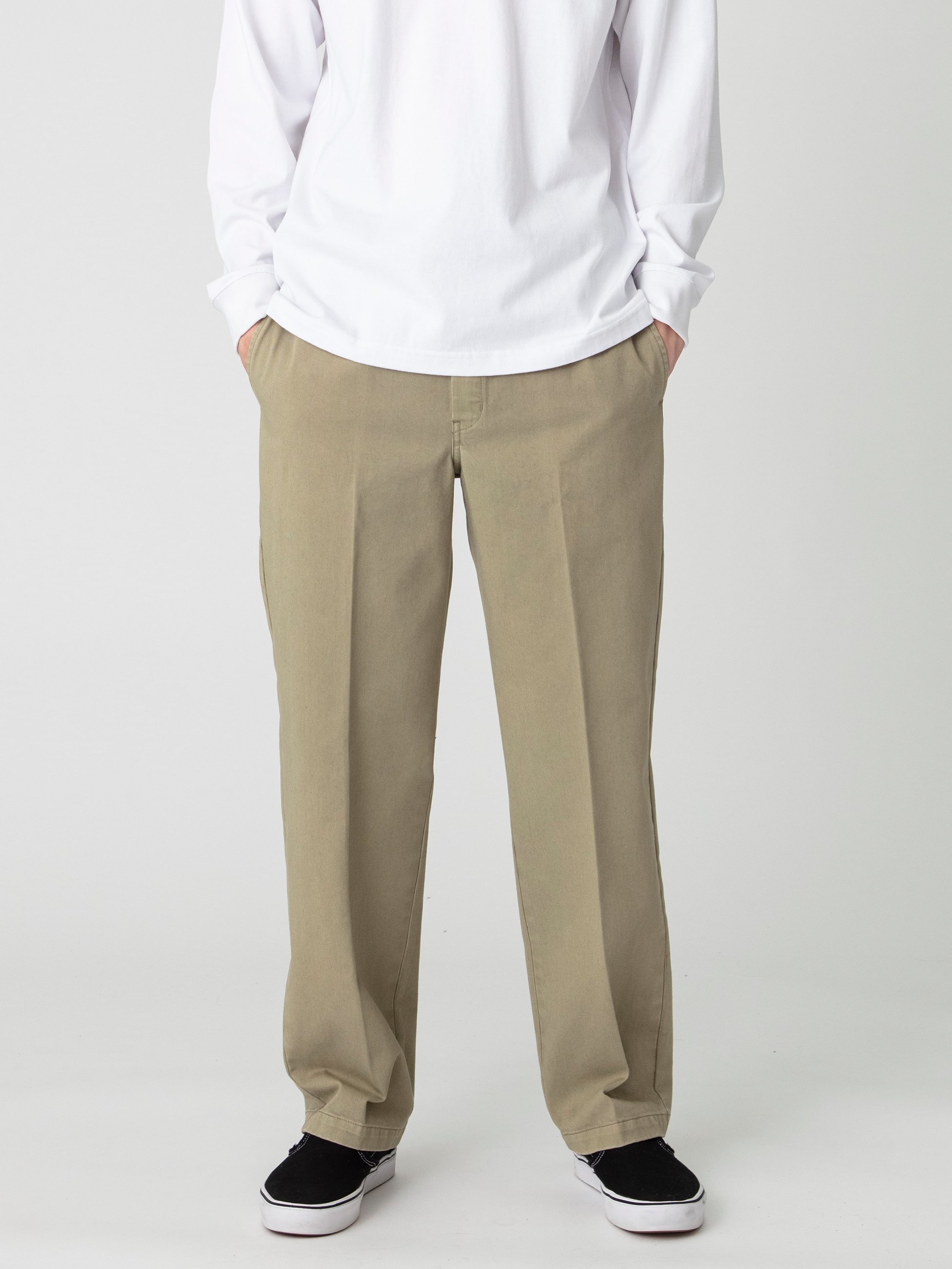 OUTERKNOWNのクリエイティブ・ディレクターであるジョン・ムーアが幼いころから愛用しているDickiesのチノパンツをベースに、特別に製作されたコラボレーションパンツの登場です。オーガニックコットン100%の生地を採用し、こだわりのテーパードフィットへアップデートしたタイムレスでカリフォルニアらしさが漂うアイテムです。また、今回のためだけに作られたヴィンテージ加工を施したオリジナルカラビナを付属し、同系色のバックラベルにOUTERKNOWNとDickiesのWネームのロックアップが描かれた細部までこだわった作りです。洗練されたデザインとアウトドアへの情熱を融合したスペシャルなアイテムをお楽しみください。