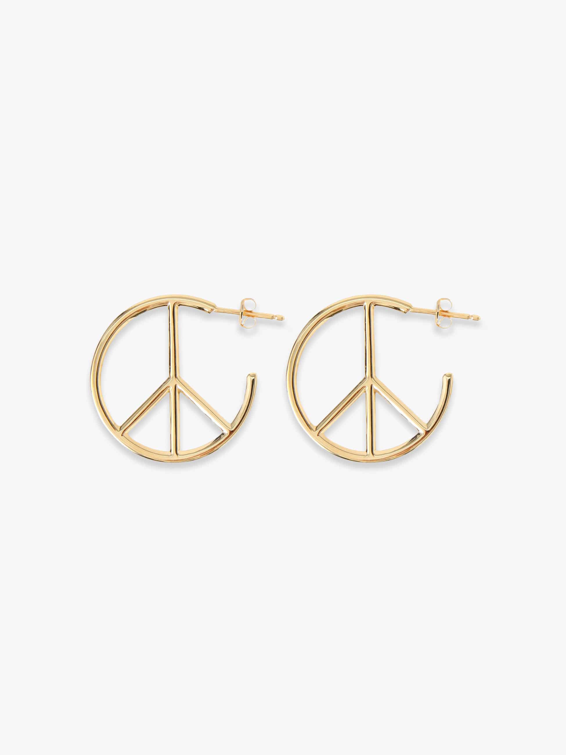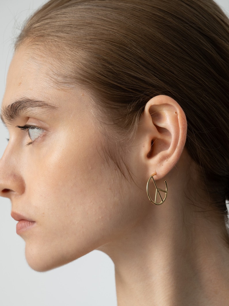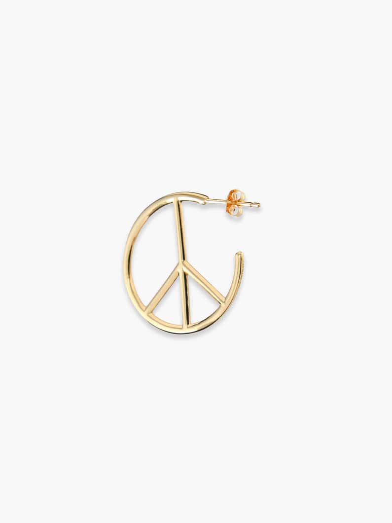 - 18Kイエローゴールドを贅沢に使用したピースモチーフのフープピアスは、丸みを帯びたシルエットが女性らしさをプラスし、普遍的で華やかな輝きが存在感を醸します。綺麗めなコーディネートのさりげない外しアイテムとしてもおすすめです