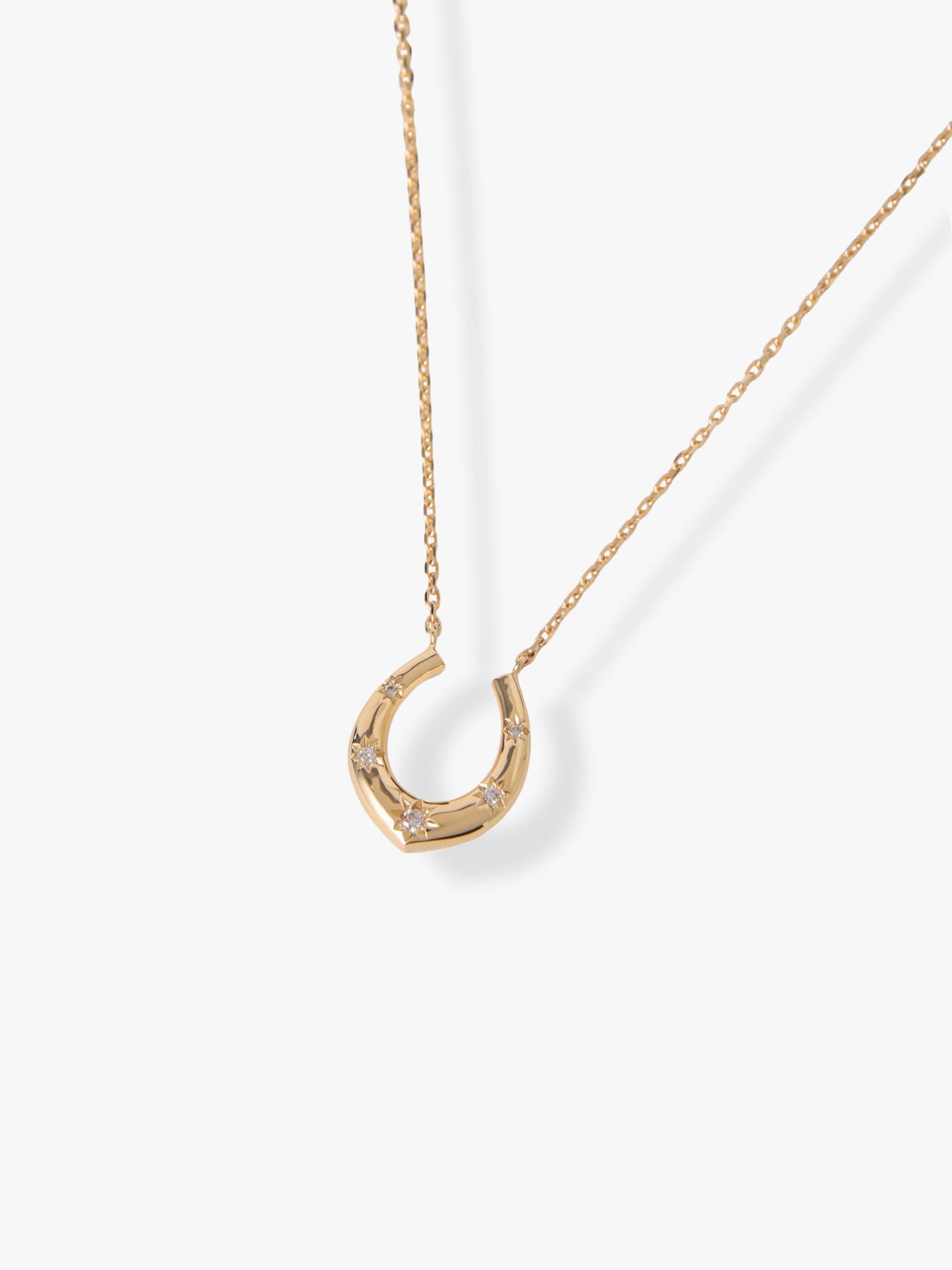 - ラッキーモチーフの定番となったホースシューシリーズから、新デザインが登場です。18Kイエローゴールドを贅沢に使用し、立体感のあるフォルムに仕上げたホースシューネックレスは、5粒のダイヤモンドがあしらわれ、上質な輝きを放ちます。身につけるだけで華やかさを引き立て、世代を超えて永く愛用いただけるジュエリーです。