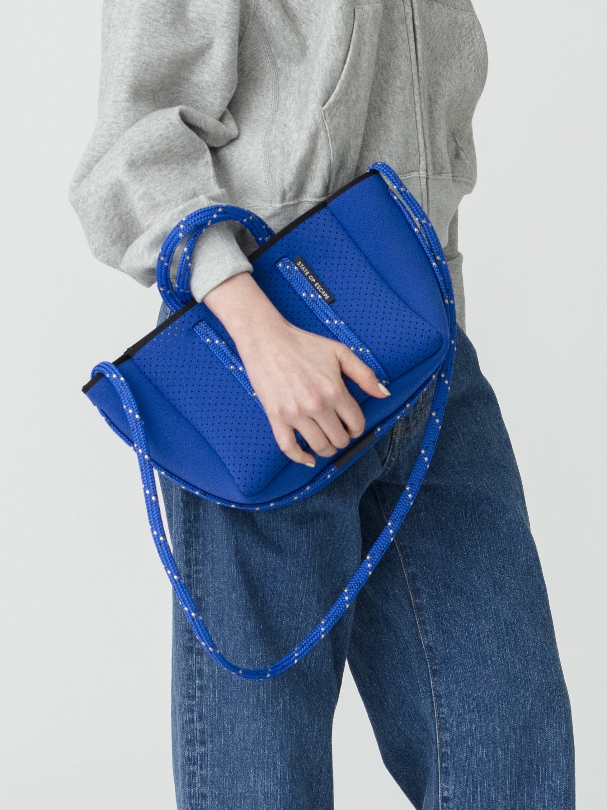 STATE OF ESCAPE(ステート オブ エスケープ)は、2013年にBrigitte MacGowanとDesley Maidmentがオーストラリアでスタートしたハンドメイドバッグブランドです。“ユニークかつエッジーで、美しくデザイン性のあるキャリーオールを作る”というコンセプトのもと、色鮮やかで印象的なバッグを展開しています。軽量で柔らかく肌当たりのよいネオプレン素材のボディに、ショルダーとしてセーリングロープを使用した全てのコレクションは、超軽量でありながら頑丈で、コンパクトに畳め、水洗いが出来る使いやすさも兼ね備えています。 - サイズガイド(cm)