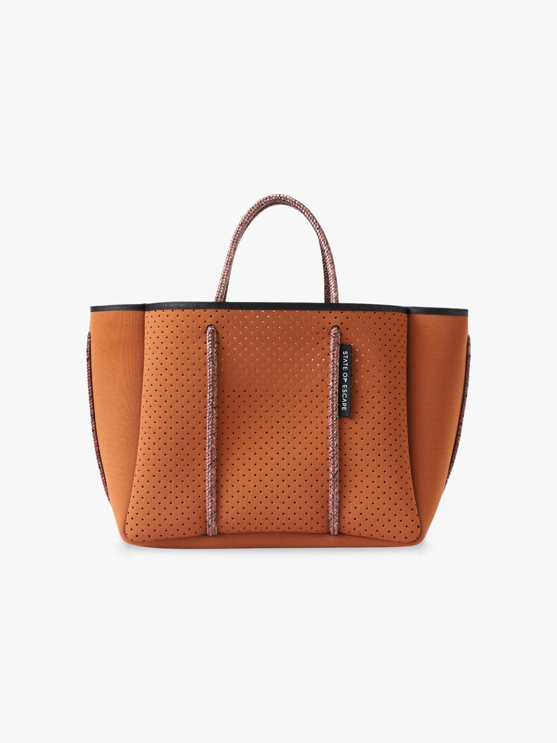 STATE OF ESCAPE(ステート オブ エスケープ)は、2013年にBrigitte MacGowanとDesley Maidmentがオーストラリアでスタートしたハンドメイドバッグブランドです。“ユニークかつエッジーで、美しくデザイン性のあるキャリーオールを作る”というコンセプトのもと、色鮮やかで印象的なバッグを展開しています。軽量で柔らかく肌当たりのよいネオプレン素材のボディに、ショルダーとしてセーリングロープを使用した全てのコレクションは、超軽量でありながら頑丈で、コンパクトに畳め、水洗いが出来る使いやすさも兼ね備えています。 -