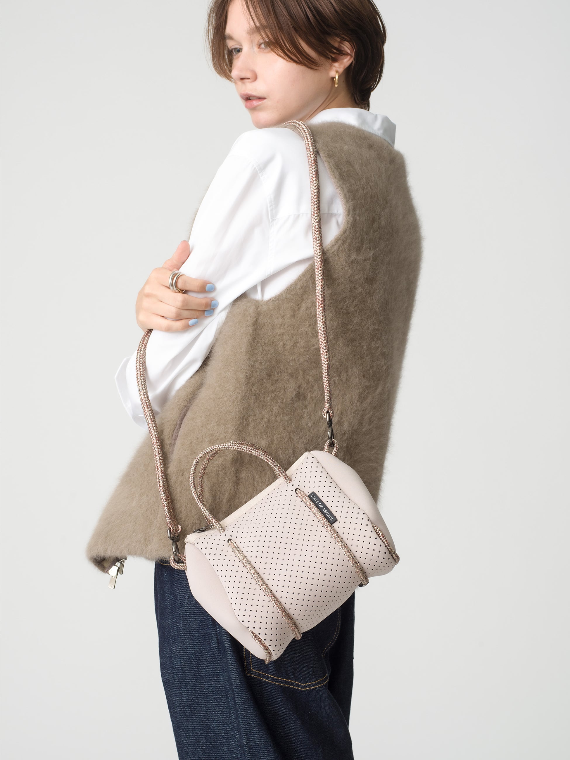 - スタイリッシュかつ自然と馴染む丸みのあるフォルムが魅力のPrequelは、STATE OF ESCAPE定番人気のシリーズです。持ち手は耐久性と操作性に優れたセーリング用のロープを使用しており、ストラップは取り外しが可能、ハンドバッグとショルダーバッグの2wayでご使用いただけます。財布やポーチなどの必需品をしっかりと収納できるサイズ感で、安心のファスナー仕様で旅行にもおすすめの万能バッグです。