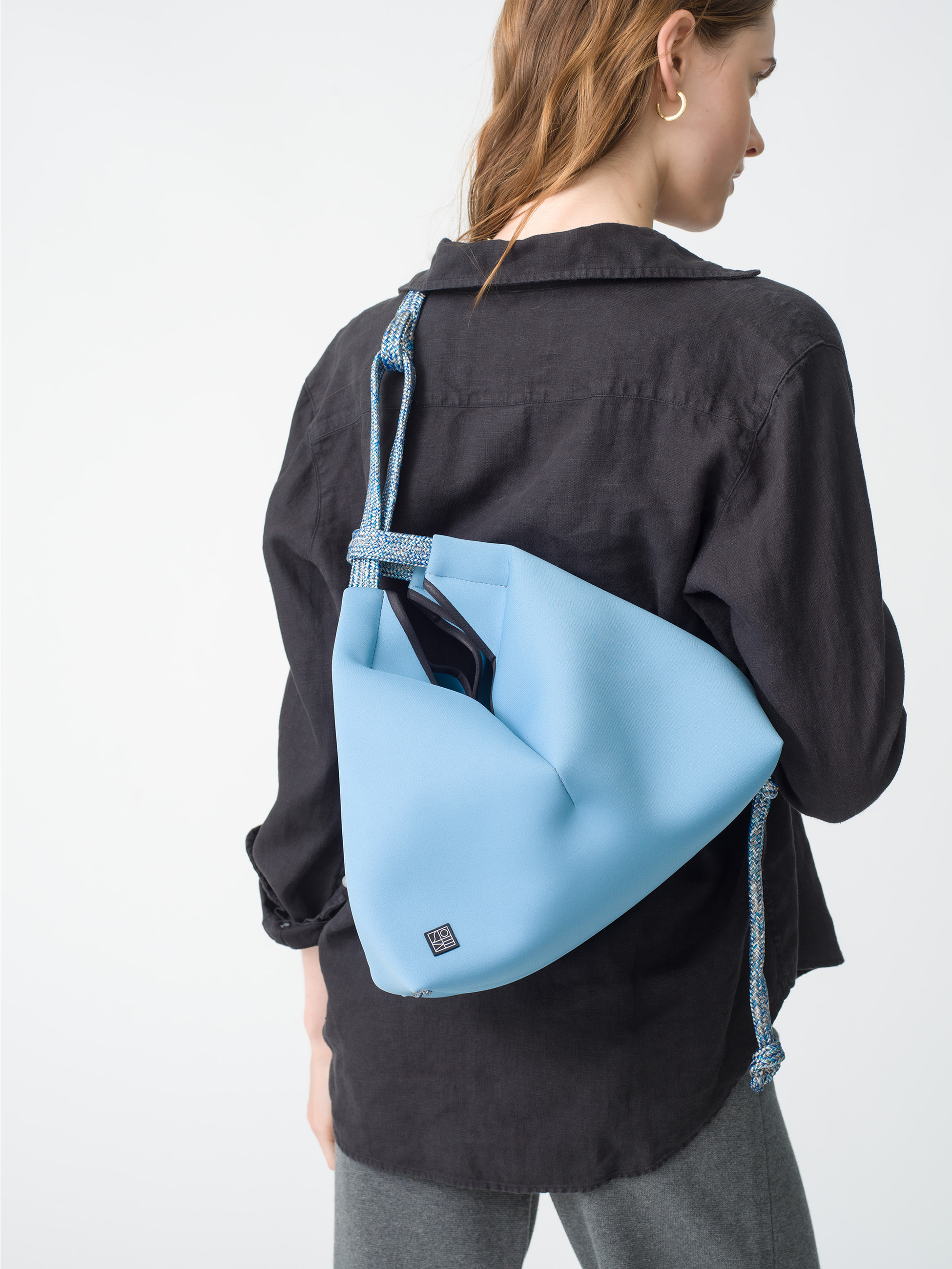 リサイクルポリエステルとカキ殻から作られたバイオベース素材を使用し、従来のSTATE OF ESCAPEのネオプレン素材よりも柔らかくしなやかな肌当たりが特徴のSolstice(ソルスティス)シリーズのミニリュックサックモデルです。肩掛けや、背中にクロスボディで背負うこともできる自由自在なスタイルで、ロープは体にしっかりとフィットするよう調整可能です。従来のソルスティスリュックサックよりもコンパクトなサイズ感で、身軽にお出かけしたいときにぴったりのバッグです。