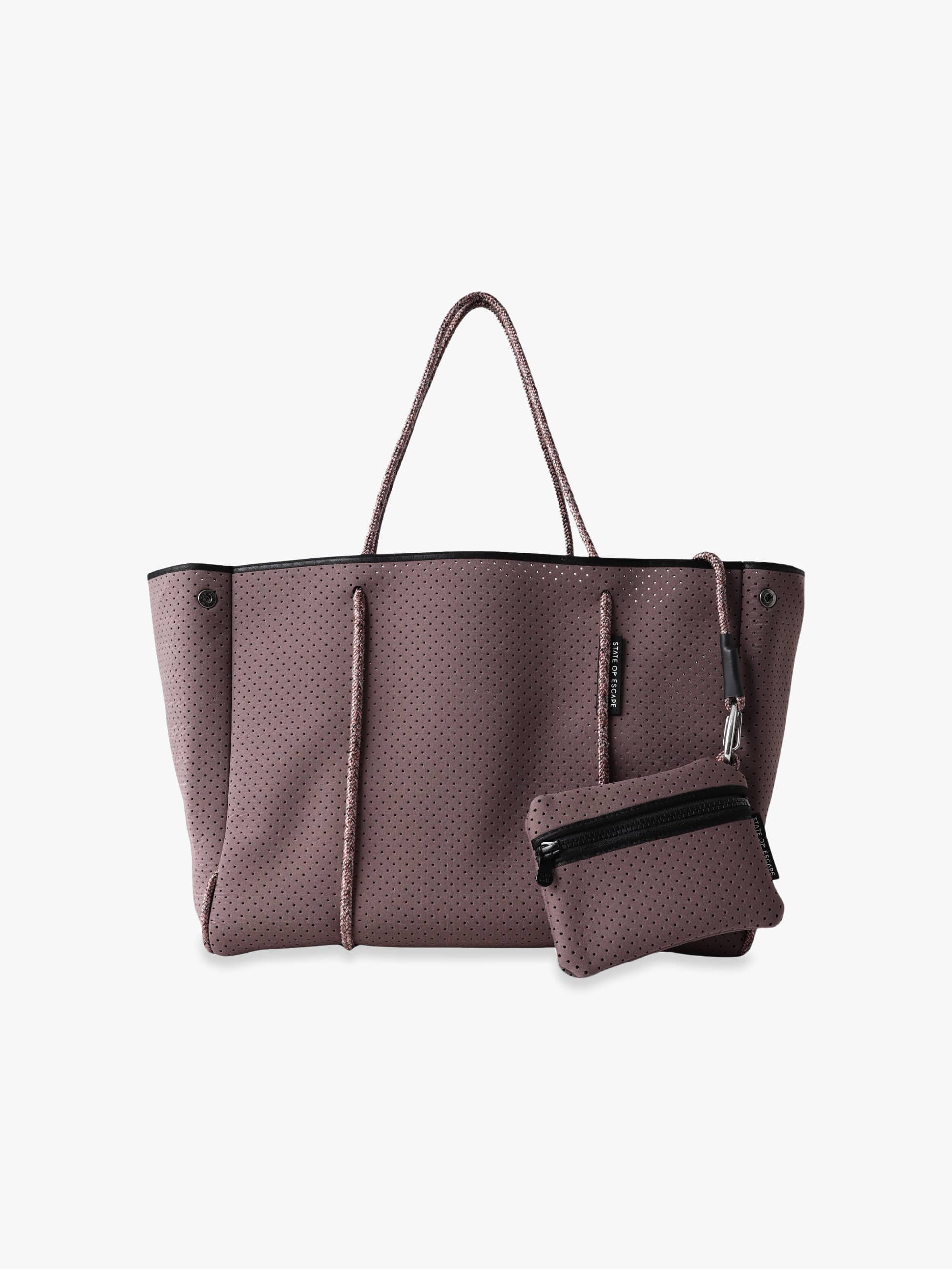 - STATE OF ESCAPEのシグネチャーアイテムでもある、トレンドに左右されないエレガントな佇まいのEscapeは、ノートパソコンが収まるたっぷりとしたサイズ感が特徴で、サイドのスナップボタンを留めて、スタイリングや物量によってシルエットをコンパクトに変えていただけます。持ち手は耐久性と操作性に優れたセーリング用のロープを使用しており、取り外しが可能な同素材のミニポーチが付いているのも嬉しいポイント。旅行はもちろん、デイリーシーンからアウトドアシーンまで幅広く活躍する万能バッグです。