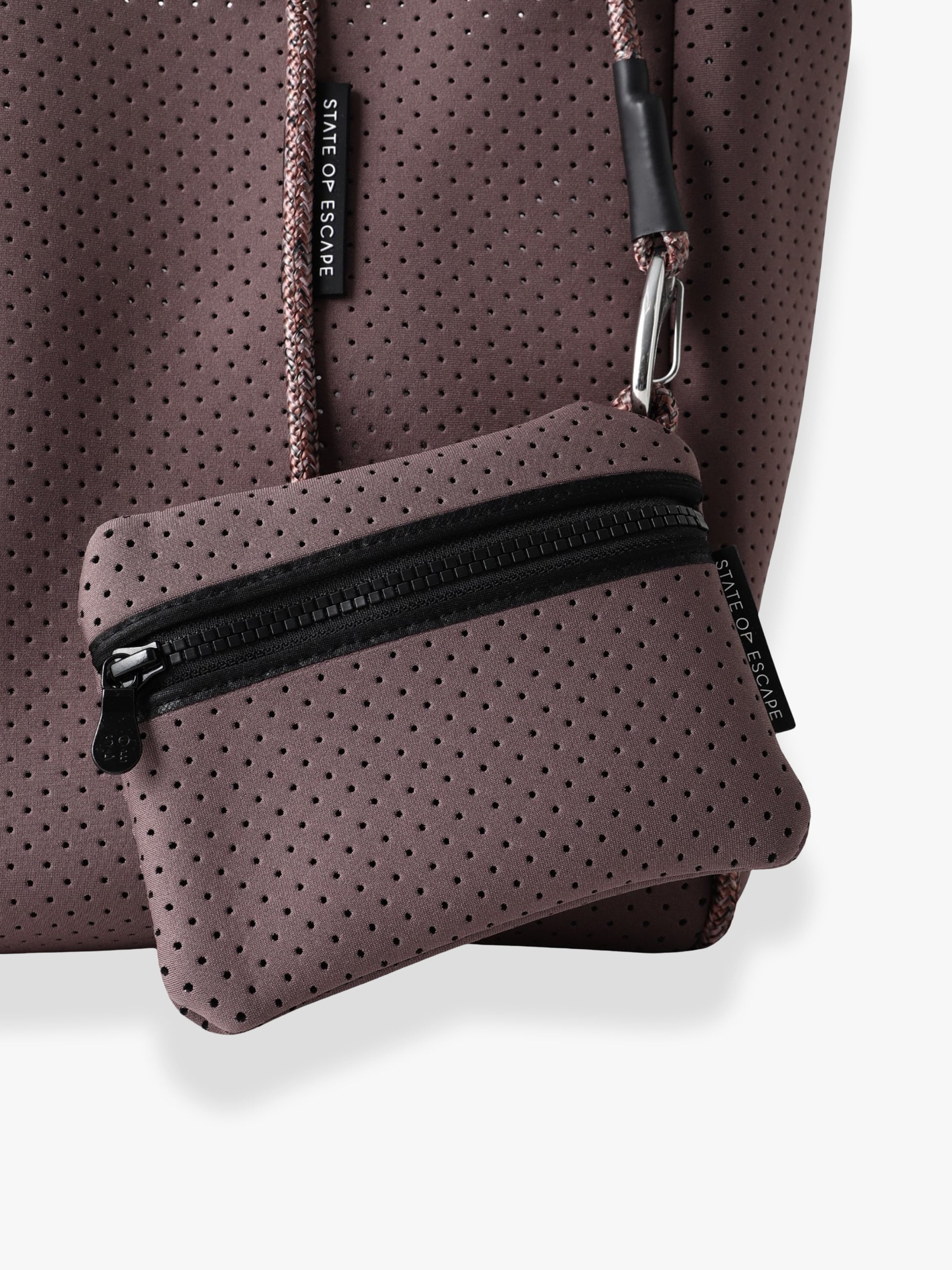 STATE OF ESCAPE(ステート オブ エスケープ)は、2013年にBrigitte MacGowanとDesley Maidmentがオーストラリアでスタートしたハンドメイドバッグブランドです。“ユニークかつエッジーで、美しくデザイン性のあるキャリーオールを作る”というコンセプトのもと、色鮮やかで印象的なバッグを展開しています。軽量で柔らかく肌当たりのよいネオプレン素材のボディに、ショルダーとしてセーリングロープを使用した全てのコレクションは、超軽量でありながら頑丈で、コンパクトに畳め、水洗いが出来る使いやすさも兼ね備えています。 -
