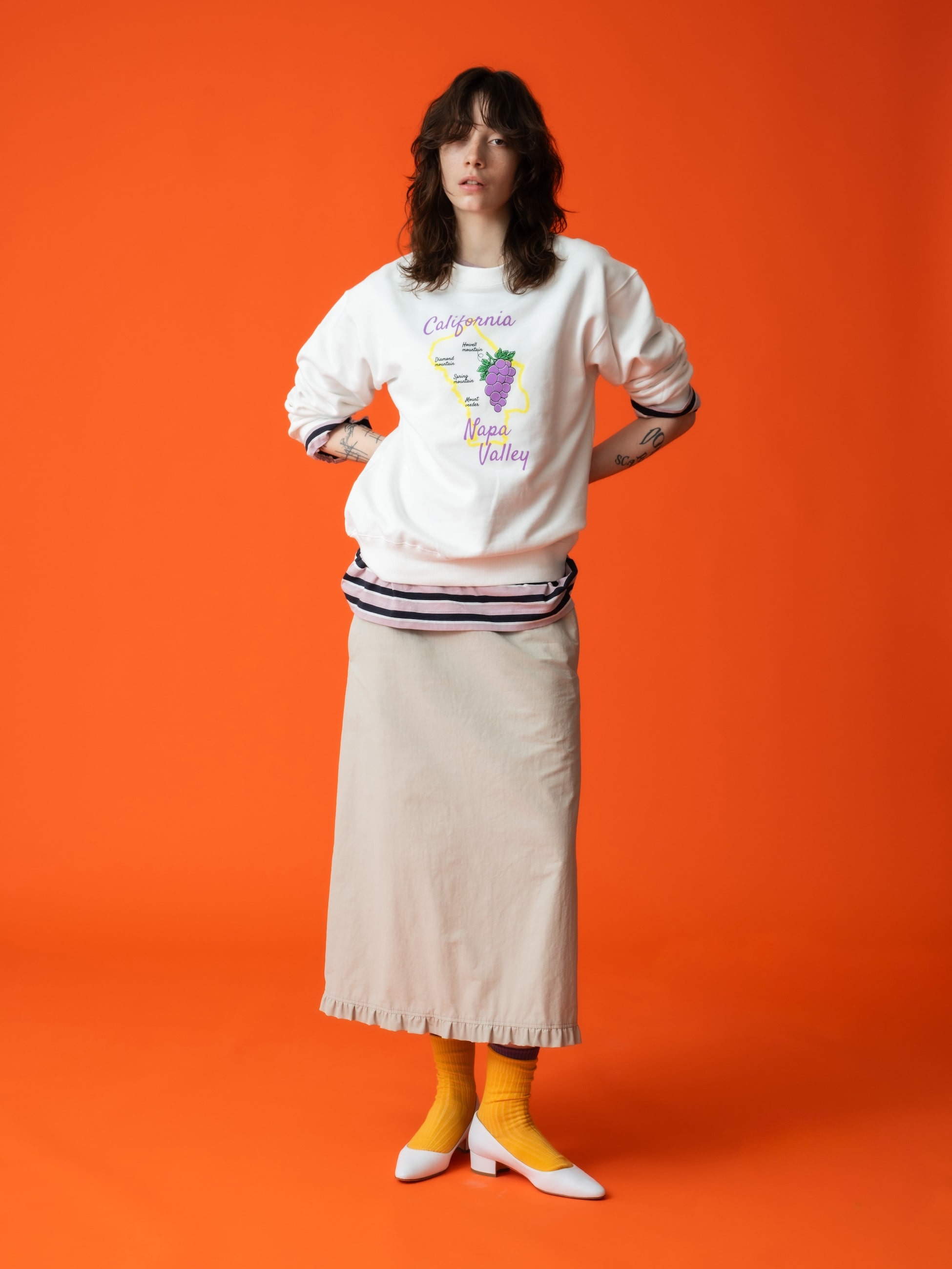 毎シーズン好評の別注アイテムから、26SSシーズンはフェミニン&スポーティーがテーマのJANE SMITH for RHCらしいスカートが登場です。上品なシルエットに裾のフリルが可憐さをプラスし、バックスリットにより動きやすさもキープ。機能性素材を使用した着心地の良さも兼ね備えています。スウェットプルオーバーなど、カジュアルなアイテムと合わせたRHC ロンハーマンらしいスタイリングもおすすめです。