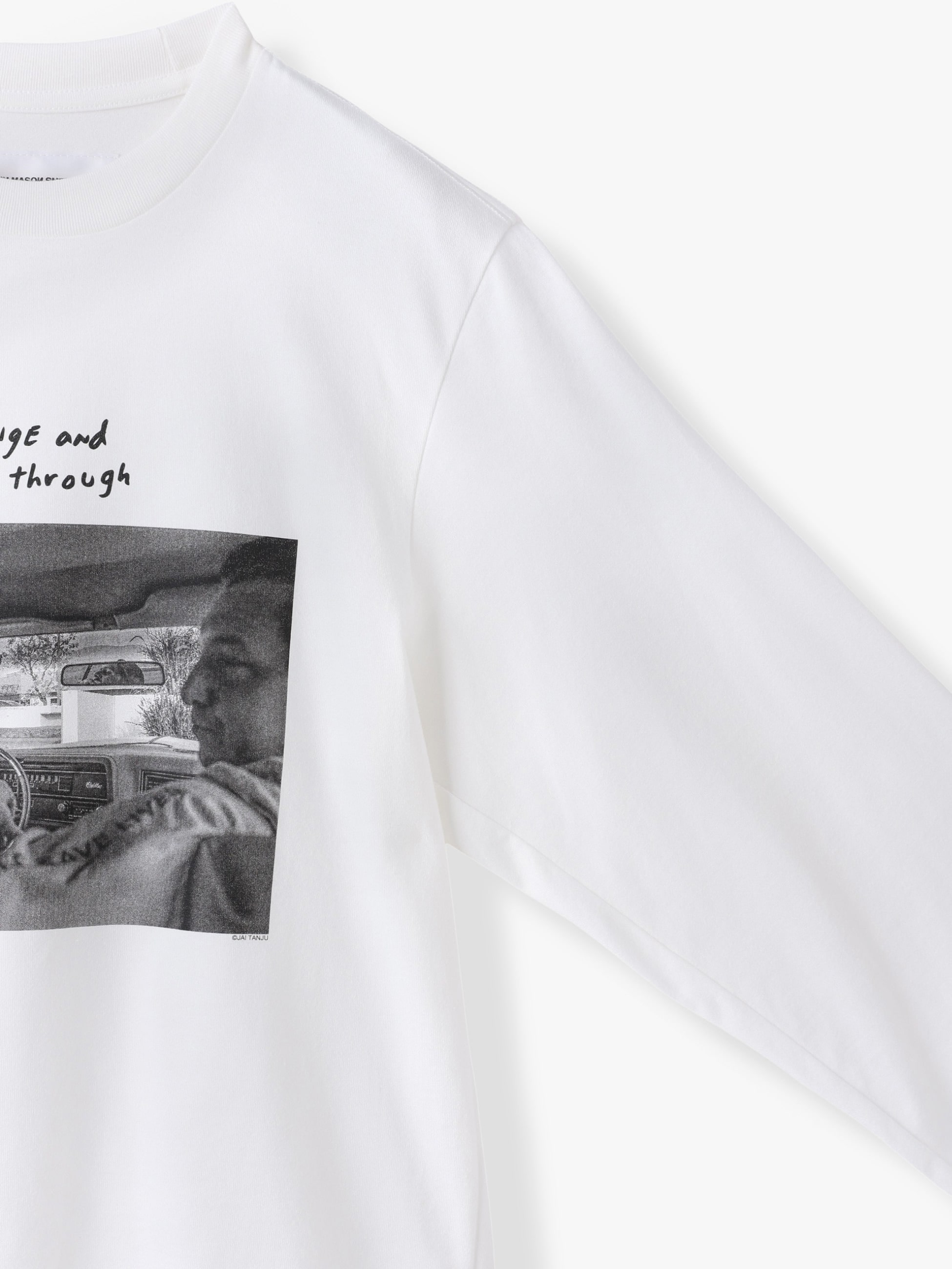 - カリフォルニア州サンノゼ出身の写真家Jai Tanju氏とのコラボレーションTシャツは、写真とともに“Rearrange and see it through(立て直して、最後までやり抜け)”というメッセージがあしらわれています。ボディは、洗いを掛けても斜行や毛羽立ちが少ない長い繊維長のみを使用したコーマ天竺を使用し、左脇線の片接ぎの仕様になっています。すっきりとしたシルエットで汎用性が高いアイテムです。