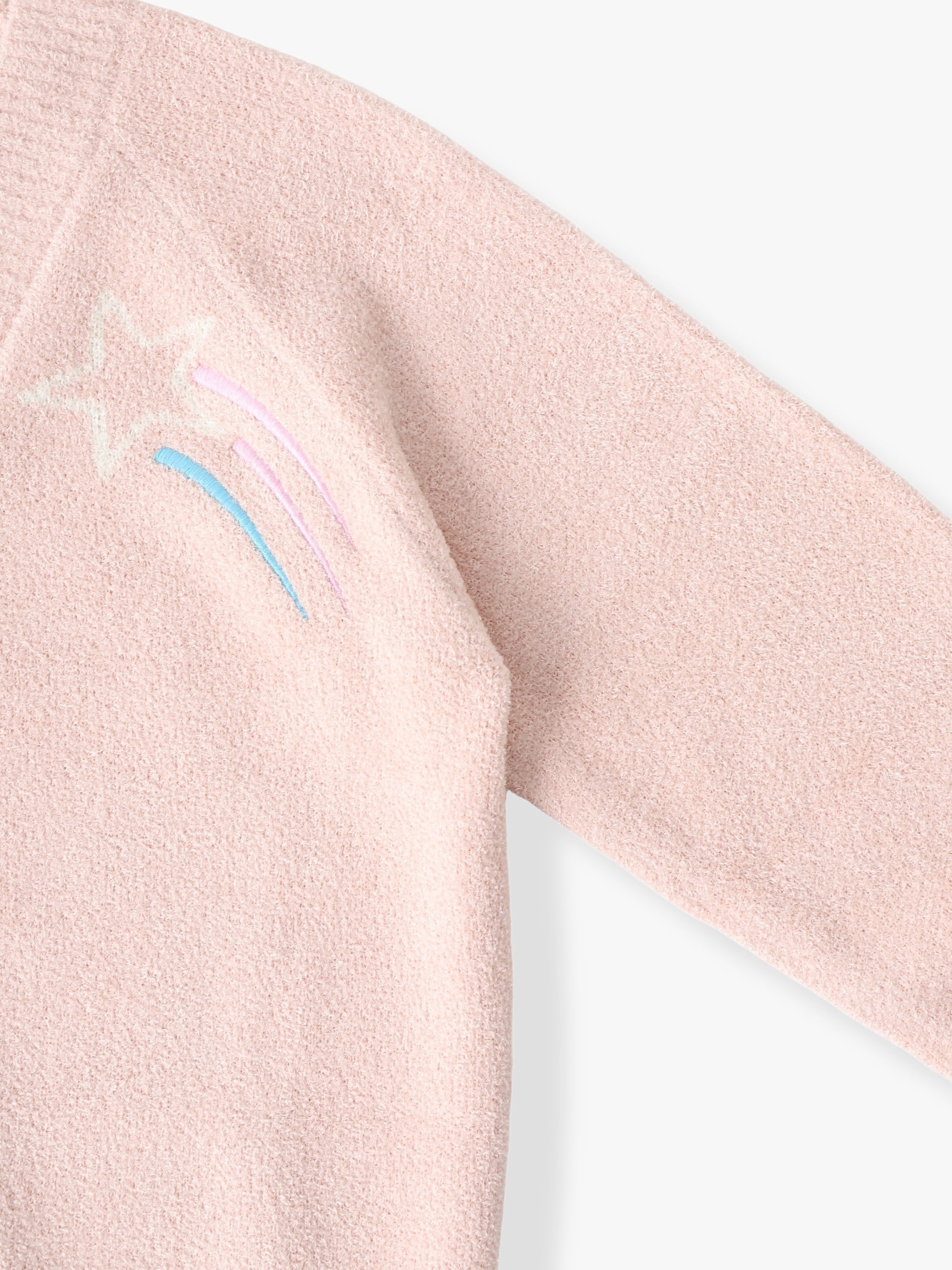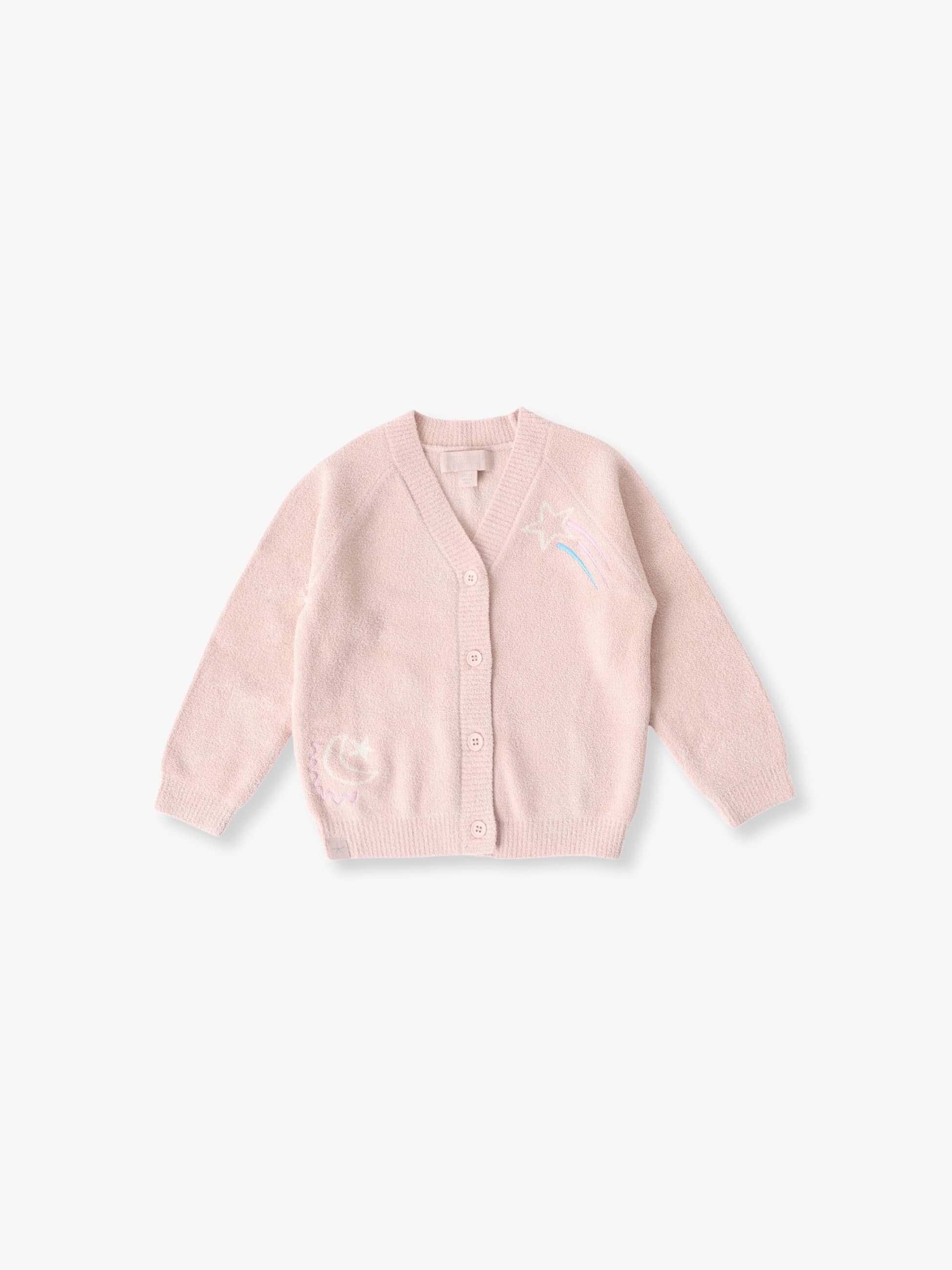 流れ星と月のモチーフがキュートなカーディガンは、軽くて通気性に優れたコージーシックウルトラライト素材を使用しているため快適な着心地です。ラグランスリーブで動きやすく、袖口と前立てにはリブ編みを施し、ほどよくきちんと感のある仕上がりです。