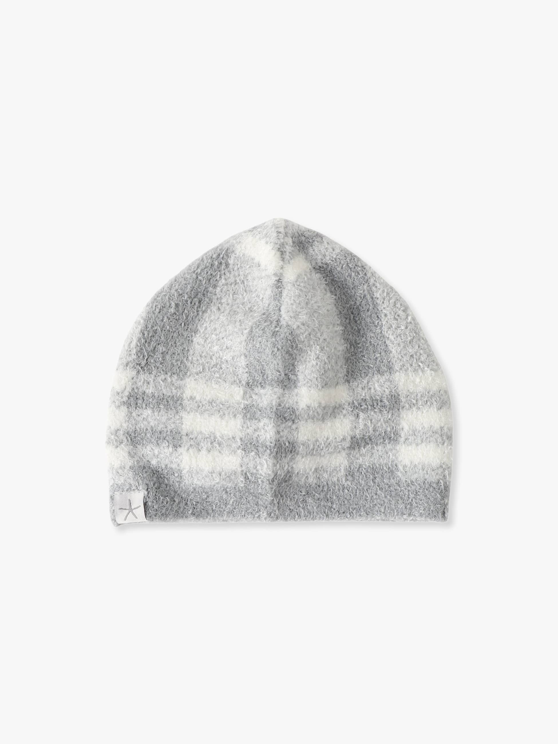 やわらかな素材感と、クラシカルなチェック柄が魅力のベビービーニーは、赤ちゃんのコーディネートにさりげないアクセントプラスします。肌あたりのよいふわふわとした素材を使用しているため、快適なかぶり心地です。頭にやさしくフィットするシルエットで、寒い季節のお出かけにもぴったりなアイテムです。