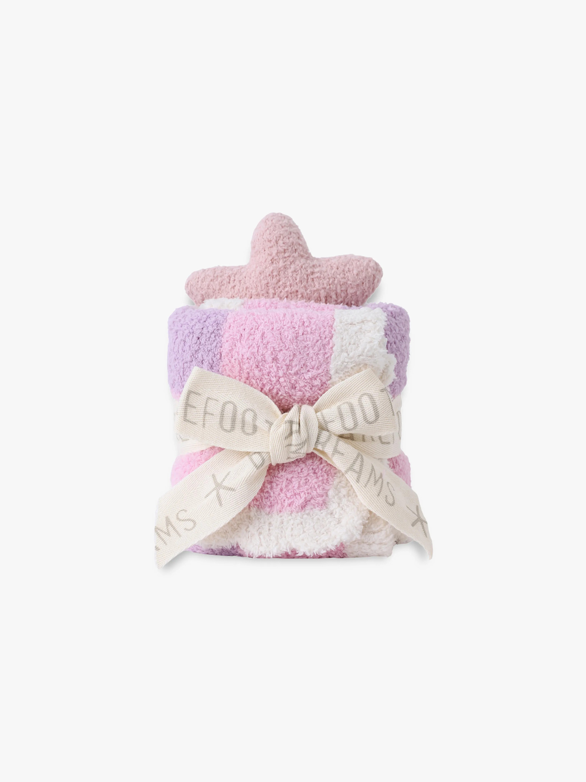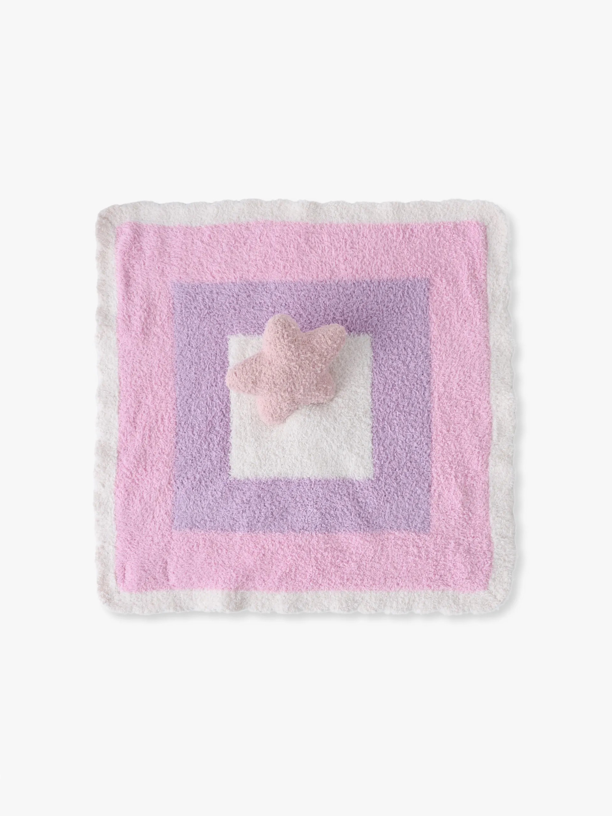 カラーブロックストライプに、スターのぬいぐるみが付いたブランケットは、ふわふわと優しい肌触りで赤ちゃんを心地よく優しく包み込みます。普段使いはもちろん、ギフトにもおすすめのアイテムです。