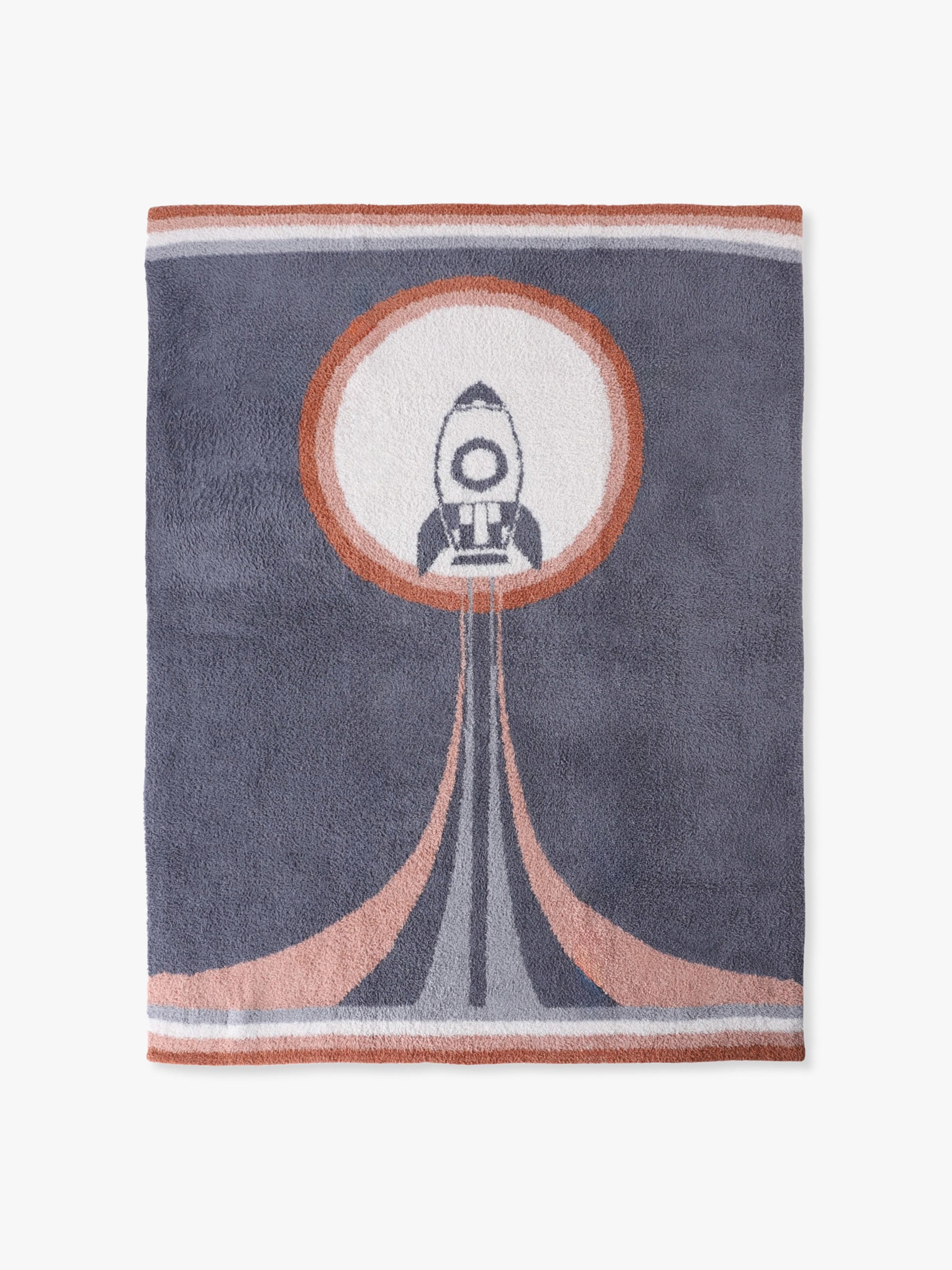 大胆なロケットモチーフが目を惹くブランケットは、ふんわり柔らかなコージーシック素材で仕立てられており赤ちゃんの毎日をやさしく包み込みます。ベビーカーにぴったりのサイズ感で、外出時はもちろん、お昼寝やおうち時間にも活躍します。ギフトにもおすすめのアイテムです。