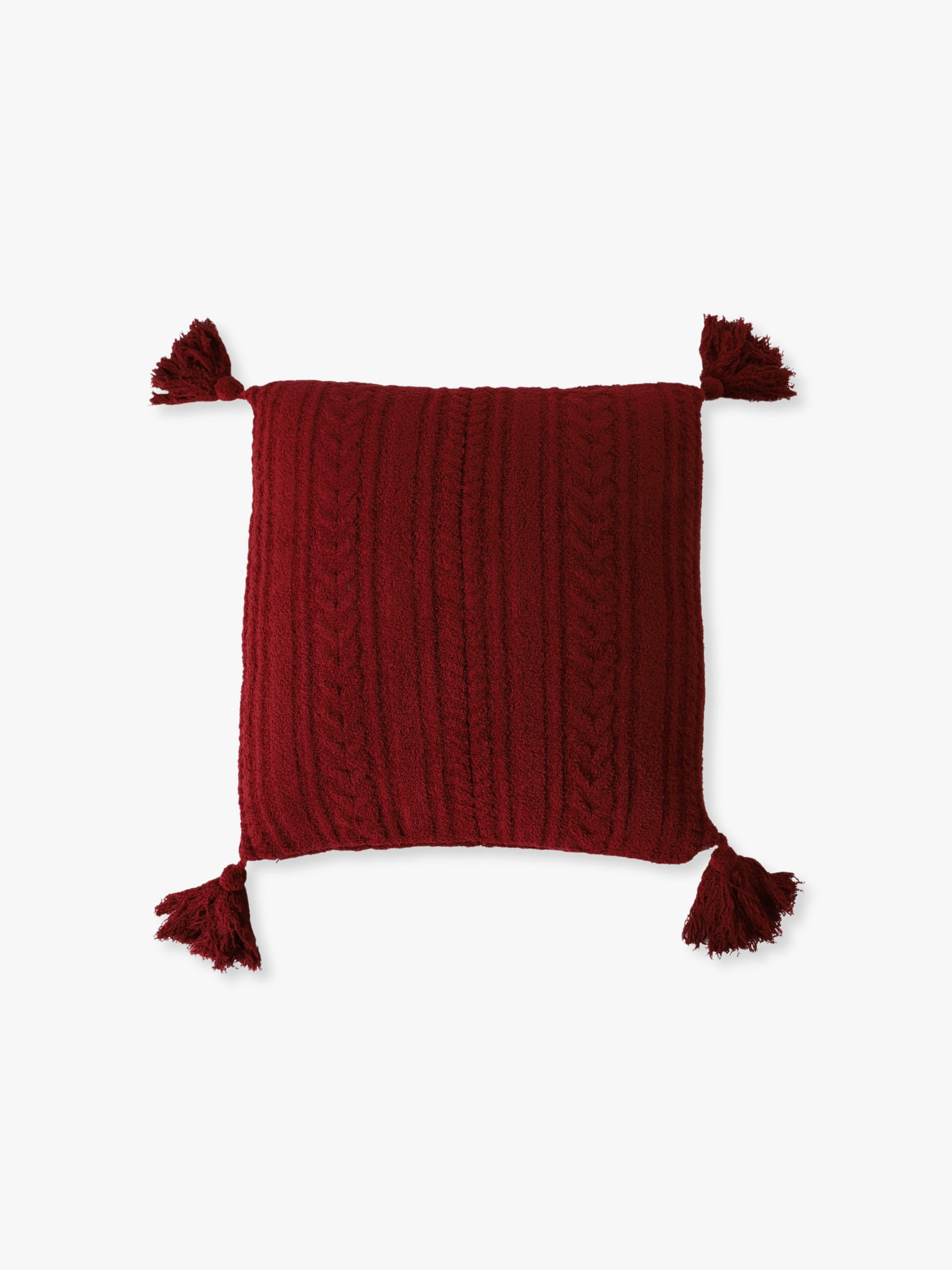 - お部屋にあたたかみを添える、ケーブル編みのデコレーションピロー。コージーシックヤーンで編み上げたクラシックなケーブル模様が、心地よい表情を生み出します。四隅のタッセルがやわらかなアクセントとなり、ソファやベッドにも馴染む上品な一品です。