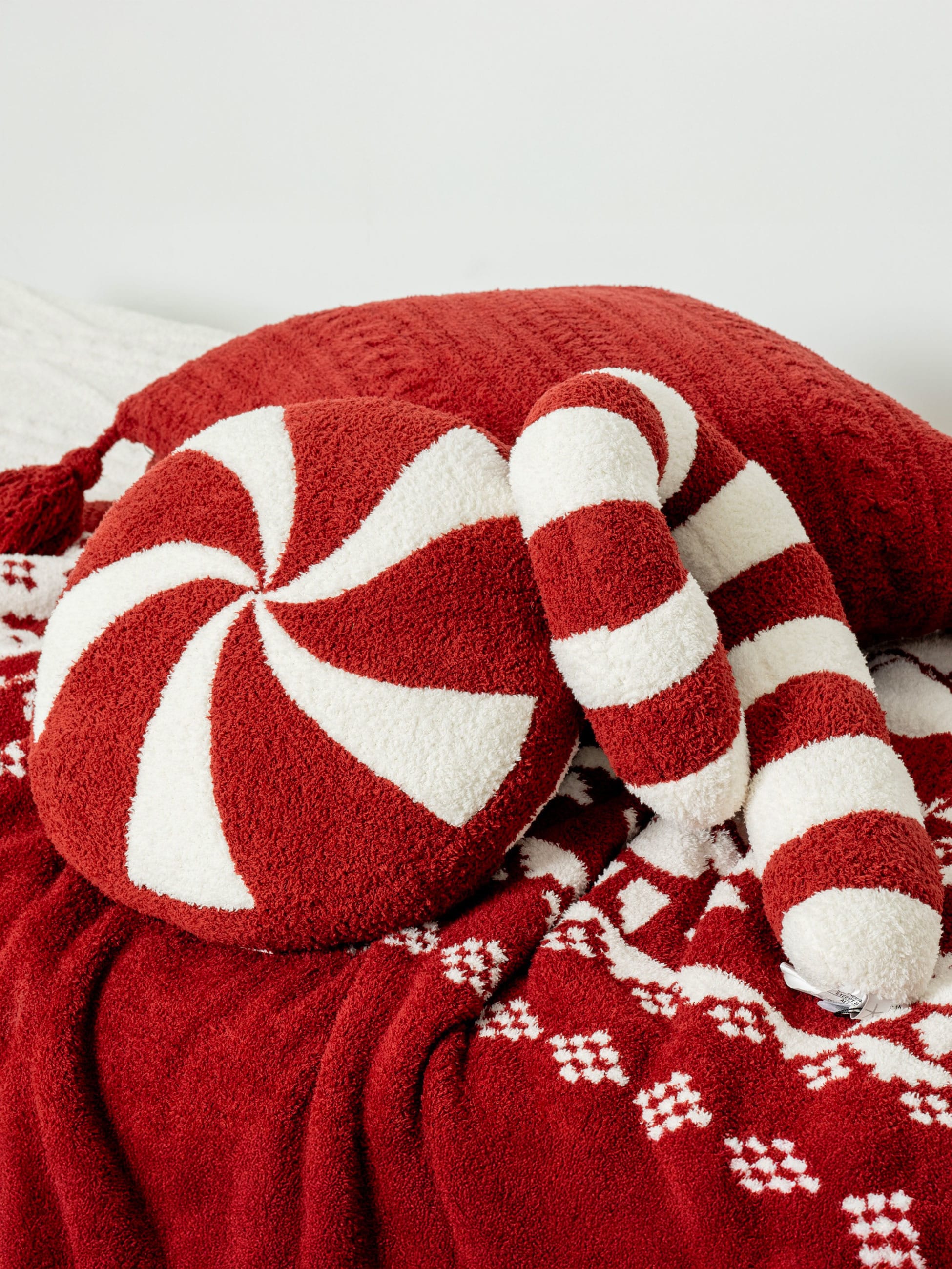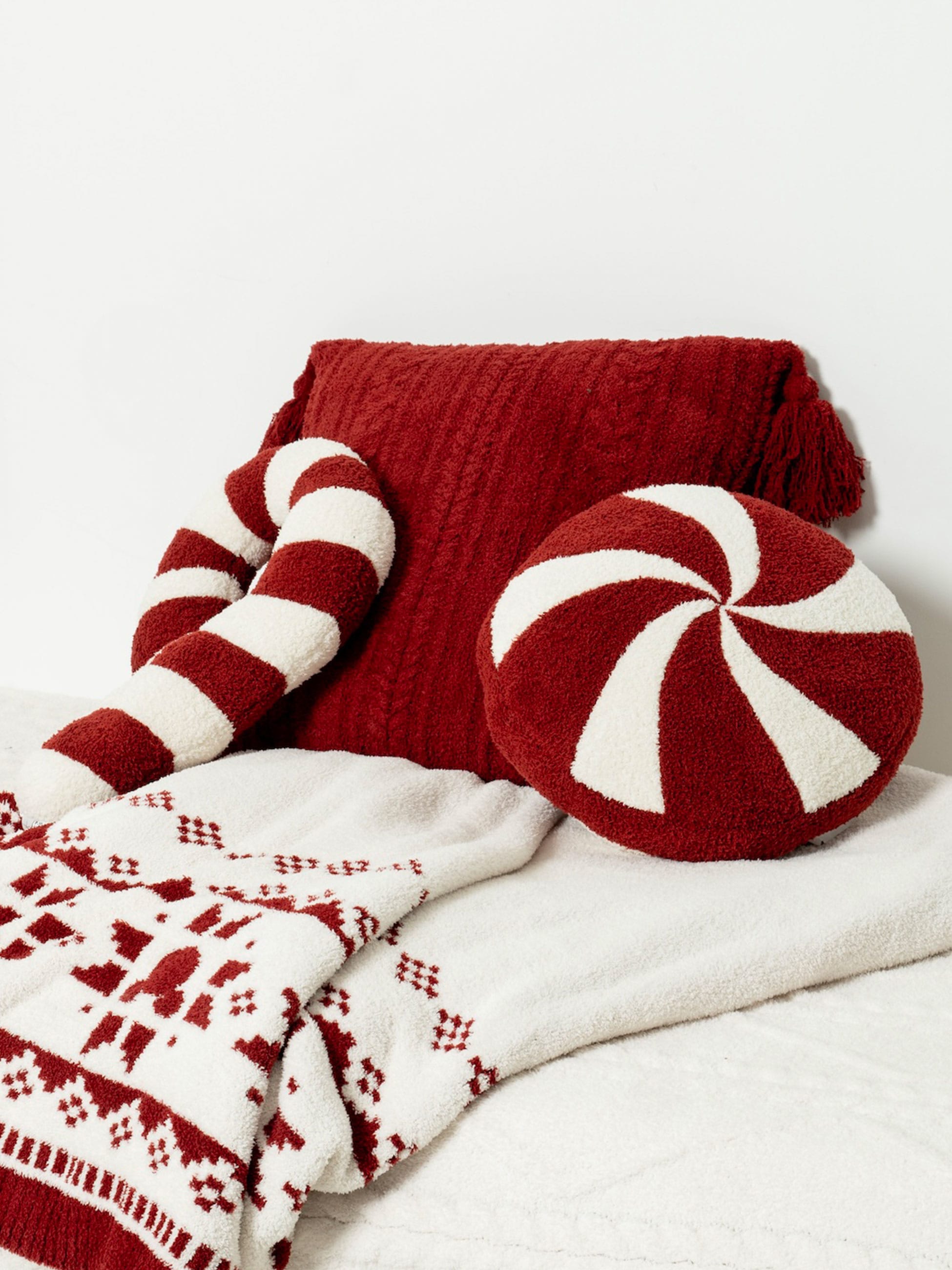 - ホリデーシーズンに甘いアクセントを添える、ペパーミントモチーフのデコレーションピロー。柔らかなジャカード編みの赤×白ペパーミントスワール柄が、空間にフェスティブな雰囲気をもたらします。ソファやベッド、チェアに置くだけで、季節感と遊び心を手軽にプラスできる一品です。