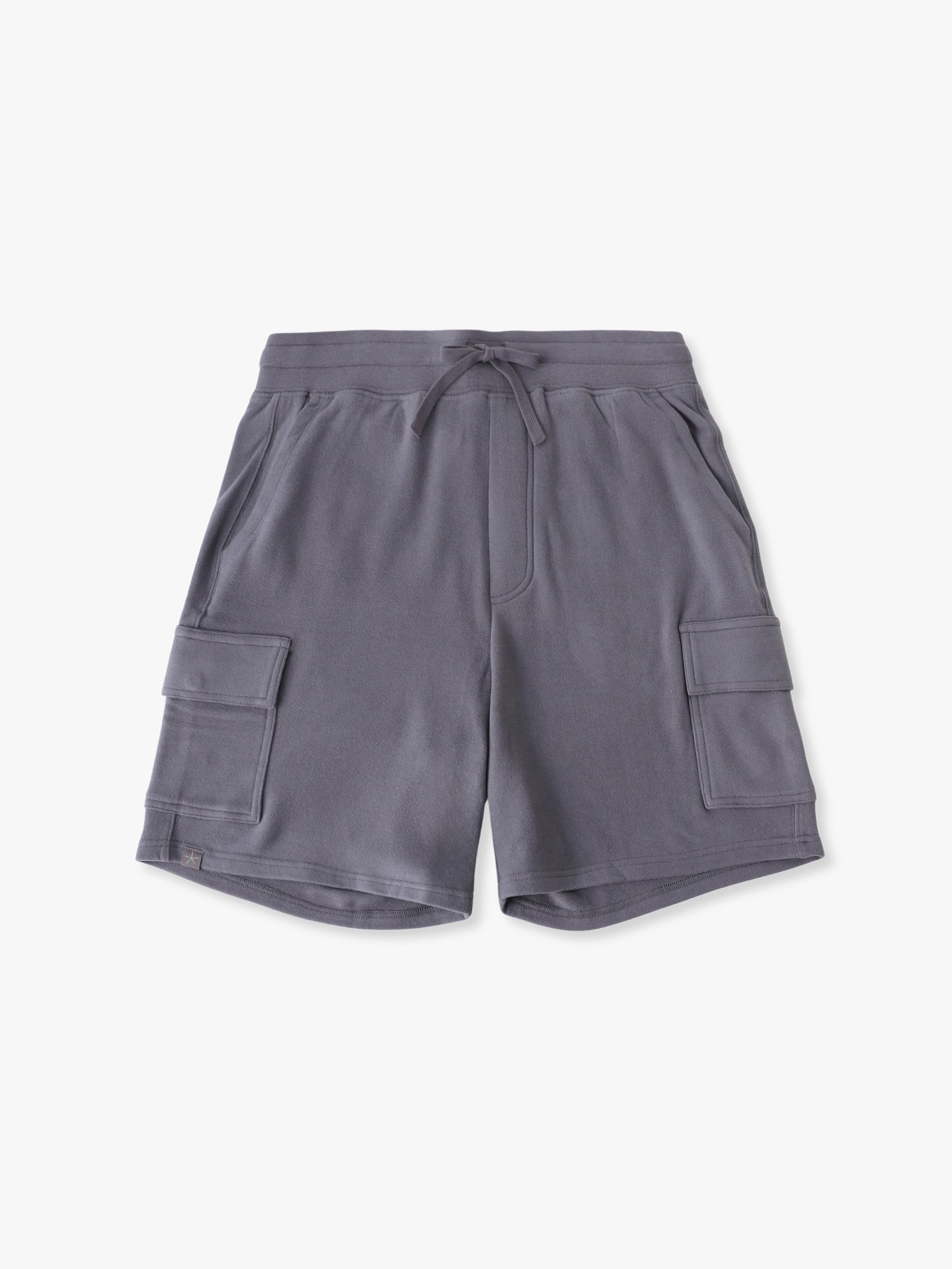 - 柔らかいフリース素材のカーゴショートパンツ。ウエストバンドに調節可能なドローコード付きで、快適な履き心地を実現しています。また、フラップポケットには隠しボタンがついており、お出かけ時に活躍します。
