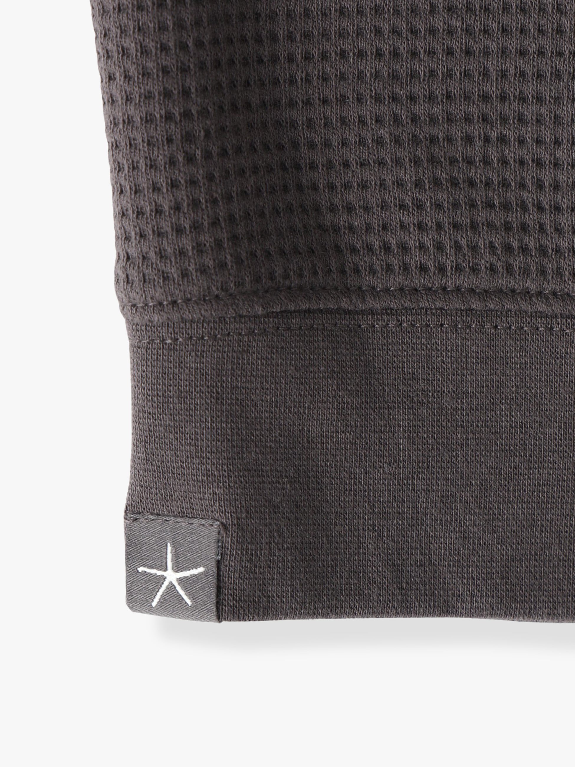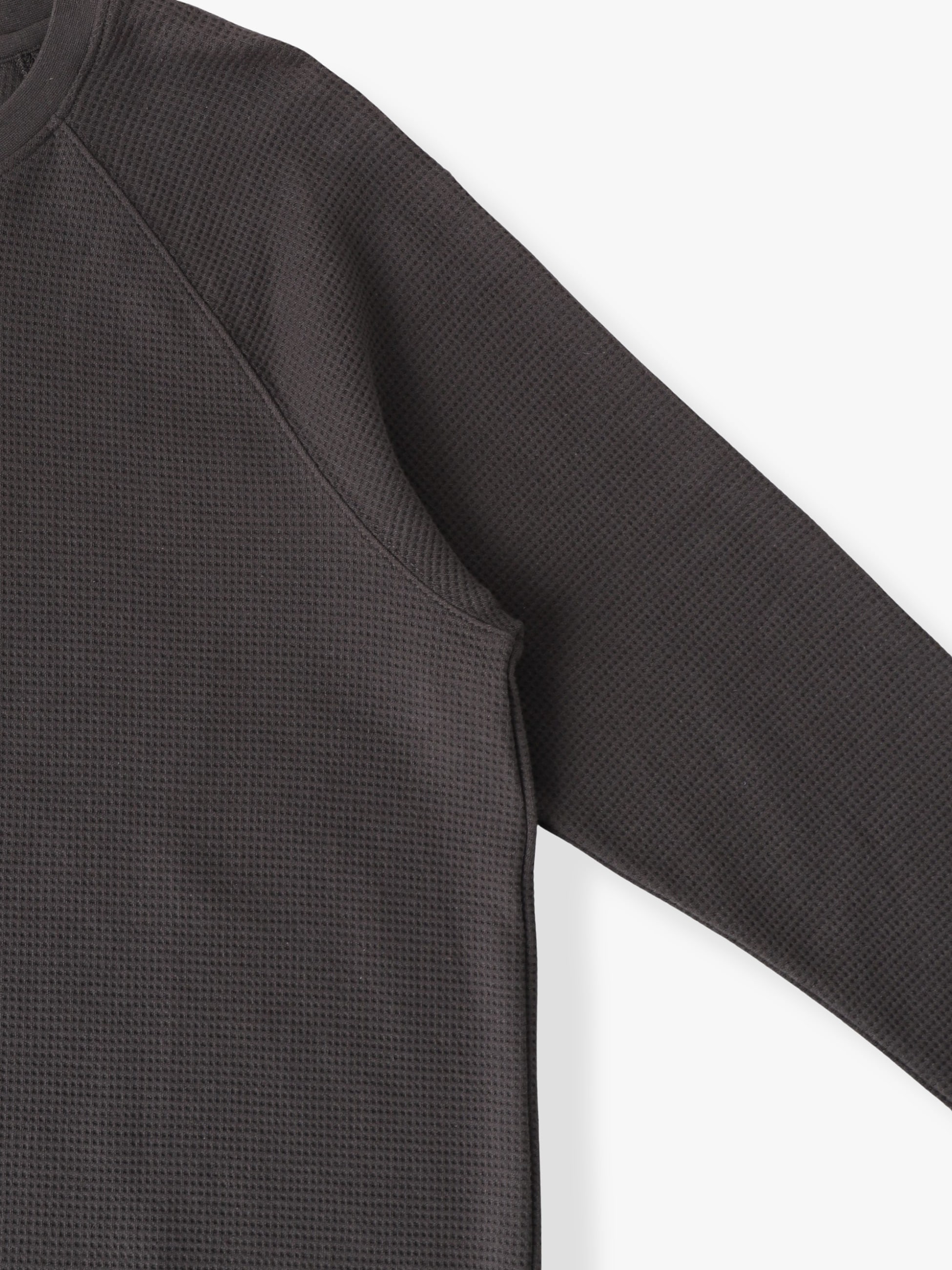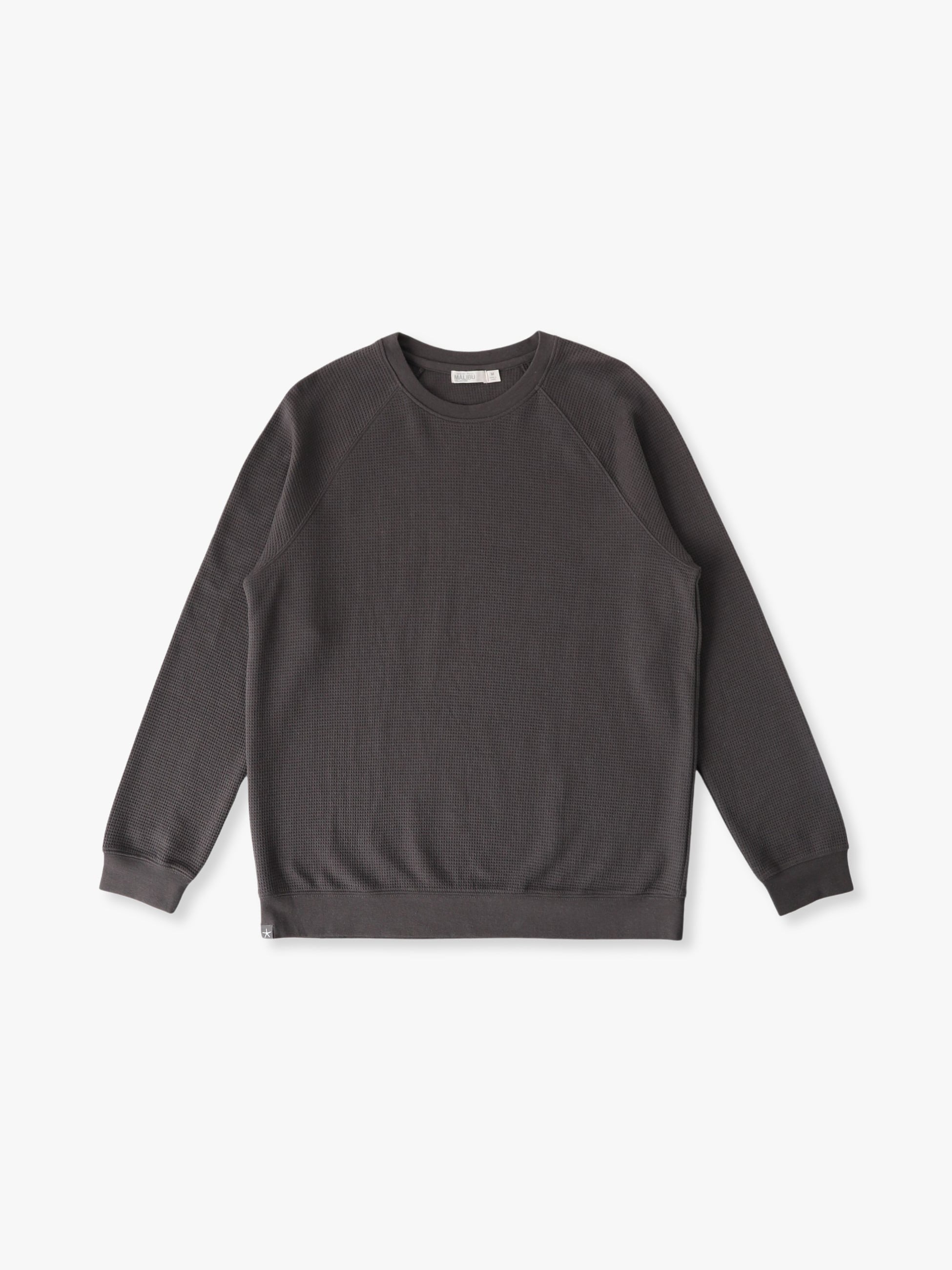 - カジュアルな雰囲気が魅力のワッフルニットを使用したラグランスリーブのプルオーバー。クラシックでタイムレスなデザインは、ワードローブの定番として活躍します。