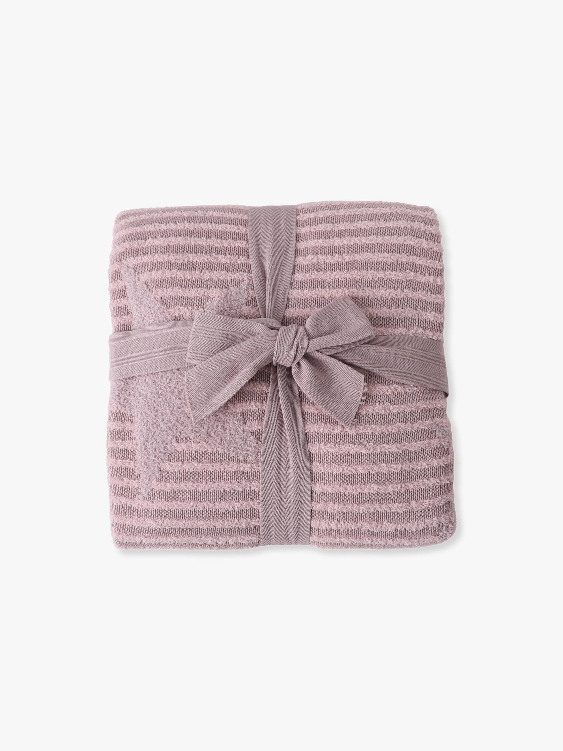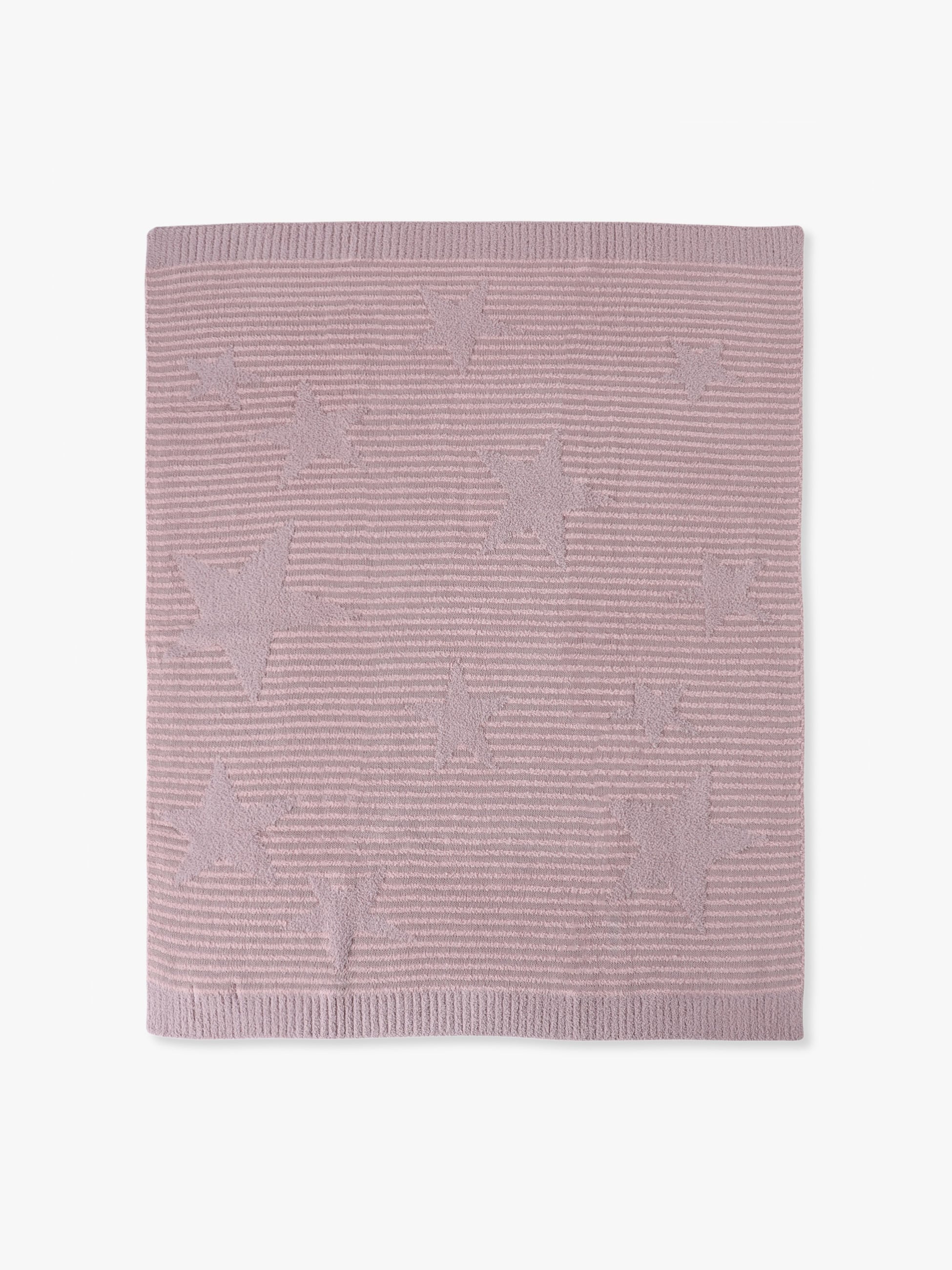 星とストライプがキュートなブランケットは、ジャガード織りでデザインが立体的にみえるのが特徴です。ベビーカー用のブランケットにも、大人のひざ掛けにもちょうどいいサイズ感で、ギフトにもおすすめのアイテムです。