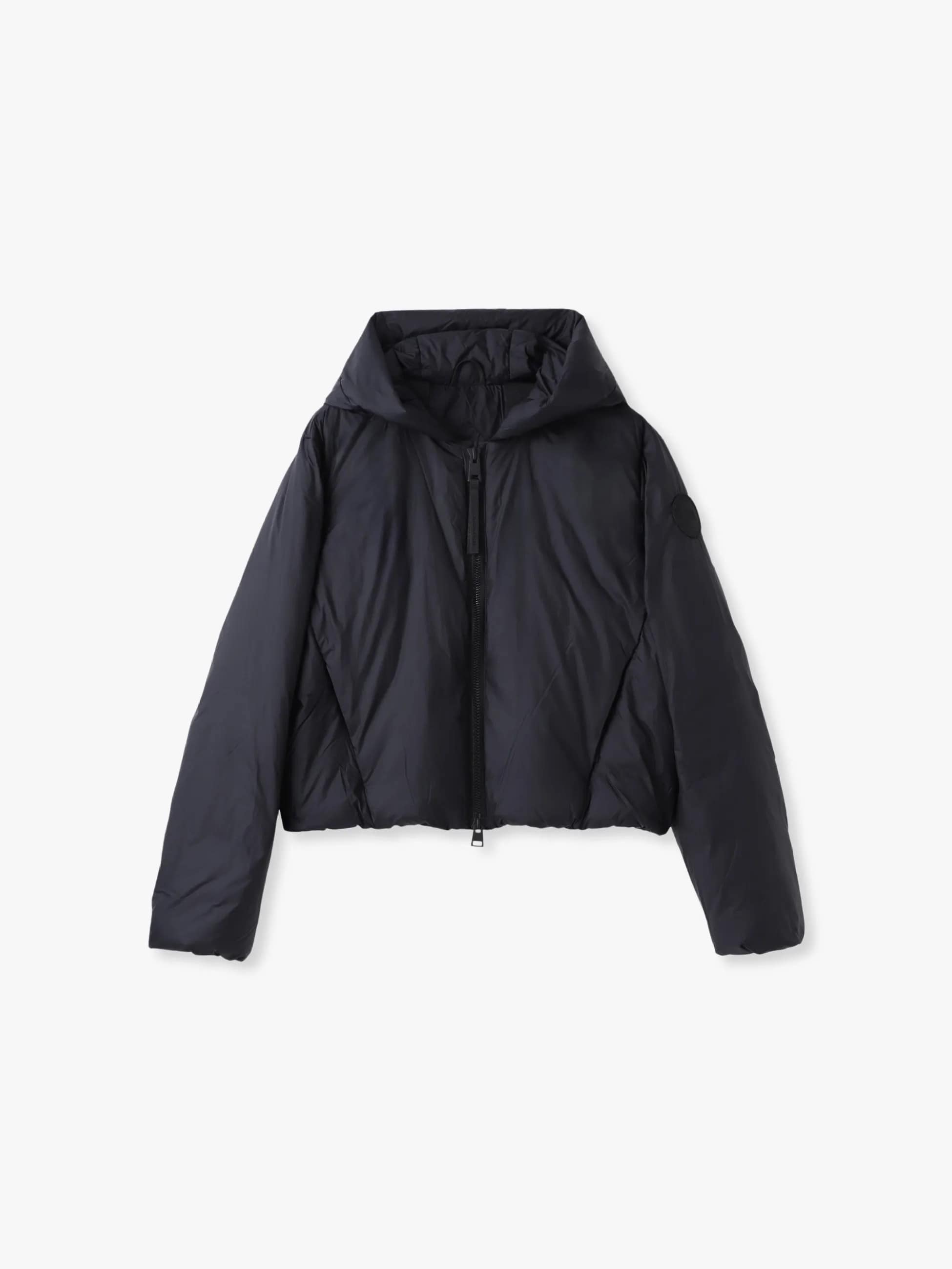 - しっとりとした柔らかなルミナ素材を使用したエルバ フーディージャケットは、マルチレイヤーのパッファー構造で、非常に軽量ですっきりとしたミニマルなデザインが特徴です。控えめな光沢感があり、袖口は絞り加工が施されています。内側の左ポケットにボディを収納し、パッカブルで持ち運びができるのも嬉しいポイントに。裾のドローコードを絞ると丸みを帯びたモダンなシルエットにアレンジいただけ、フィット感の調整も可能です。