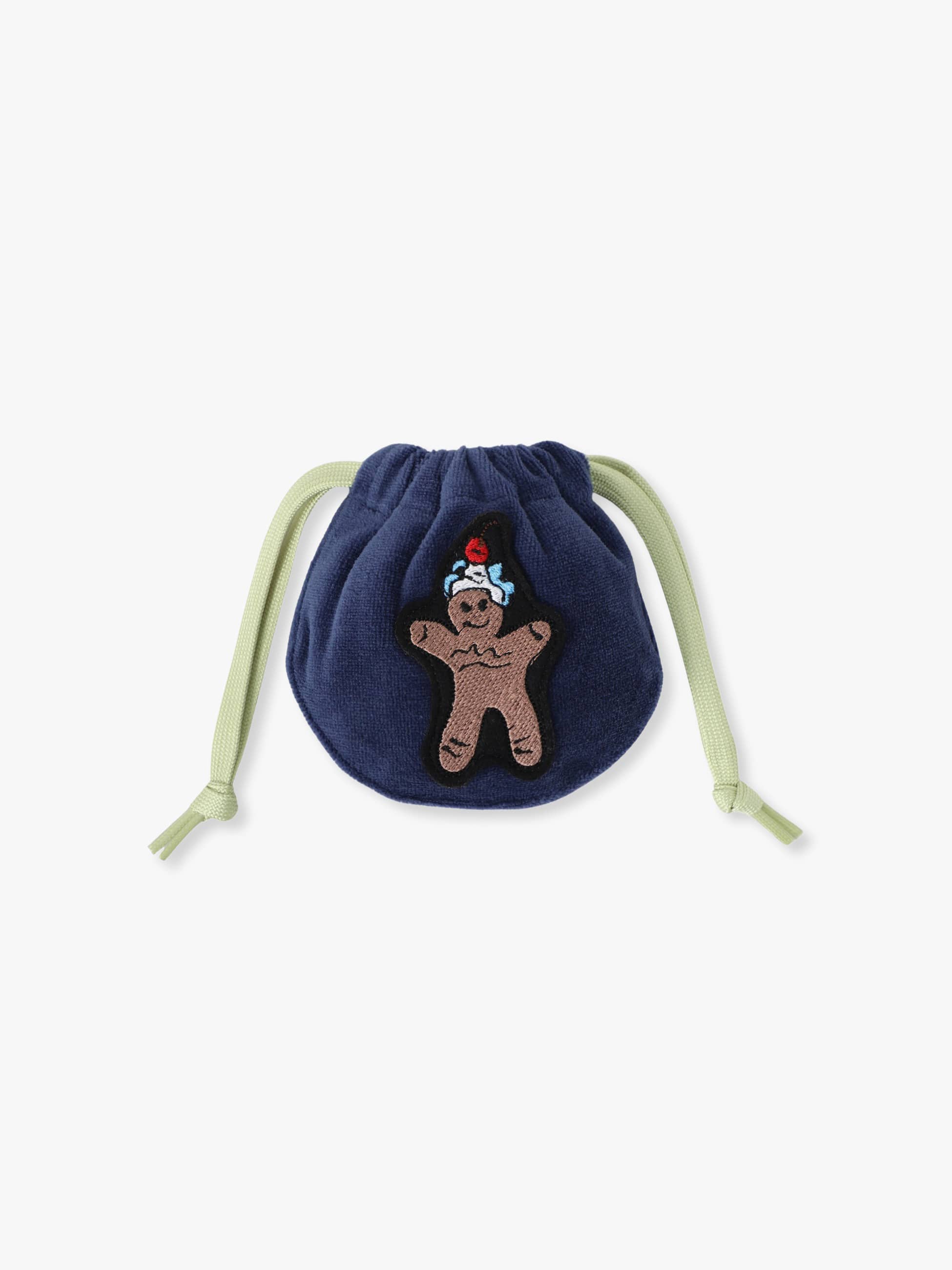 クリスマスをイメージした特別なポーチが登場です。ころんとしたフォルムの愛らしい巾着型ポーチは、シックなネイビーの巾着に、クリスマスに食べたいジンジャークッキーの刺繍が遊び心たっぷりで、ふわっと滑らかな生地感と裏側のブランドロゴもポイントに。小物の持ち運びにも便利なミニサイズで、持っているだけで気分が上がるアイテムです。ホリデーシーズンのギフトとしてもおすすめです。 -