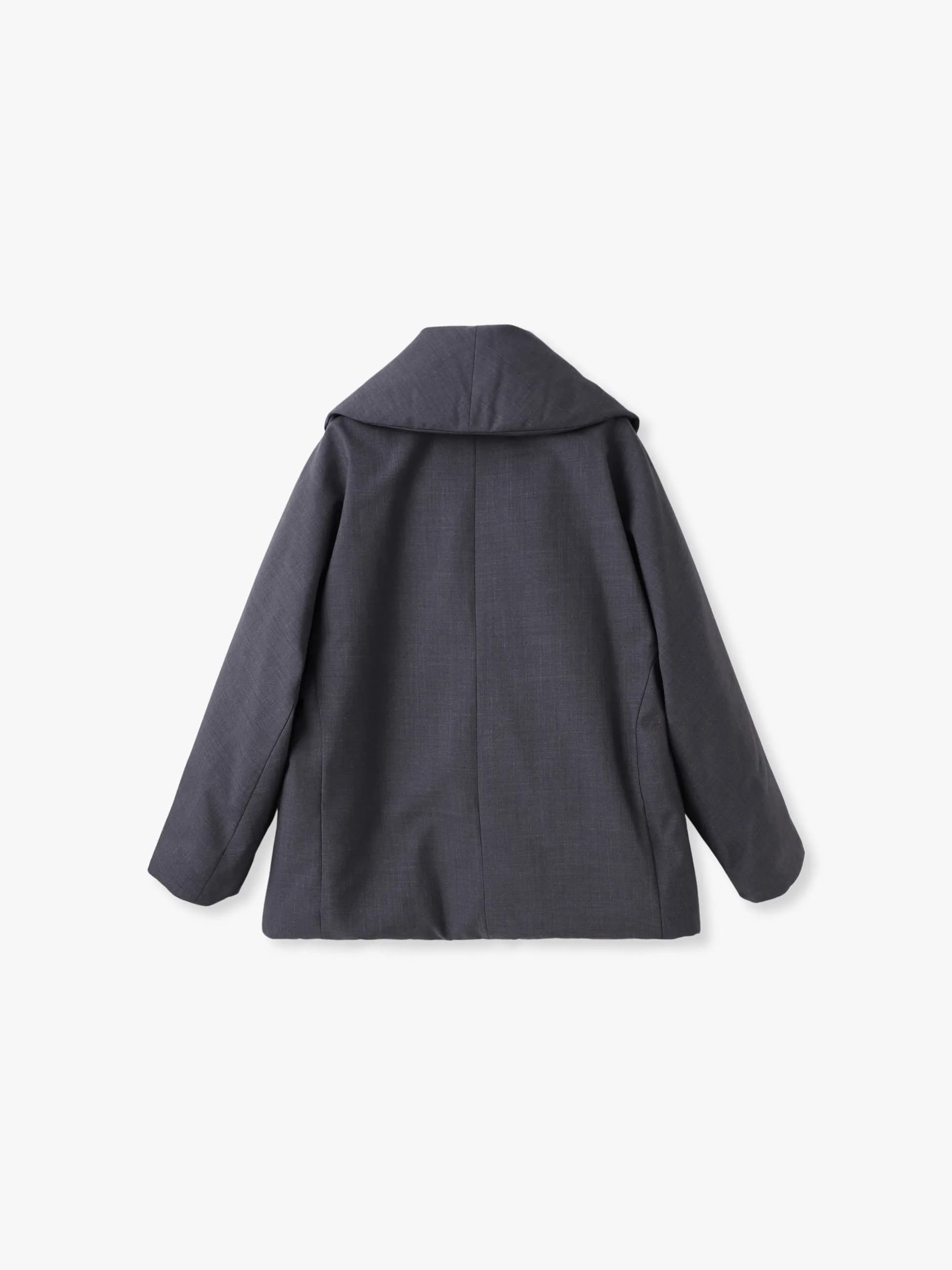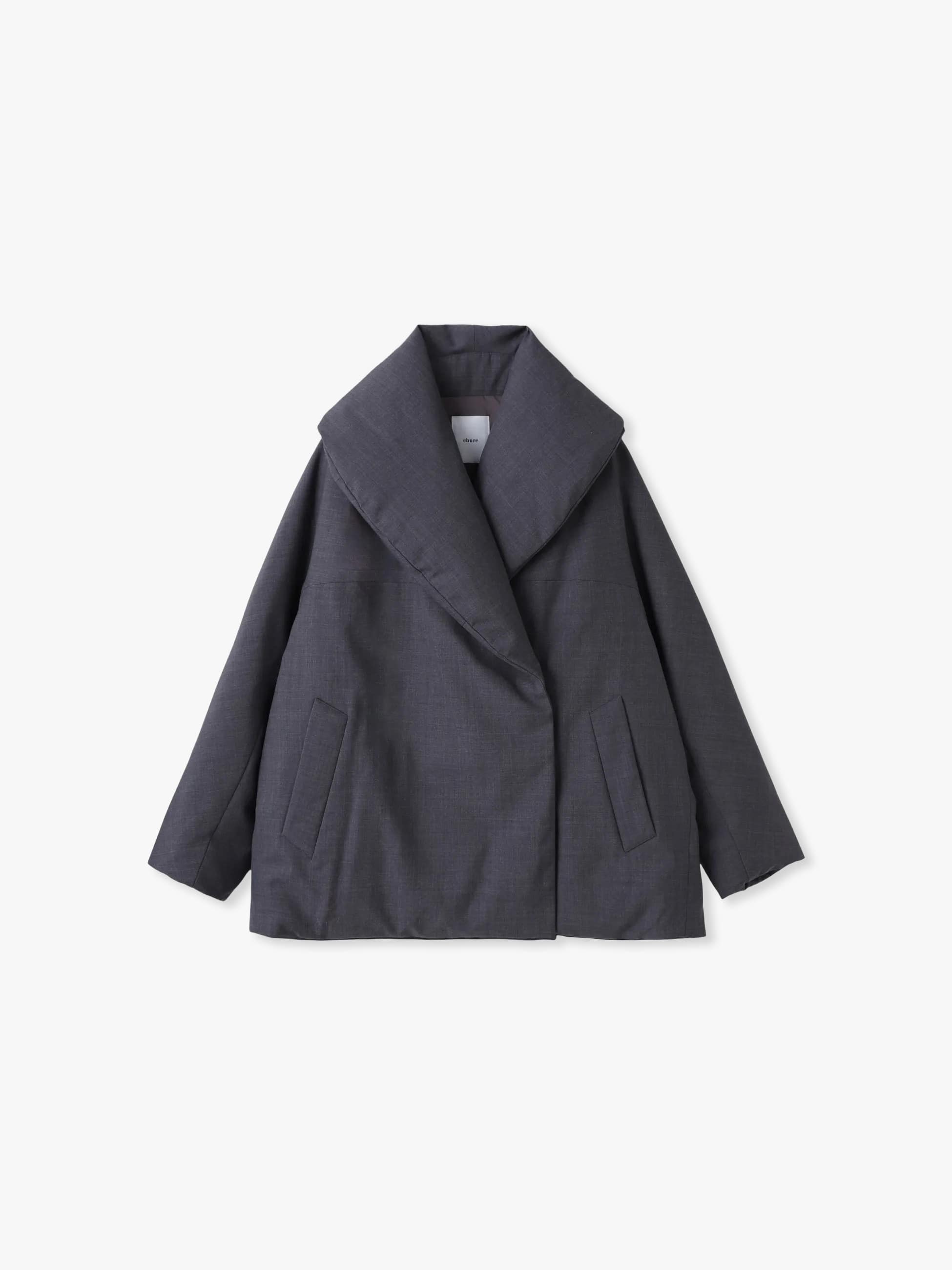 2024FWシーズンに人気を博したフォルムダウンショールカラーコートを、25FWシーズンはさらに素材をブラッシュアップしました。ダウンでありながらもすっきりとしたボディとボリュームのある優美な襟の秀逸なバランスはそのままに、素材をウール・ポリエステルの強撥水の高密度ポプリン素材にアップデート。ウール本来の上質な風合いと通気性や消臭性、ポリエステルの耐久性を併せ持ち、シワになりにくいのも特徴です。軽量で温かく、ebureらしい見た目の美しさと、機能性の高さを兼ね備えた一着をぜひお楽しみください。ロンハーマン別注カラーのネイビーもございます。