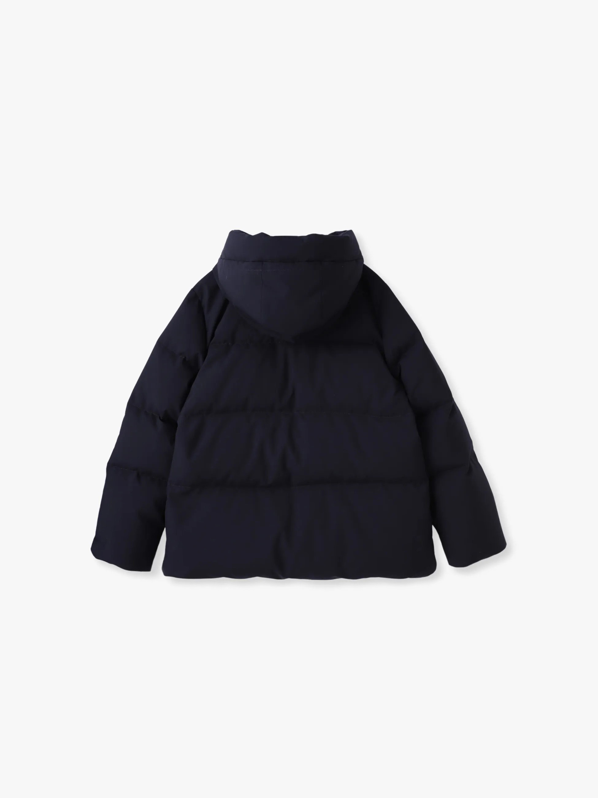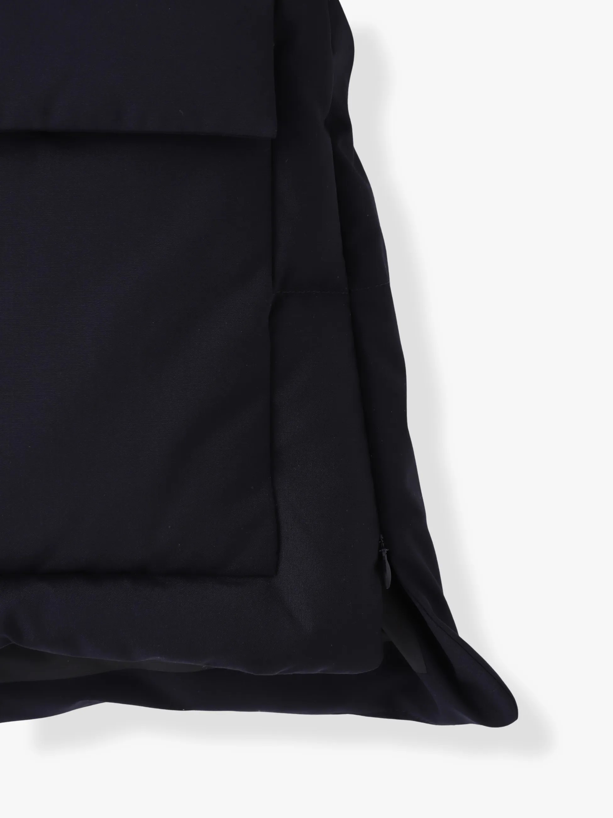- ebureからフーディーデザインの新型の別注ダウンコートが登場です。ウール・ポリエステルの梳毛素材で仕立てたダウンコートにスポーティーなステッチを施し、フォルムダウン ショールカラー コートと同色のネイビーをセレクト。カジュアルにもエレガントにも振りすぎず、モードな雰囲気に仕上げています。ゆとりのあるサイジングでありながらも肩回りはすっきりと、裾に向かって広がる美しいフォルムが特徴で、サイドに配したコンシールファスナーを開けるとスリットが広がり、抜け感のあるAラインシルエットにアレンジいただけます。フードのスピンドルとファスナーの引手には牛革を使用し、細部までebureらしいディティールがあしらわれた一着をぜひお楽しみください。