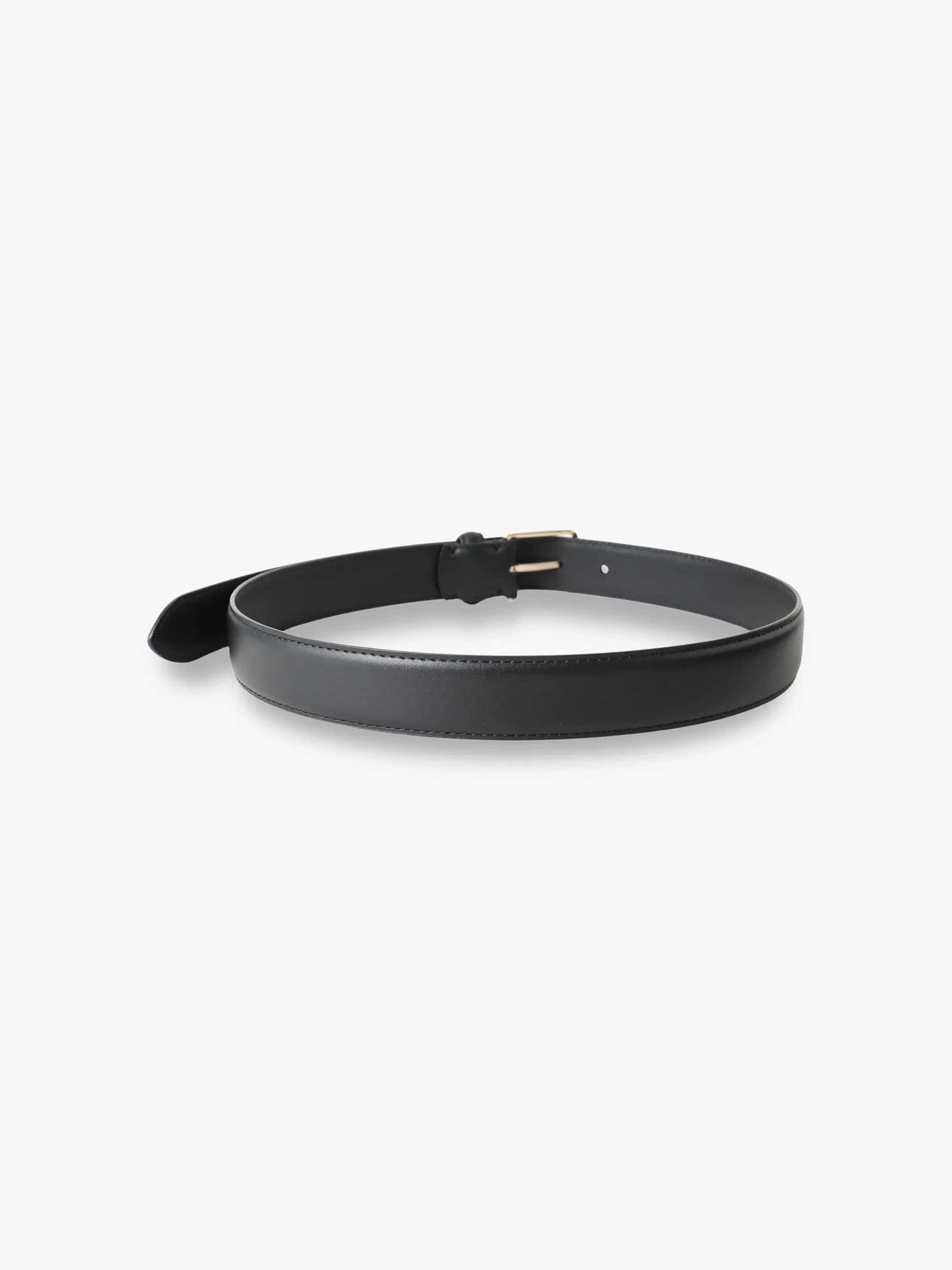- シンプルながら端正なシルエットのレザーベルトは、合わせやすいブラックに、バックルはシルバーカラーで上品な印象を演出します。どんなボトムスとも好相性で、ワードローブにあると重宝するアイテムです。