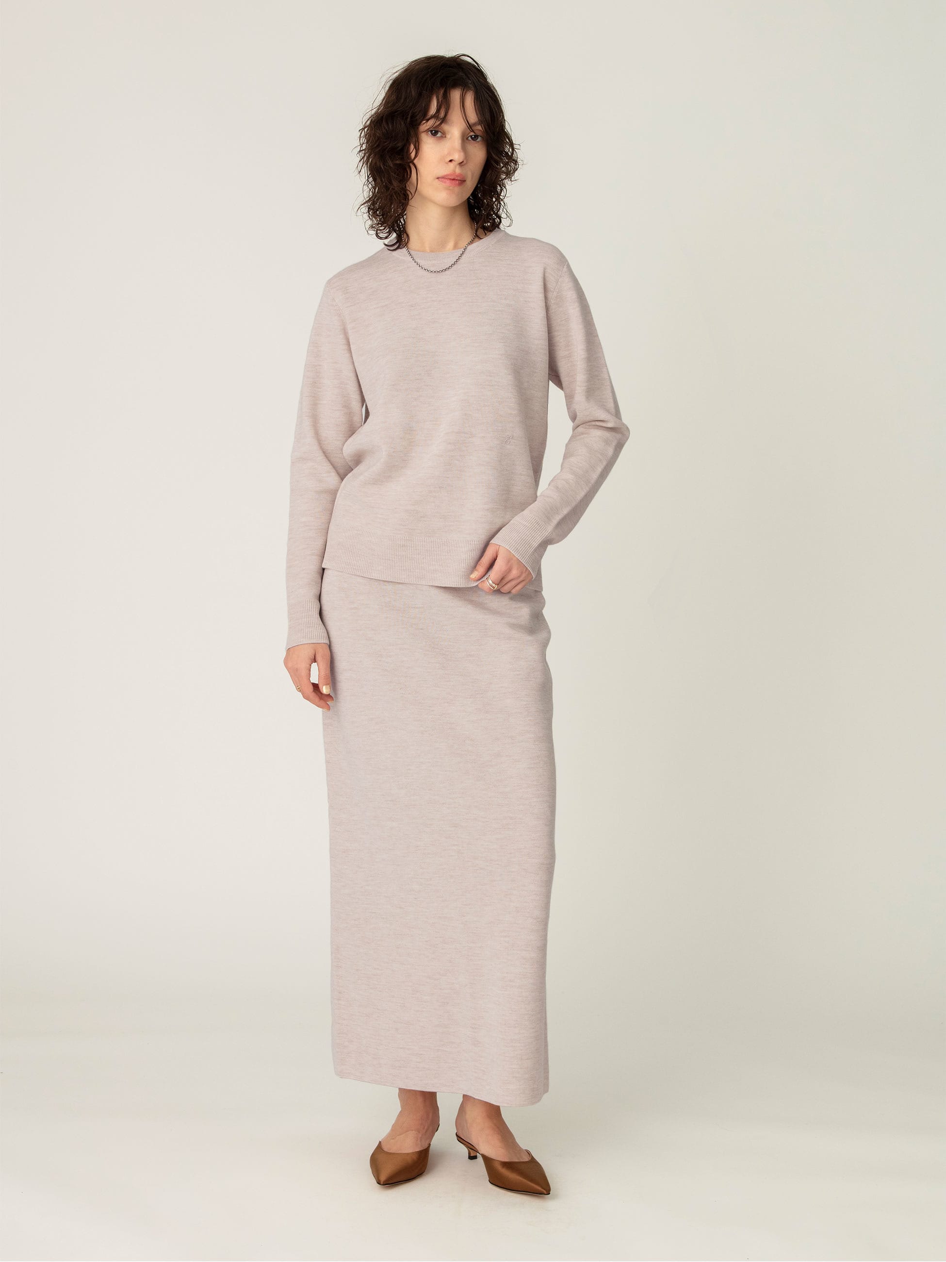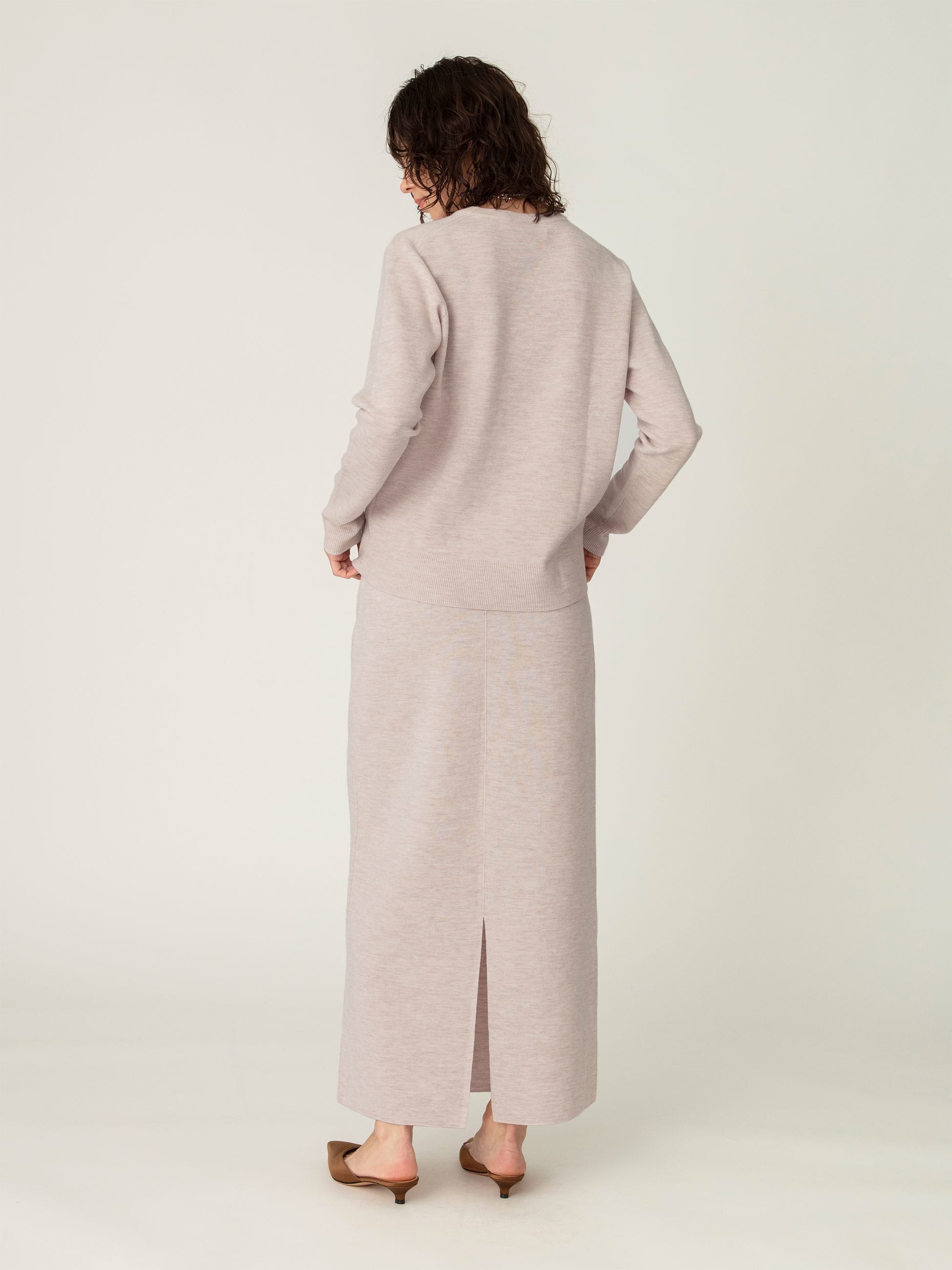 - オーストラリアの上質なウール素材を使用し、ハイゲージのミラノリブ組織で編み立てたニットスカートを、柔らかいアイボリーとシックなチャコールグレーをセレクトし、ロンハーマンでカラー別注しました。すっきりと仕上げたストレートラインが美しく、リラックス感がありながら、上品な印象を演出します。ふっくらとした膨らみで、型崩れしにくいのも嬉しいポイントです。同シリーズのニットトップスとセットアップで着用いただけます。