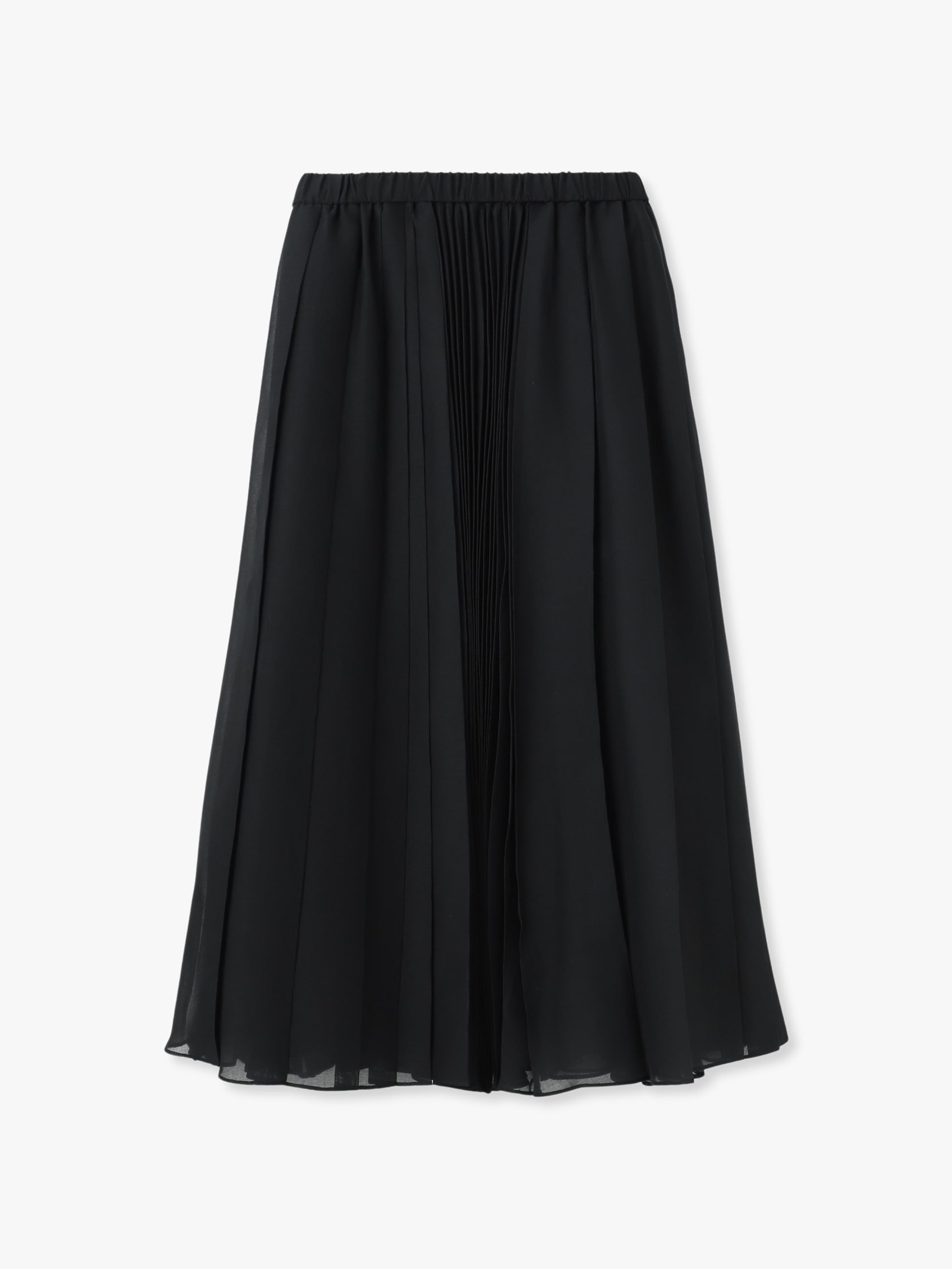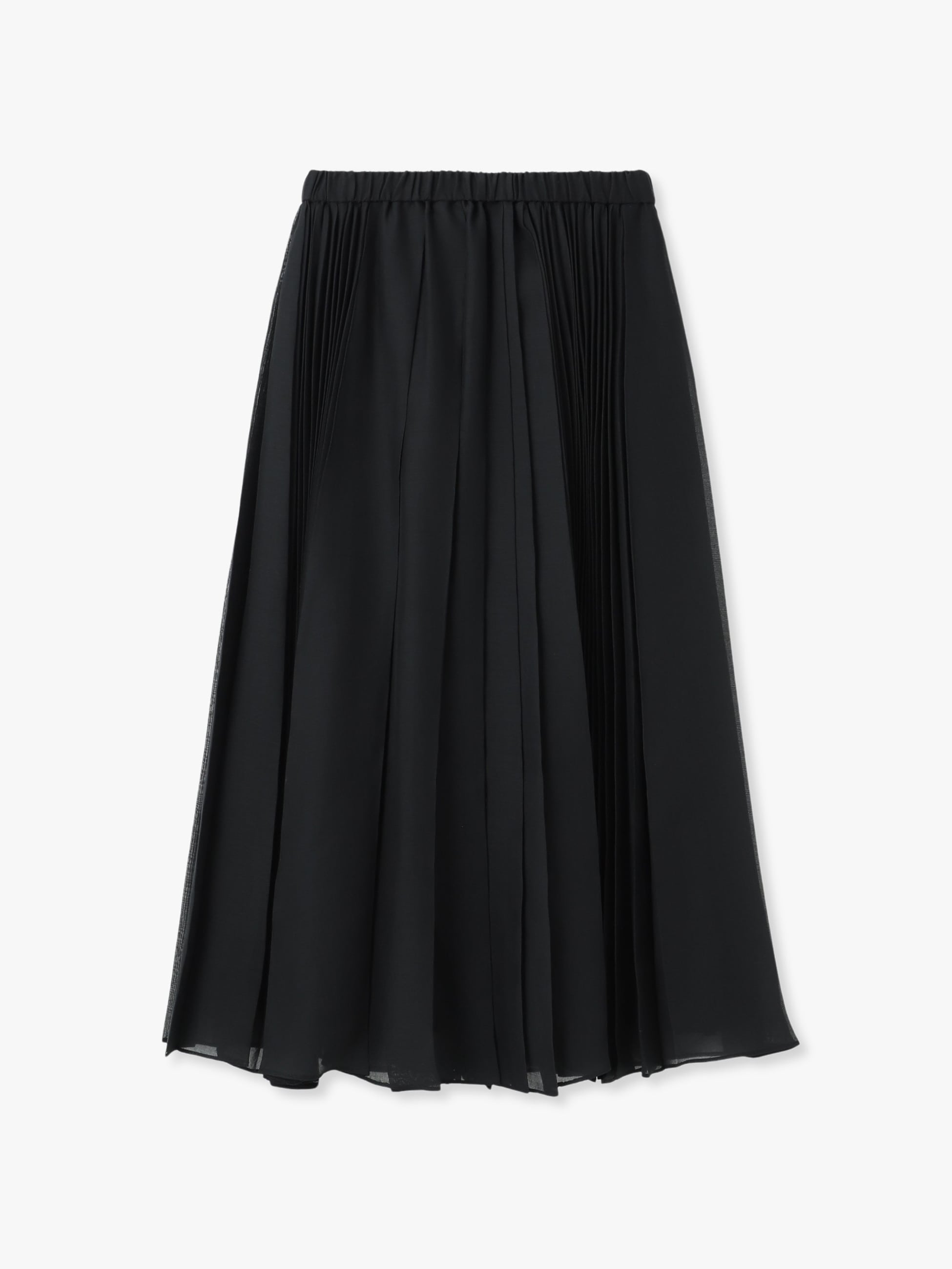 - ランダムな車ひだのプリーツと、アコーディオンプリーツをミックスしたスカートは、ラミー調のオーガンジーが軽やかな印象をプラスします。ウエストはゴム仕様で内側にはスピンドルが通っており、イージーな着心地です。シンプルなトップスと合わせるだけで着映えし、シックでありながらも華やかさを纏えるアイテムです。