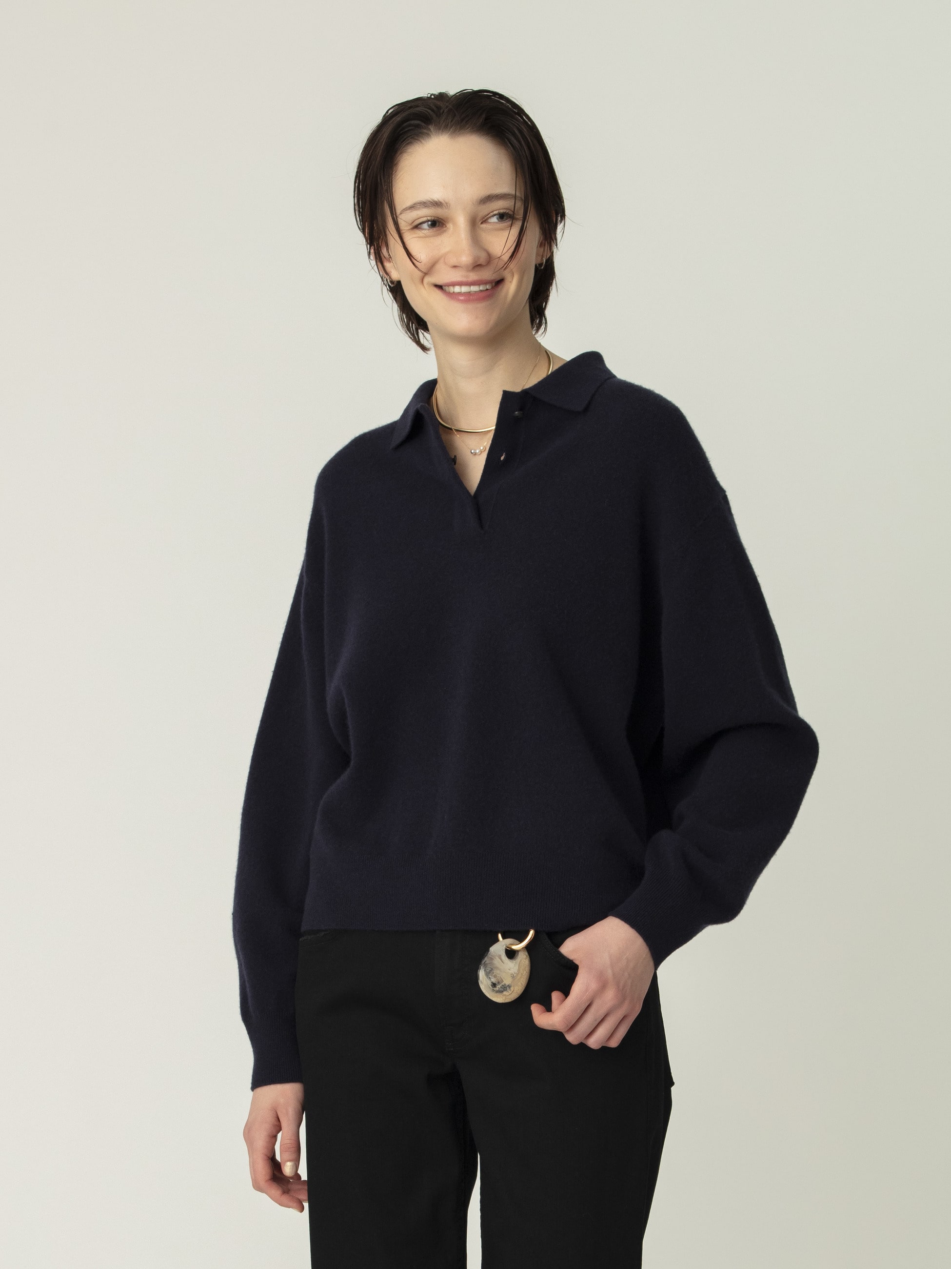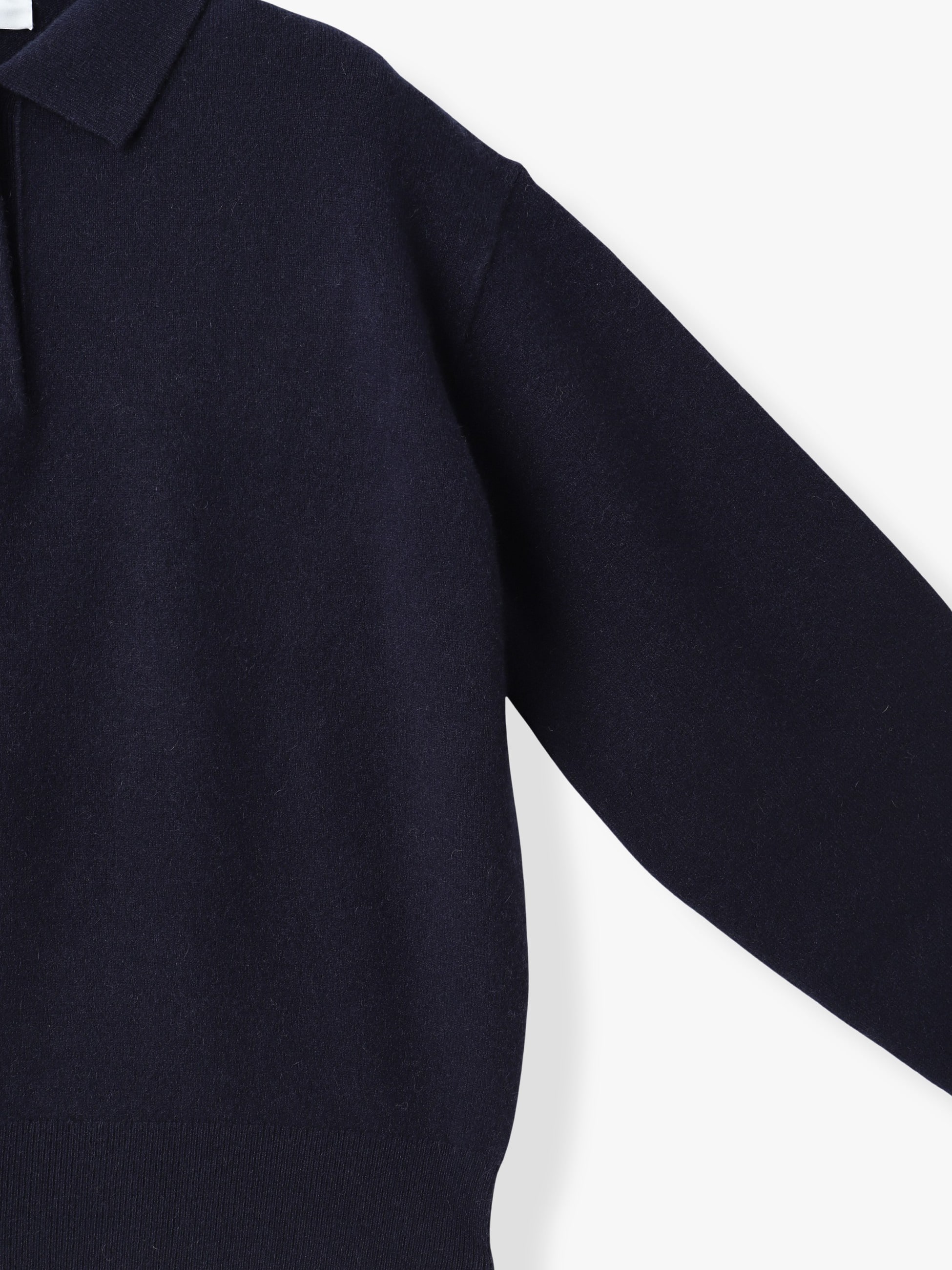 • ハイゲージカシミア ポロ ニットプルオーバー 詳細画像 navy