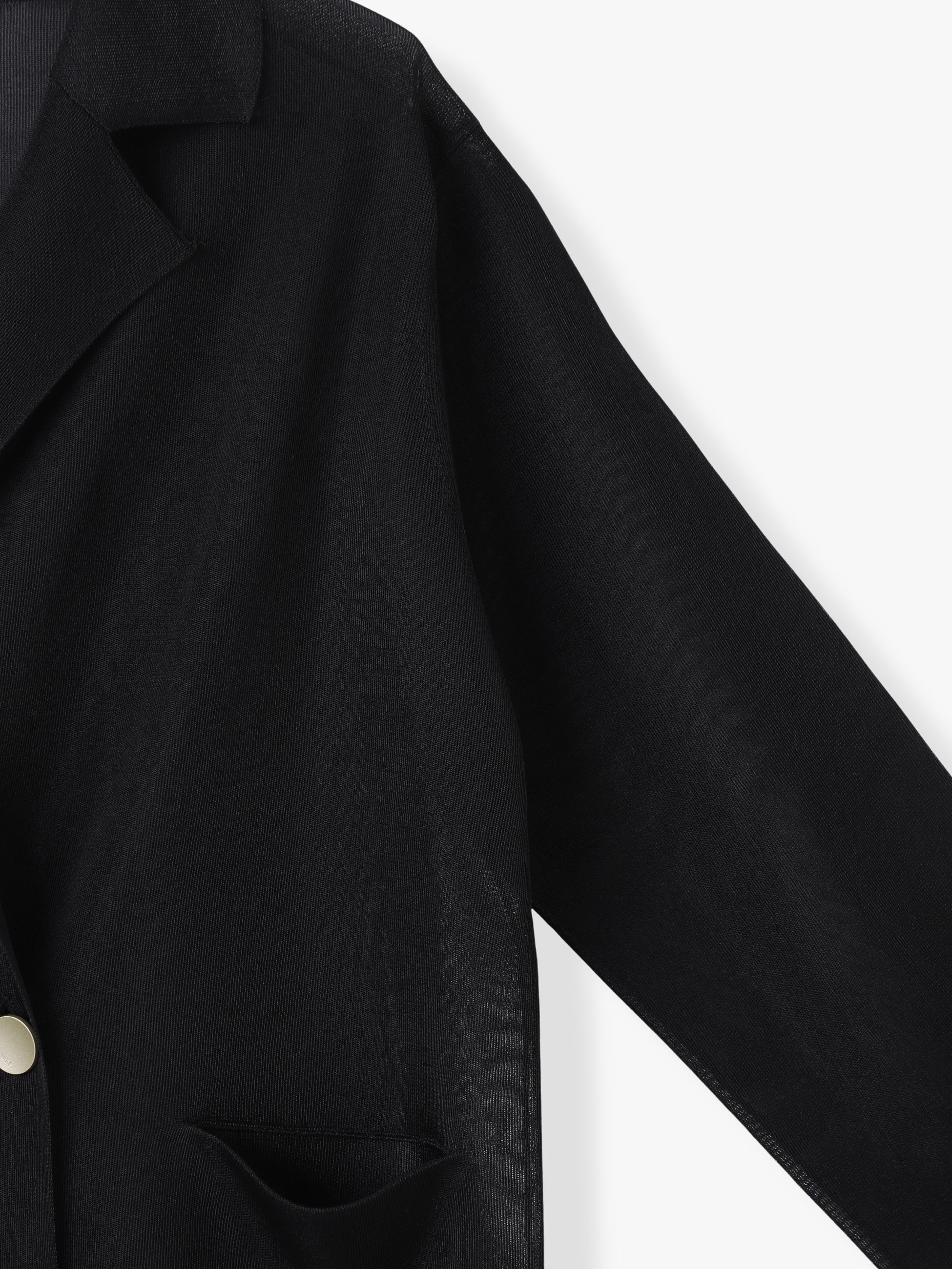 - 透け感が涼しげな印象のニットジャケットは、ややスクエア感のあるボックスシルエットで羽織るだけで様になります。シルクのように滑らかで上品な光沢感がある糸を使用し、またポリエステルが含まれているため、皺になりにくいのもポイントに。スムース編み組織にすることでスポンジーな感触もプラスされ、とても軽くラフに着ていただけます。新しい初夏の羽織りとしてもおすすめです。