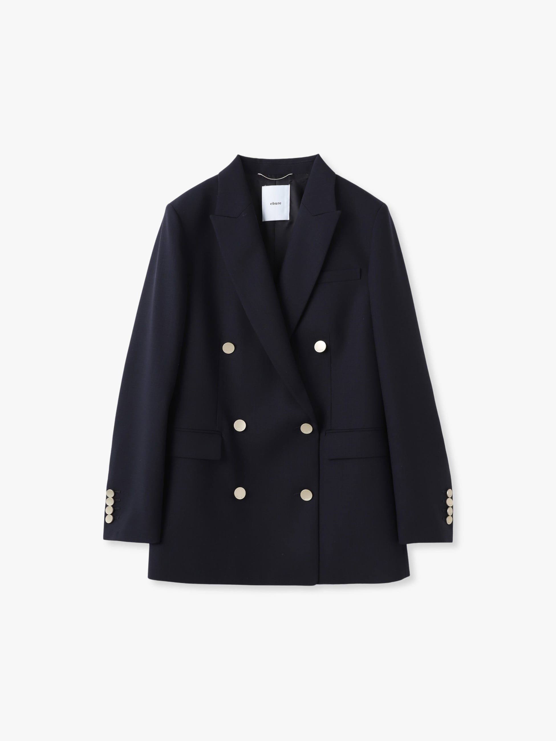 - ブランドロゴか刻まれたメタルボタンがアクセントのダブルブレストジャケットは、高密度に織り上げた綾組織のウール素材を使用し、目が詰まり毛羽立ちにくく、膨らみや落ち感のあるシルエットを引き立てる1枚です。ウエストがややシェイプされた上品なシルエットで、同シリーズのワイドパンツとセットアップでも着用いただくのも素敵です。