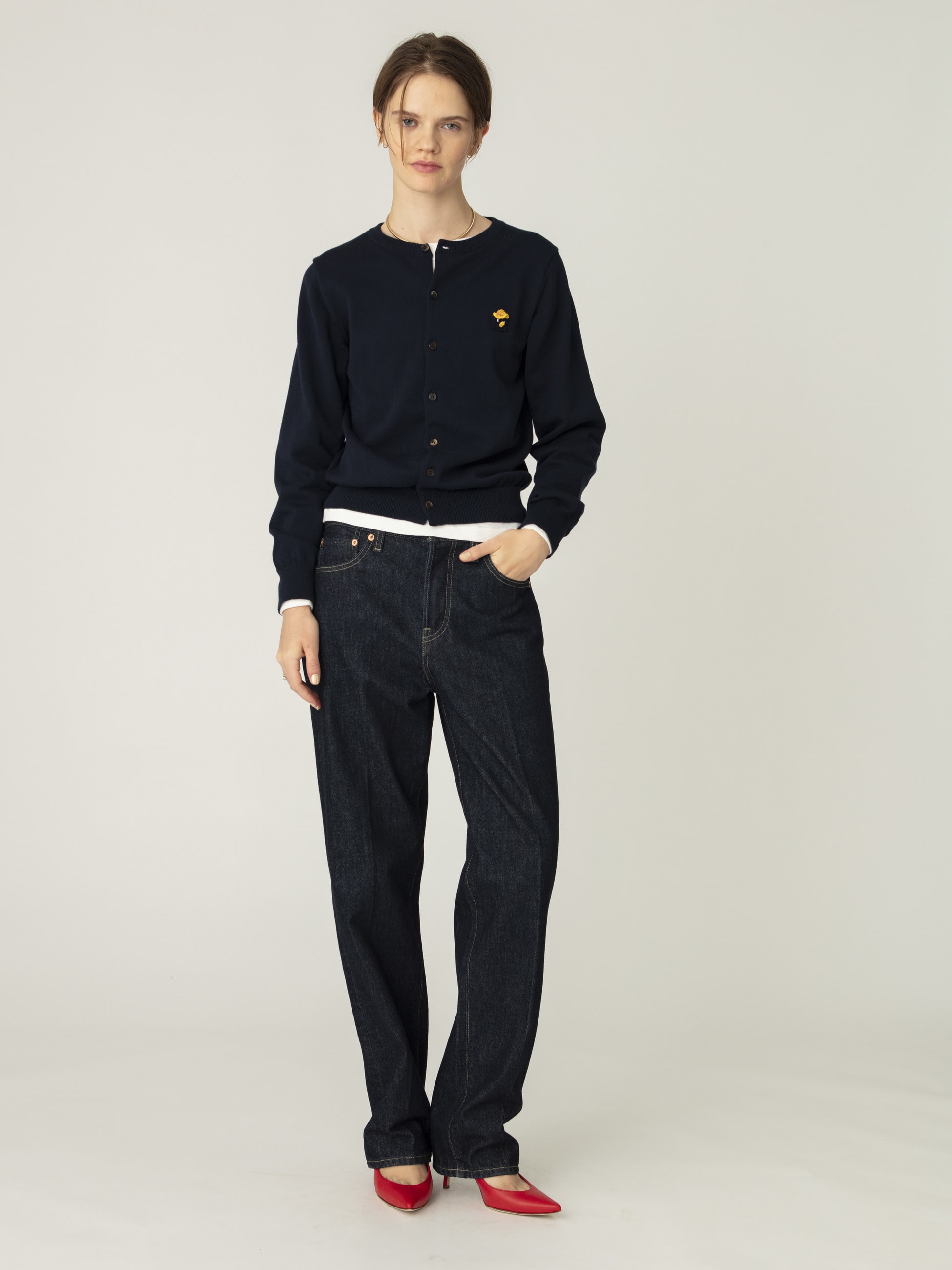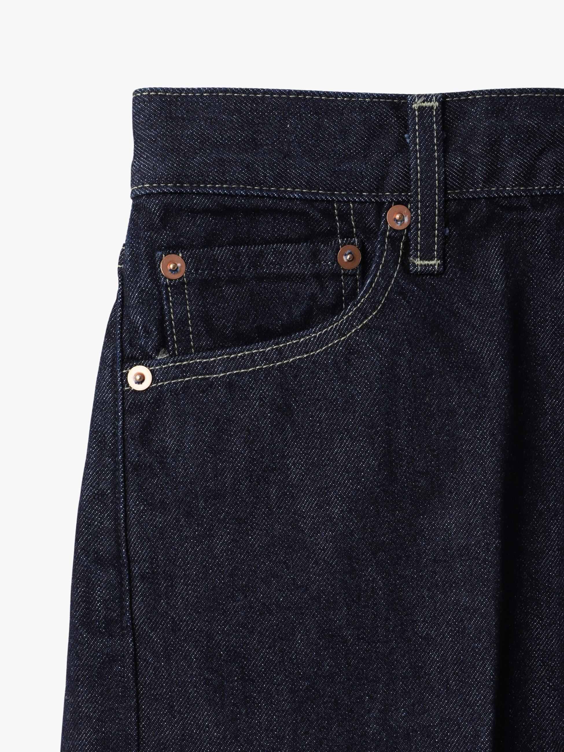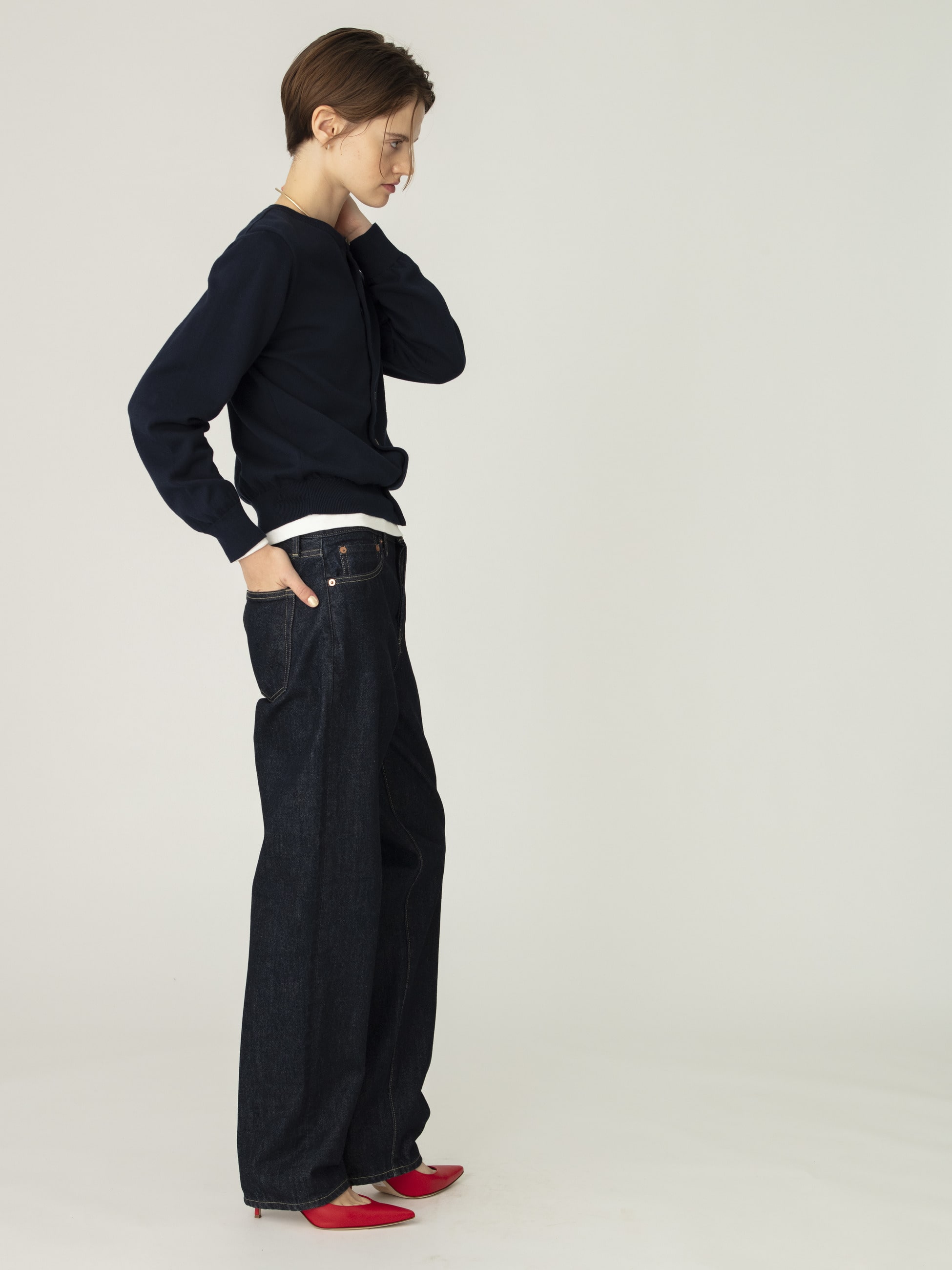 穿くだけで様になる、ストレートシルエットのデニムパンツは、オーセンティックなフィット感は踏襲しつつ、股上はやや深めに、ウエストやミドルヒップ周りはすっきりとしたサイジングに仕上げています。ヒップが高く見えるようパターンにもこだわり、センタープレスが大人っぽい品の良さをプラス。コートやジャケットなどの羽織や、ボリューム感のあるトップスとも好バランスで、シーズンレスで重宝します。