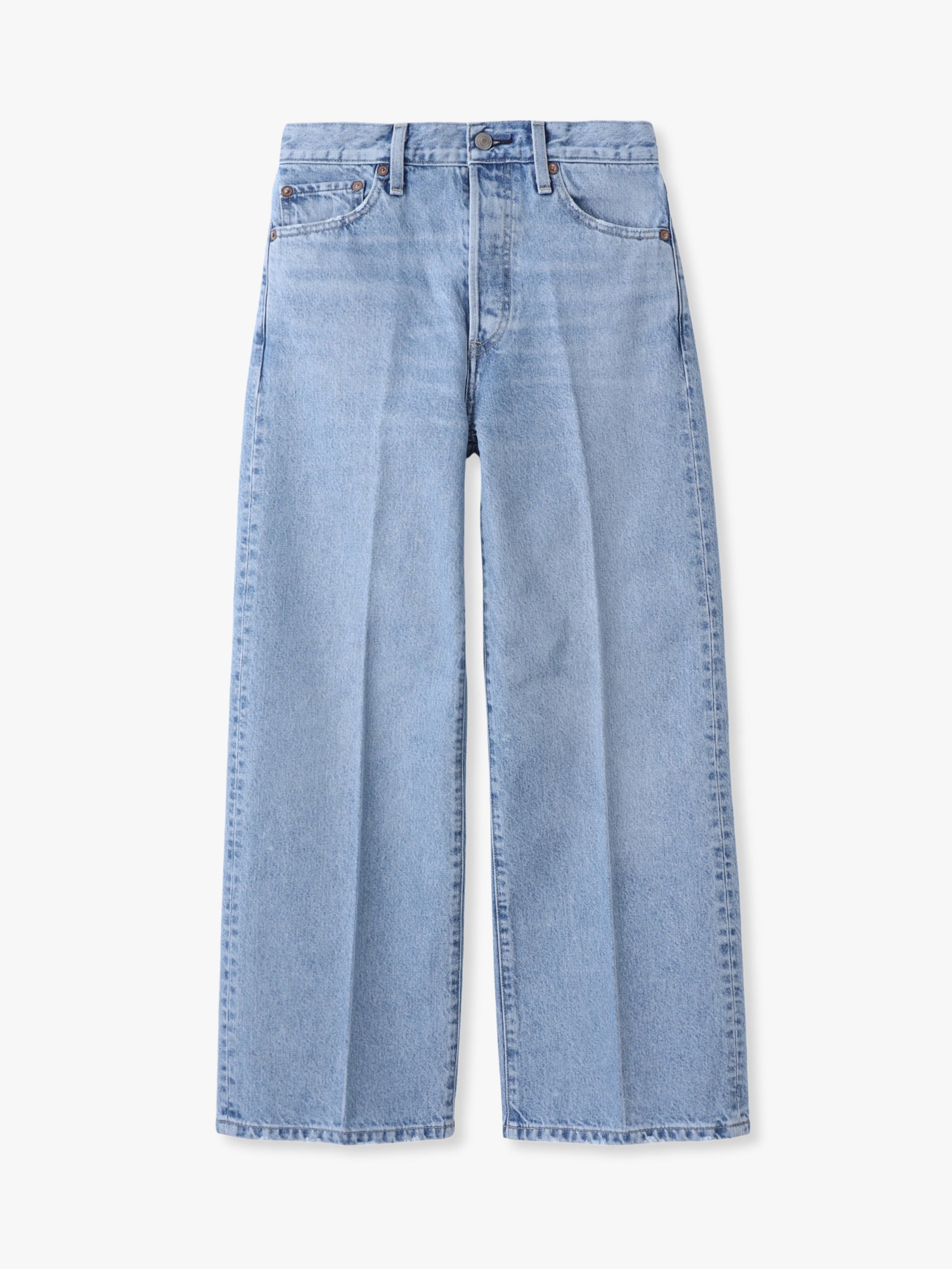 ワイドストレートシルエットのデニムパンツは、やや深めな股上がウエストやミドルヒップ周りをすっきりと見せ、後ろはヒップが高く見えるようなパターンが秀逸な銘品です。センタープレス部分にはさりげなくラインが入っており、洗ったあとも見た目のシャープさをキープ。トップスをウエストインした着こなしもバランス良く様になり、大人の品の良いカジュアルスタイルを演出します。