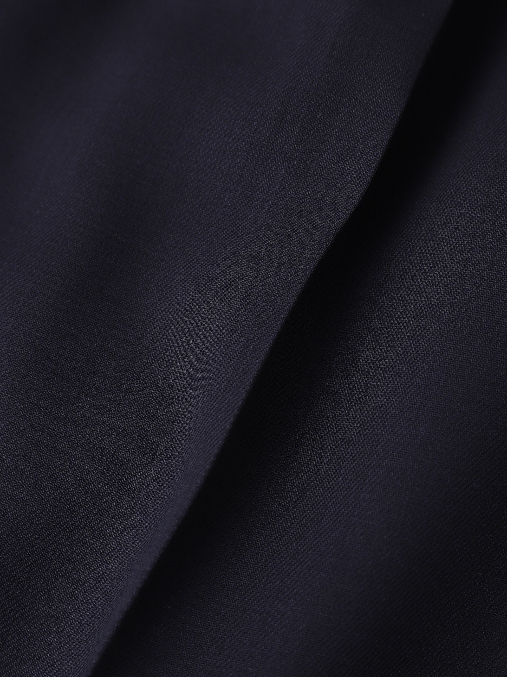 - ウエストベルトのメタルパーツがアクセントを効かせた、2タックのワイドパンツです。高密度に織り上げた綾組織のウール素材を使用し、目が詰まり毛羽立ちにくく、膨らみや落ち感のあるシルエットを引き立てる1枚です。同シリーズのジャケットとセットアップでも着用いただくのも素敵です。