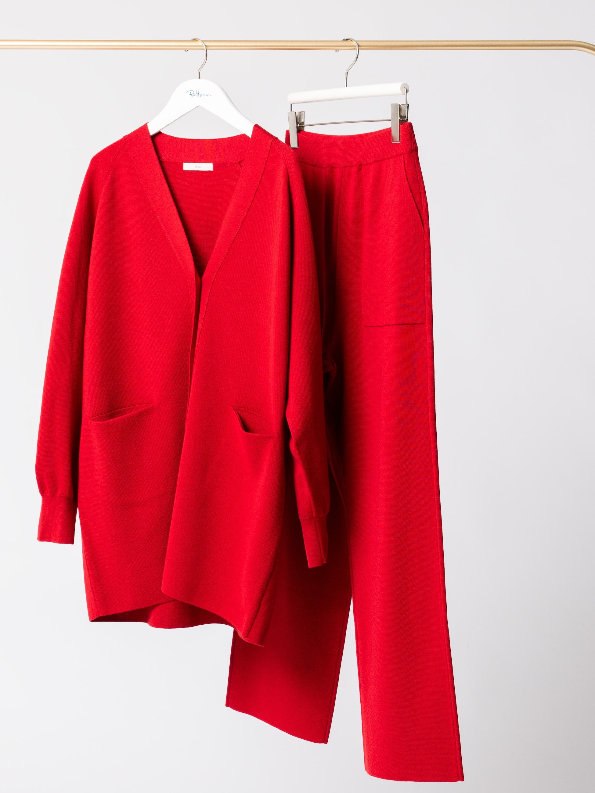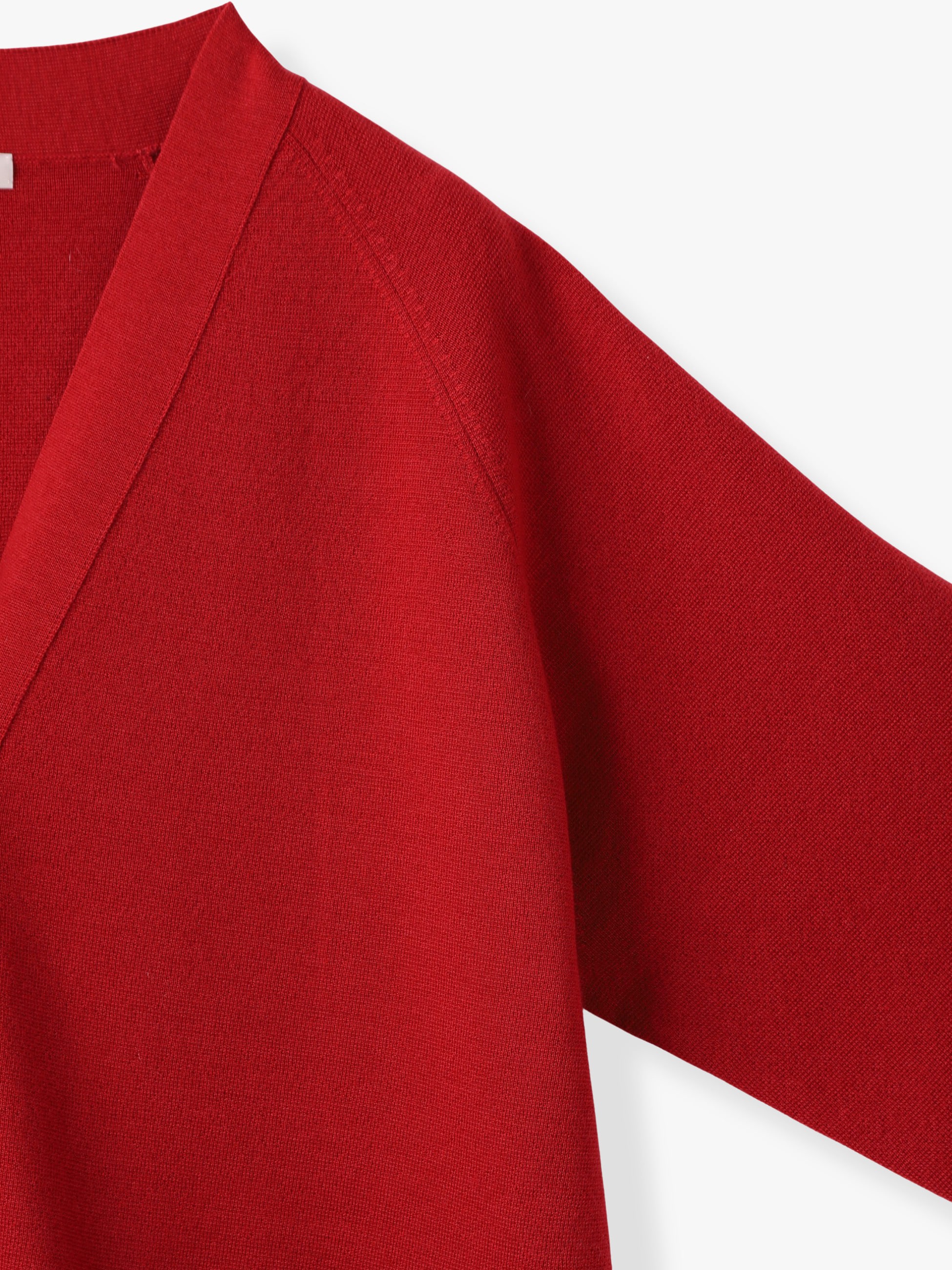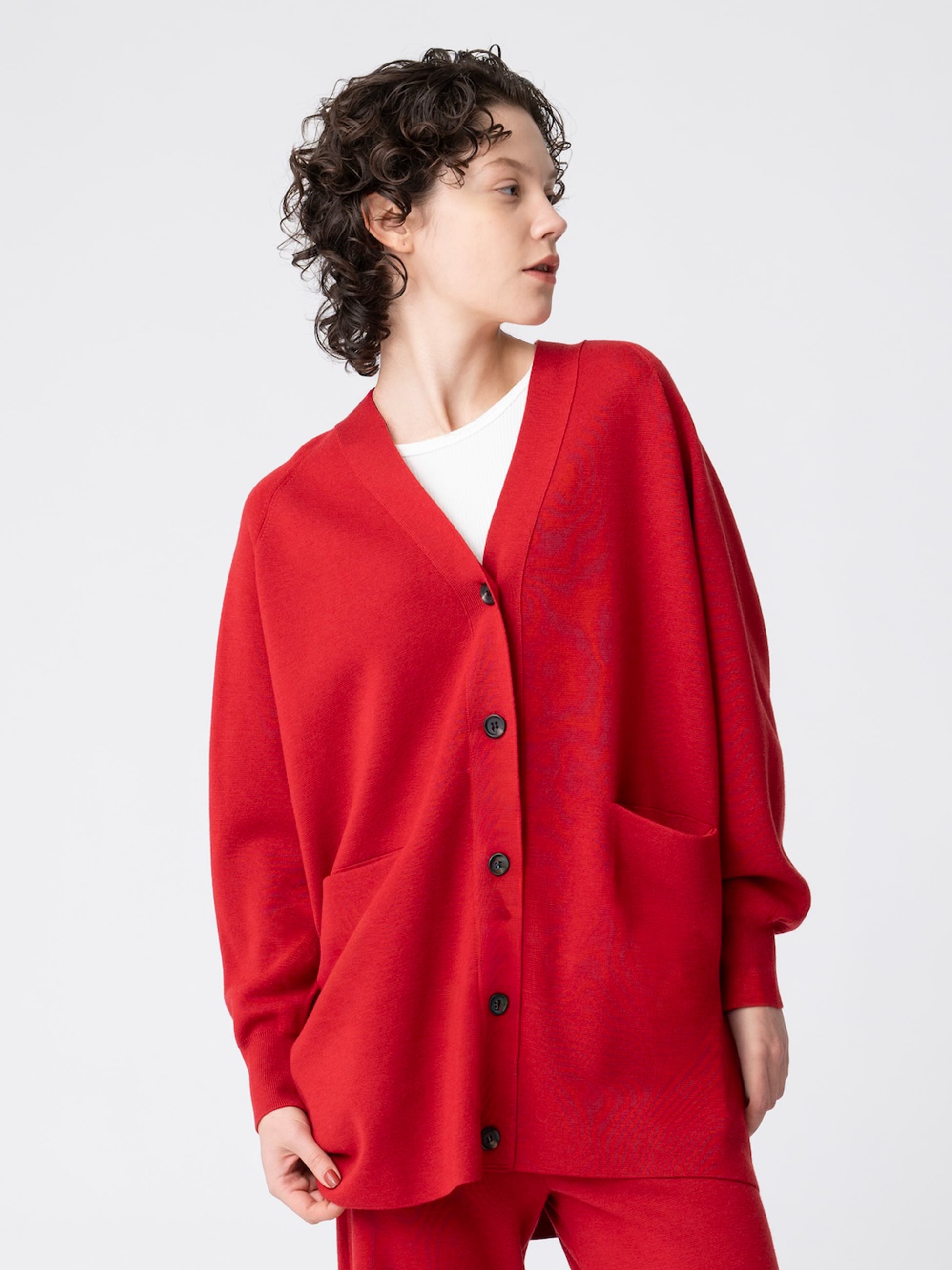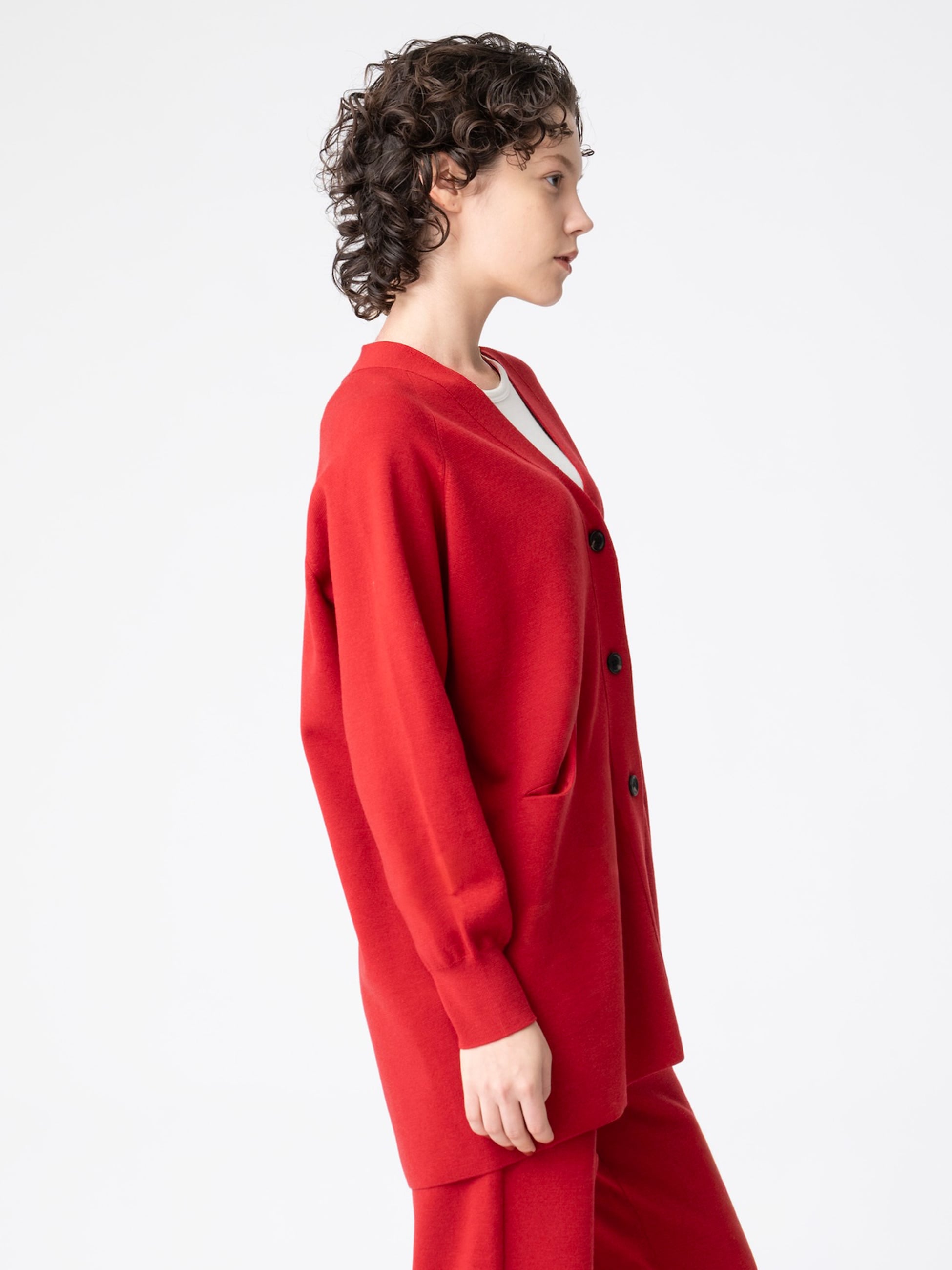 ebure × Ron Herman別注が、Living lineとして登場。裾の広がりをおさえたすっきりシルエットのミドルロングカーディガン。開きのあるポケット口がさりげないアクセントになり、羽織るだけでこなれた印象に。オーストラリア産ウールを使用し、柔らかな風合いと自然な光沢が魅力です。同シリーズのパンツと合わせたセットアップスタイルもおすすめです。