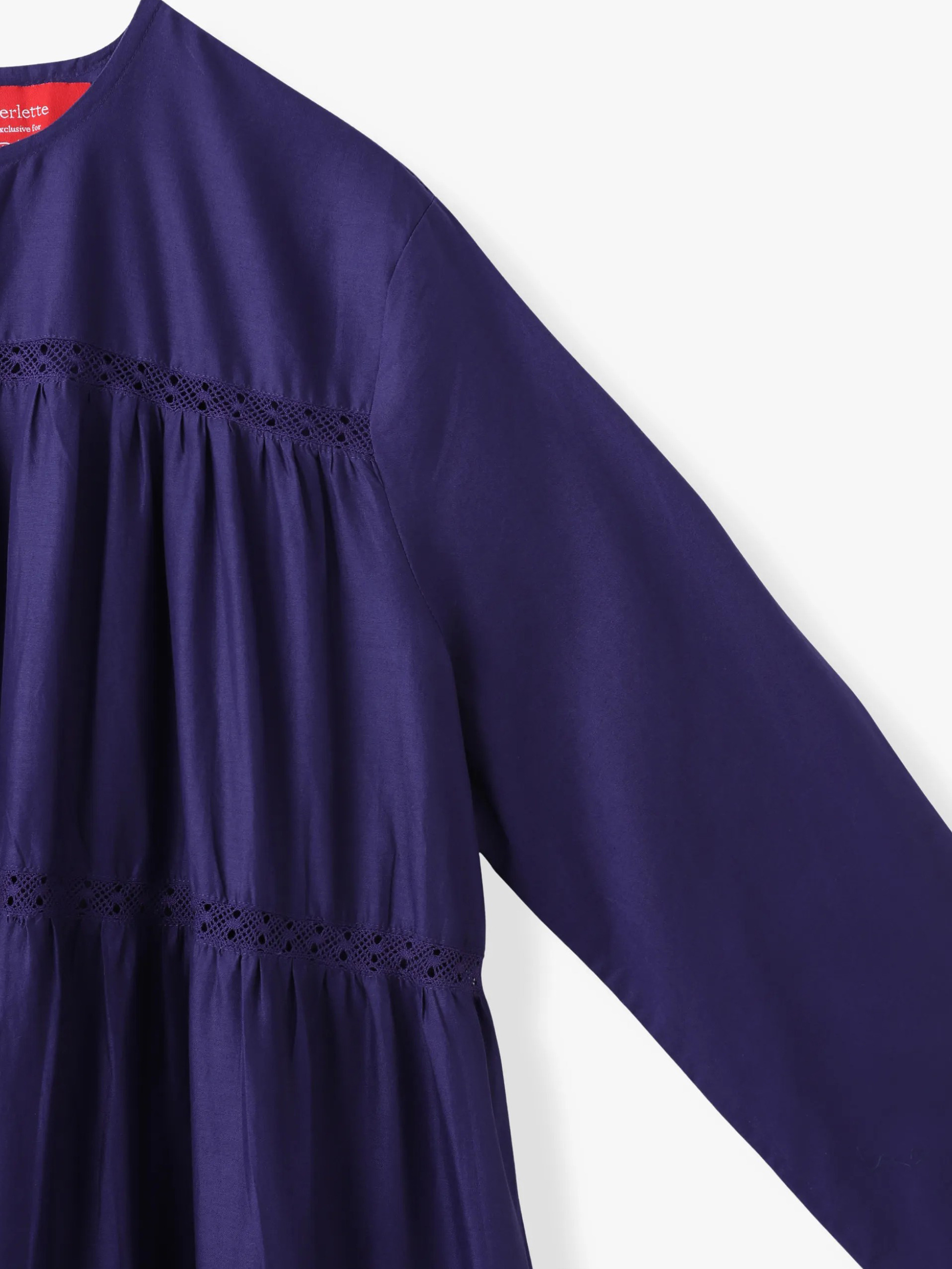 - MerletteのシグネチャーのひとつであるSOLIMAN(ソリマン)をベースにマキシ丈にアレンジしたティアードドレスMAIDA(マイダ)から、上品なネイビーカラーで別注したロンハーマン・RHC ロンハーマンだけの特別なドレスが登場です。くるぶしまでの着丈と、エアリーな質感のコットンローンがエレガントなタッチを添え、Merletteらしいボリューム感とストレートスリーブがドラマチックなシルエットを演出します。ドレスアップからカジュアルまで様々なシーンと時間に寄り添うワードローブの大切な一着となるアイテムをぜひお楽しみください。