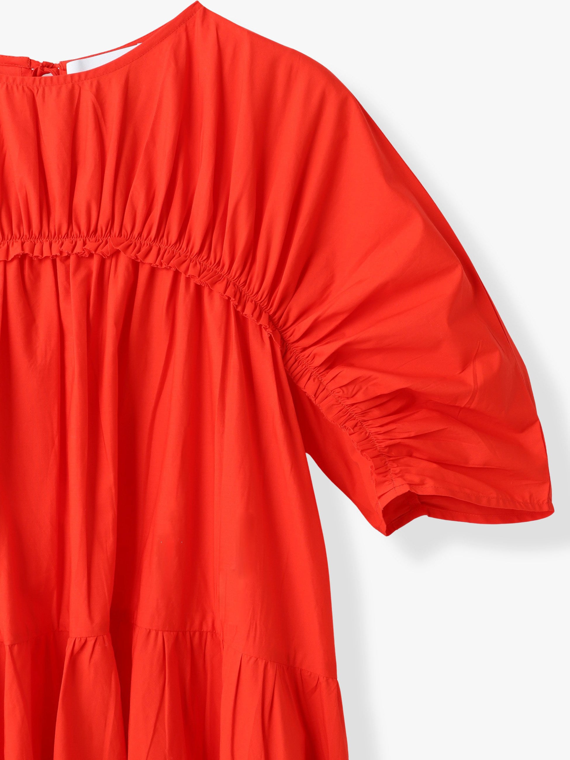 - 軽やかなピマコットンポプリンを使用したInes(イネス)ドレスは、動くたびに優美なシルエットを描くティアードデザインが、女性らしさを引き立てます。ギャザー入りのヨークに切りっぱなしのフリル、柔らかなドレープスリーブなどエレガントな雰囲気ながら、サイドポケット付きでお出かけシーンだけでなく、デイリーに着まわしやすいのも嬉しいポイントです。