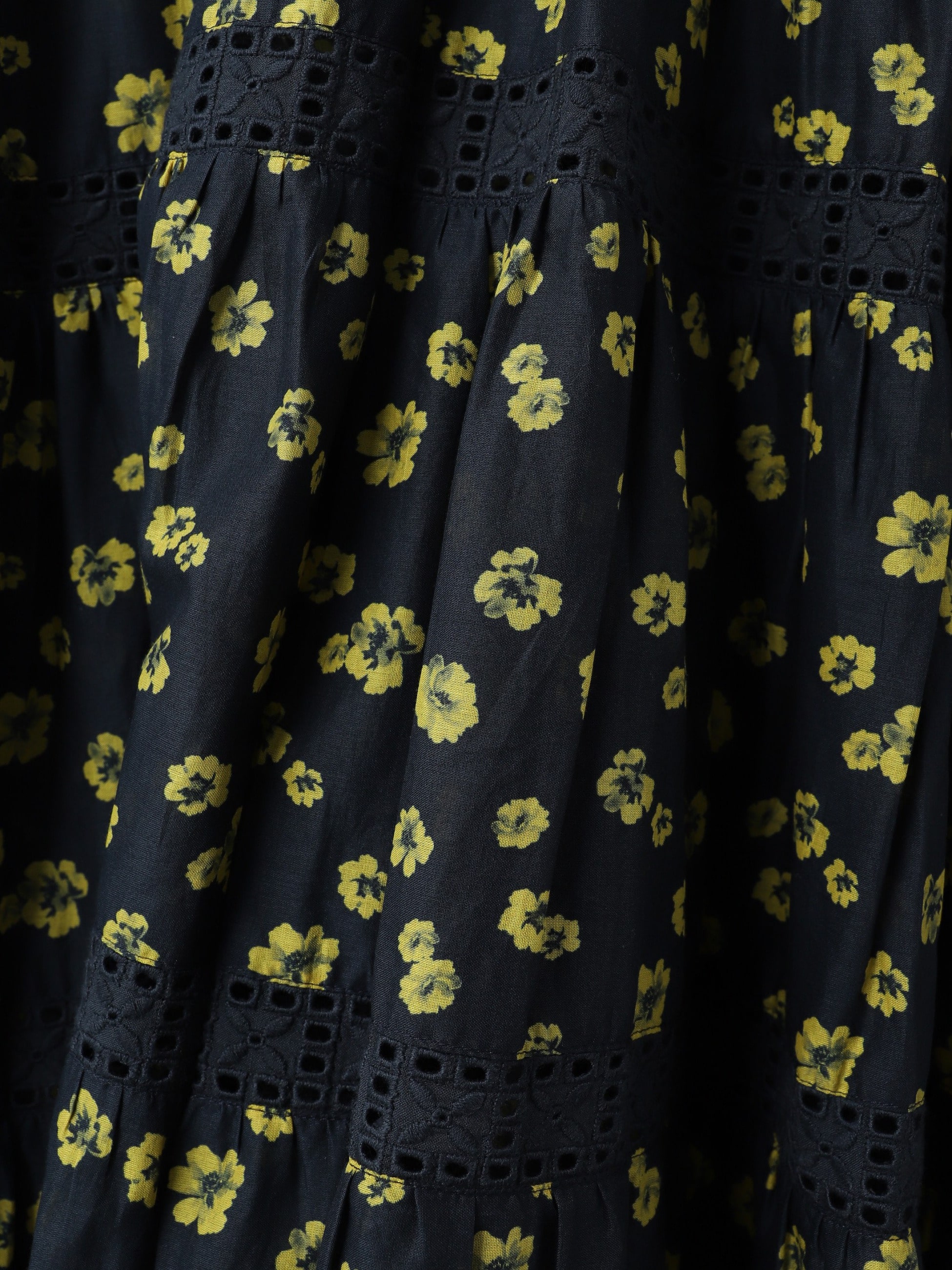 - 軽やかなコットンボイル素材に、レモン色の花柄のプリントを施した、華やかでありながらタイムレスな魅力を放つWallis Print(ワーリス プリント)ドレスです。ドロップウエストシルエットが美しく、歩くたびに優雅な揺れを演出します。ティアードにあしらったアイレットレースが質感に動きをプラスします
