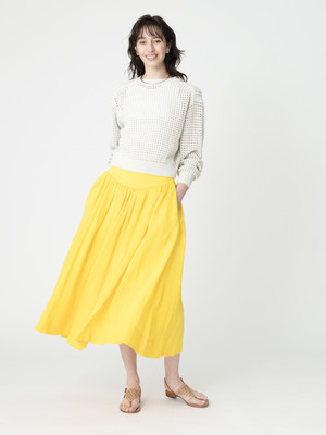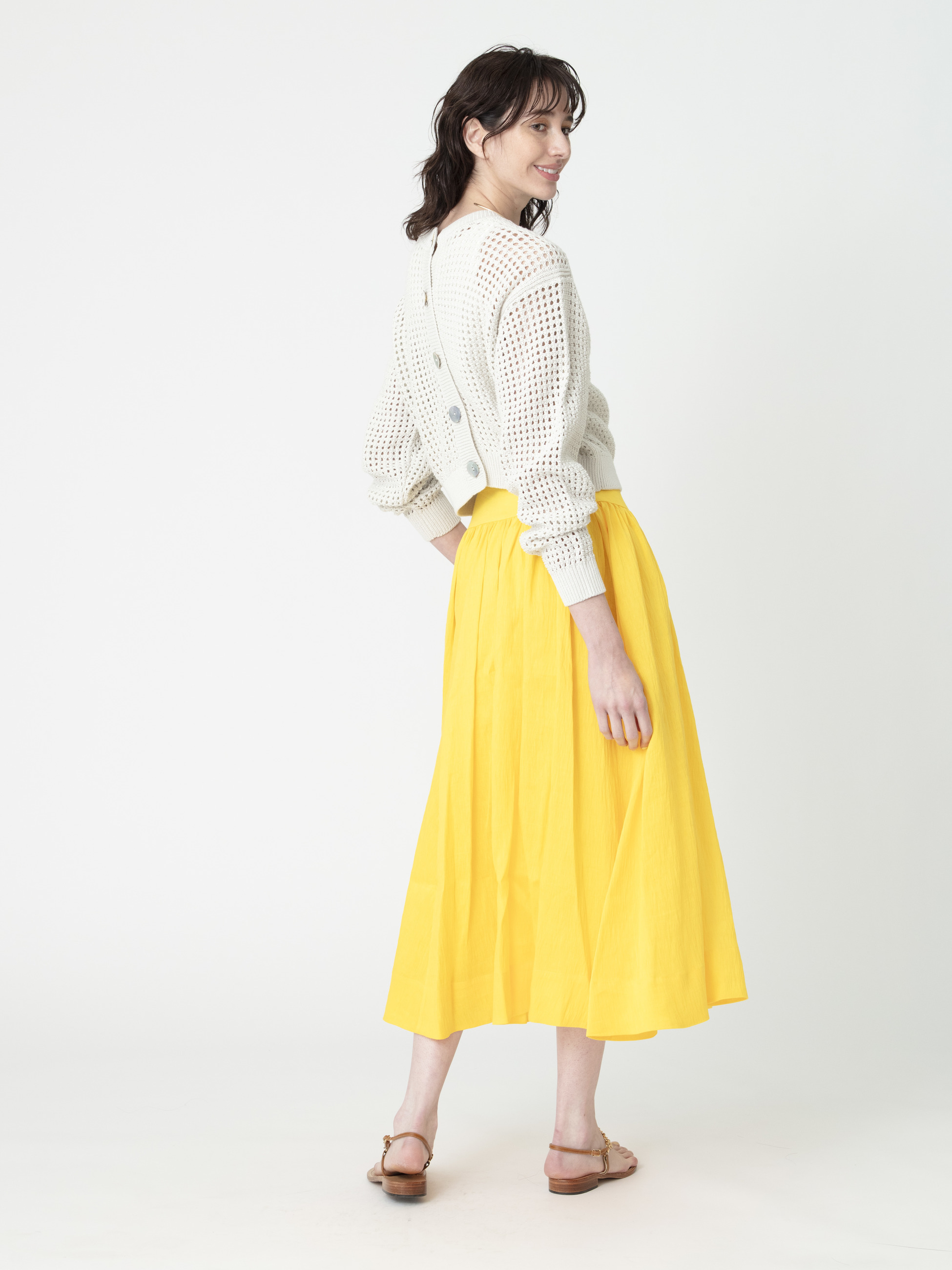 - 上質なリネン素材を使用したMire(マイア)スカートは、フィット感のあるヨークからミディ丈のギャザーシルエットを引き立て、エレガンスな印象です。柔らかなコットンボイル素材の裏地つきで、サラっと心地よく着用いただけるのも嬉しいポイントです。