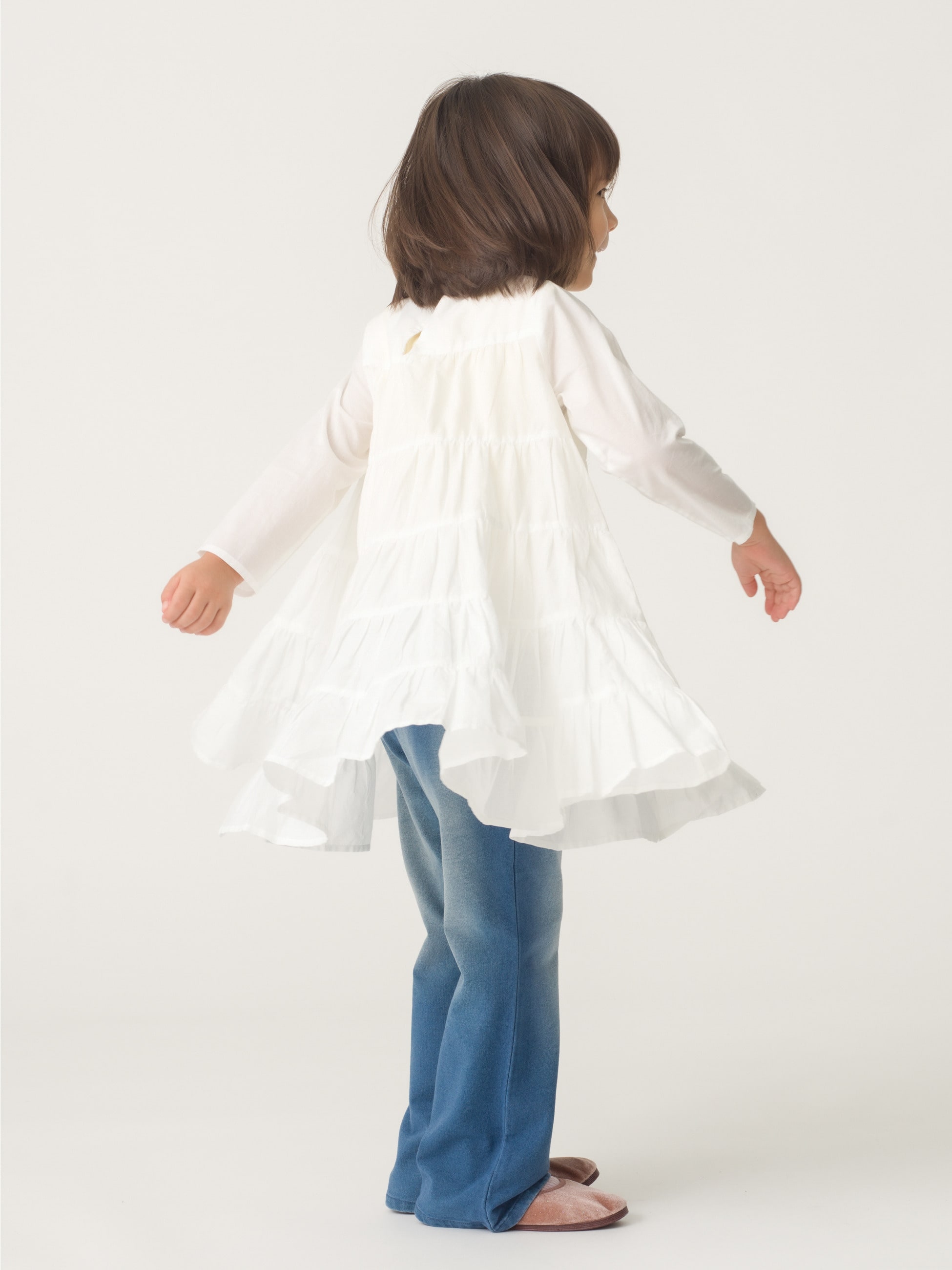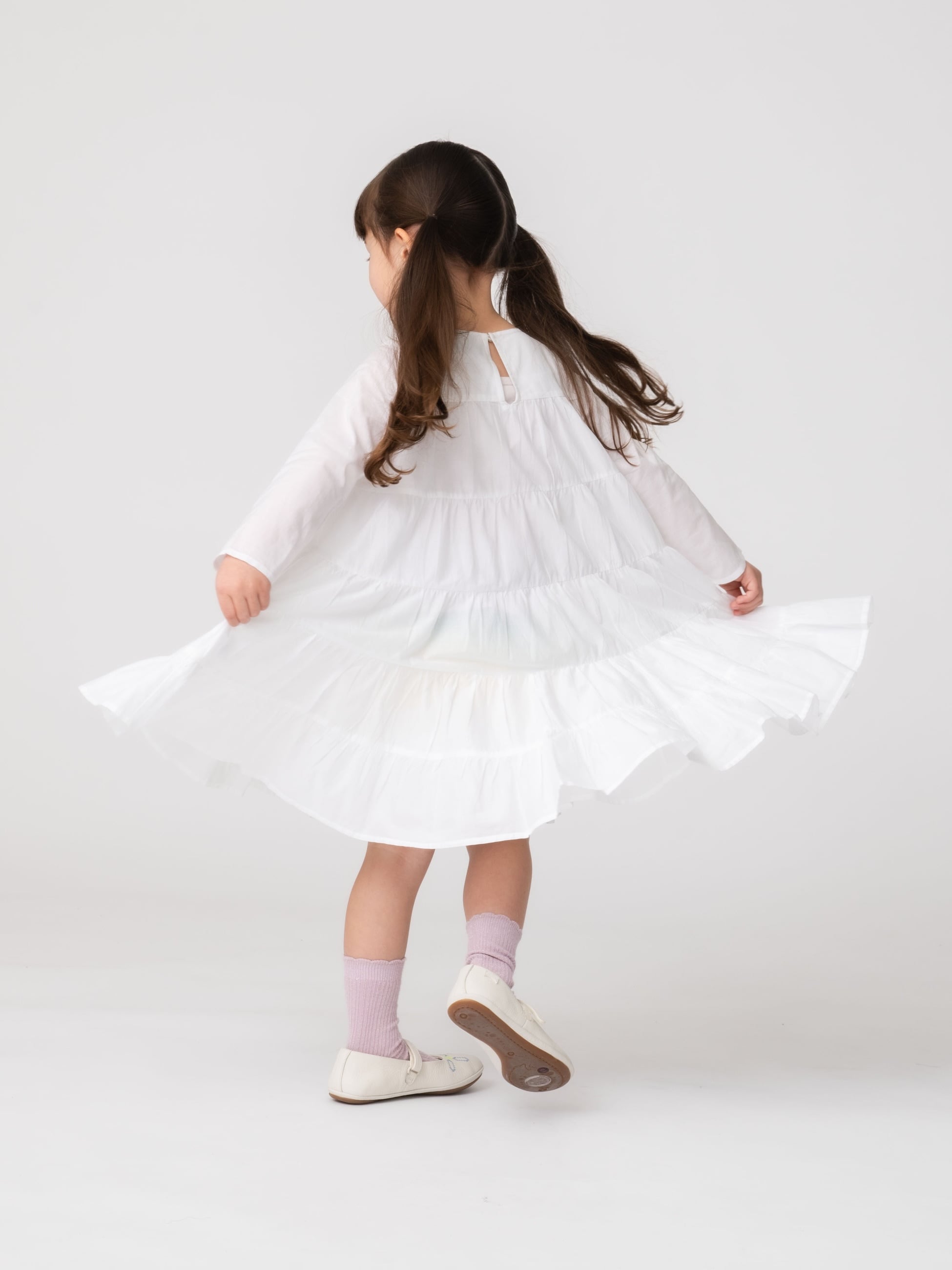 ベストセラーSOLIMANドレスから、待望のキッズサイズが登場です。お子さまが小さなうちは一枚でドレスとして、成長に合わせてチュニックとして着用いただけます。親子でMerletteのドレスを着てお出かけする、そんなワクワクを叶えてくれるアイテムです。ピュアなホワイトとプリンセスのようなふわっと広がるドレスは、いくつになっても女性の憧れ。ドラマティックな高揚感を、お子さまとぜひ一緒にお楽しみください。