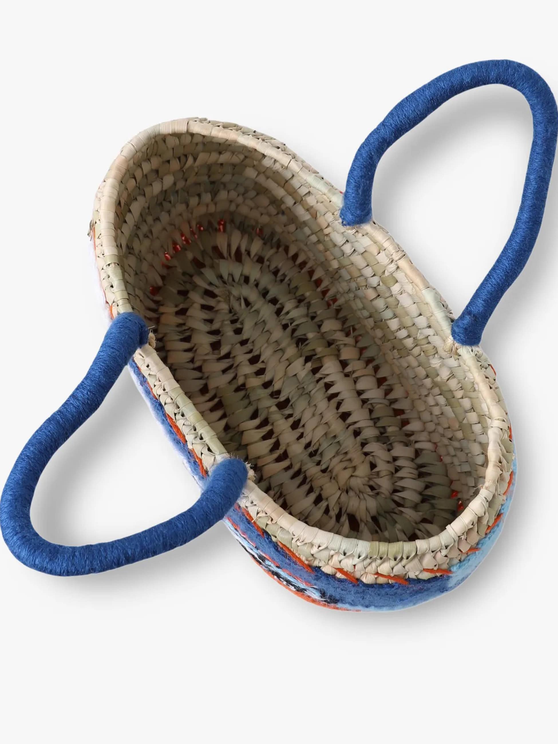 KILOMETRE PARISのシグネチャーのひとつであるUNDERCOVERバスケットバッグのマイクロサイズです。壮大なアルプス山脈に囲まれた、雪積もる丘の上に位置するスイス有数のホテル「グシュタード パレス」にロールスロイスで赴くようすを、色鮮やかなタペストリーで表現したバッグが、オンラインストア限定で登場です。モロッコの職人により丁寧に手作りされ、ショートハンドルで手持ちで運びやすく、日常や旅のお供に持ち運びたいアイテムです。洗練された職人技を堪能できる唯一無二の逸品を、この機会にぜひお楽しみください。