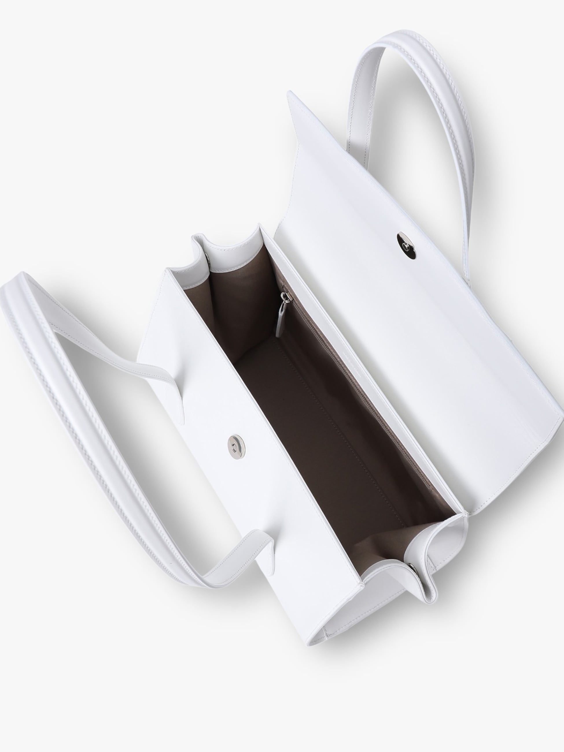 Carolina Santo Domingoのイタリア産のカーフレザー素材を使用した「TRAVEL BAG」から、ひと回り大きいサイズ(30cm)がロンハーマンエクスクルーシブで登場です。ミニマルで洗練されたデザインはそのままに、荷物をよりたっぷりと収納できる容量で、使いやすさも兼ね備えています。長めに設計されたハンドルは、ニットやアウターなど、厚手の洋服の上からでもしっかりと肩に掛けやすい仕様なのも嬉しいポイント。シンプルにそのままお使いいただくのはもちろん、お手持ちのキーホルダーやAnne Marie Herckesのチャームピンを付けて、自由にアレンジをお楽しみいただくのも素敵です。ひと回り小さめサイズのトラベルバッグ(25cm)はこちらから。
