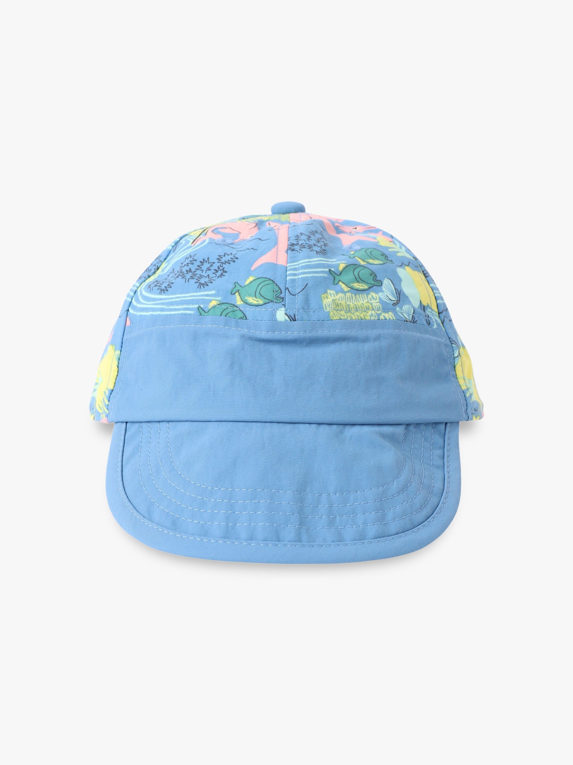アマゾンをイメージしたカラフルなイラストが楽しいベビーキャップは、軽量な素材を使用しているため快適な被り心地です。つばの裏側にはまぶしさを抑える濃い色を配しているため日差しが強い日も安心です。後頭部のストラップでサイズ調整ができ、成長に合わせて長く使えるのも嬉しいポイントです。