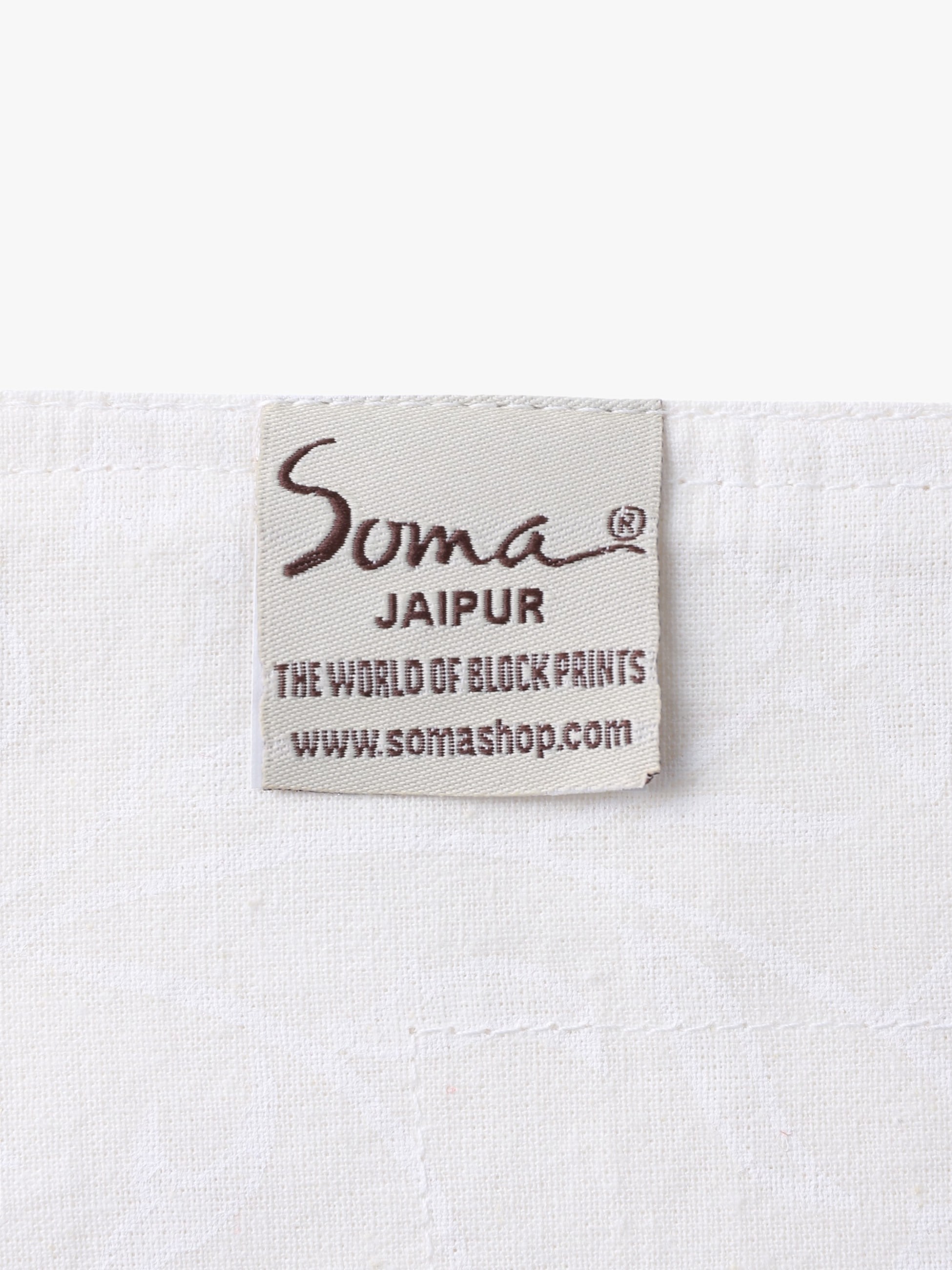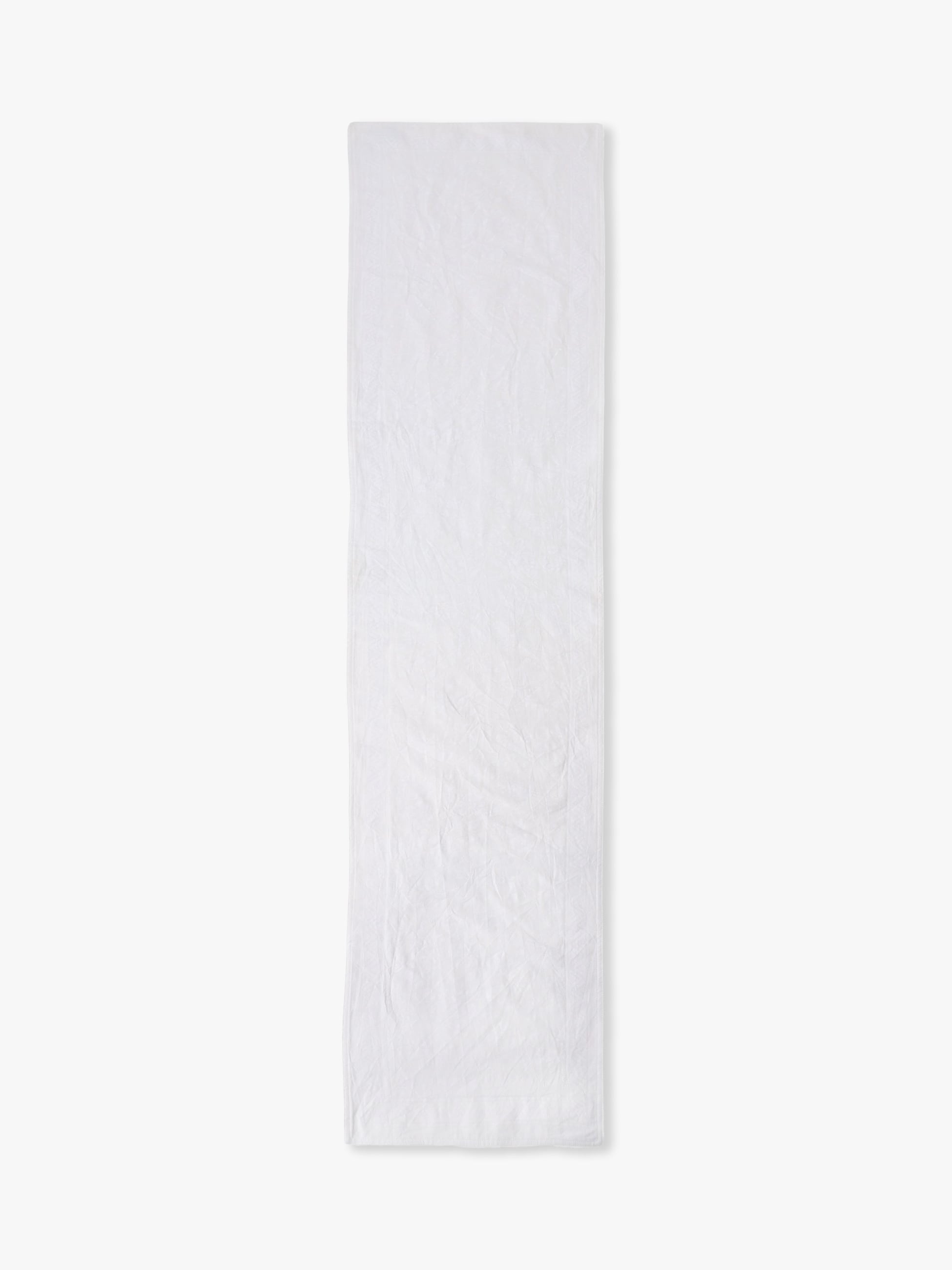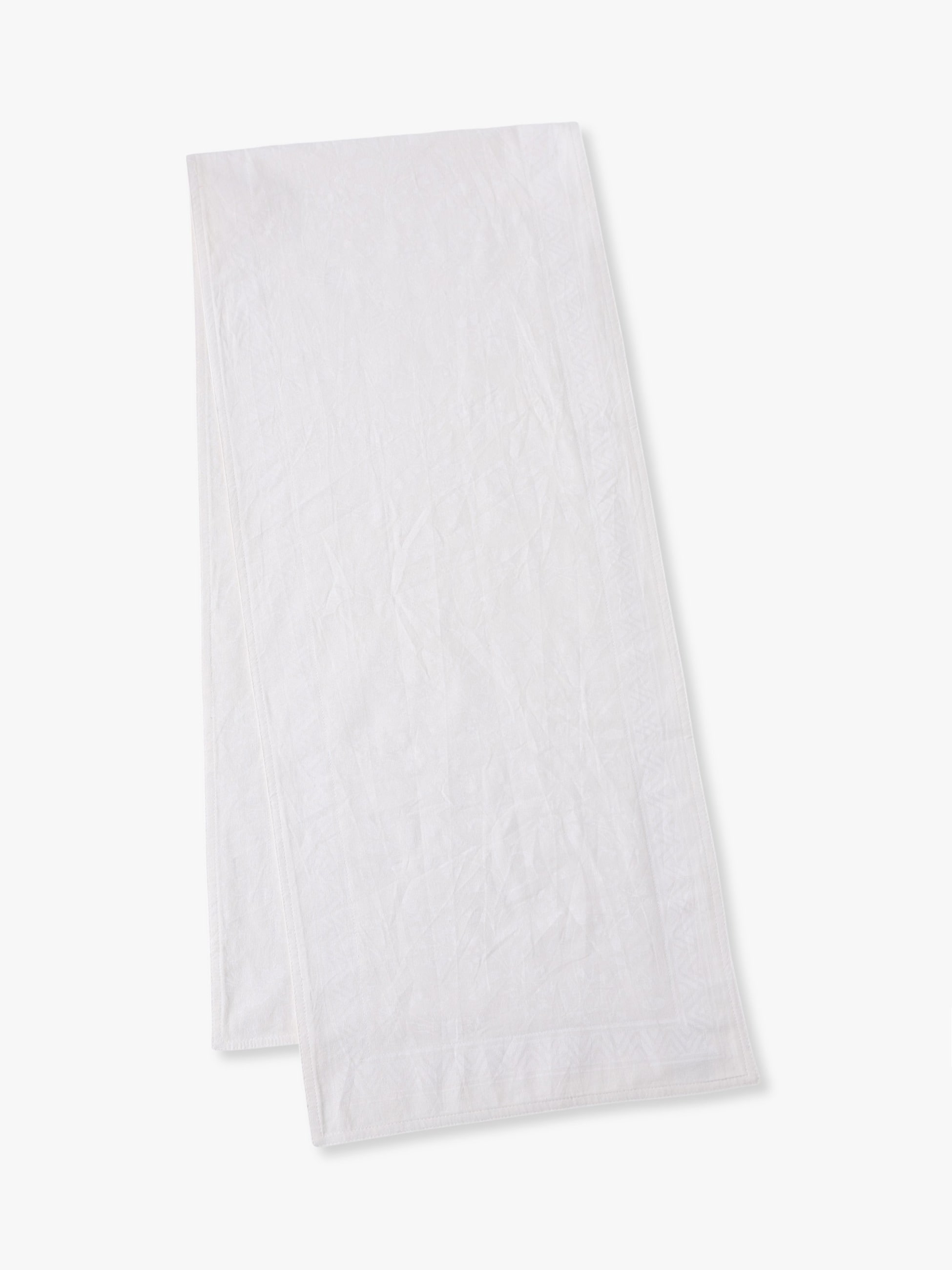 - 白地に同色で施した抜染プリントが印象的なテーブルランナー。柄の主張を抑えた上品なデザインで、食卓に自然と馴染みます。コットン素材ならではの柔らかな風合いで、季節を問わず取り入れやすい一枚です。