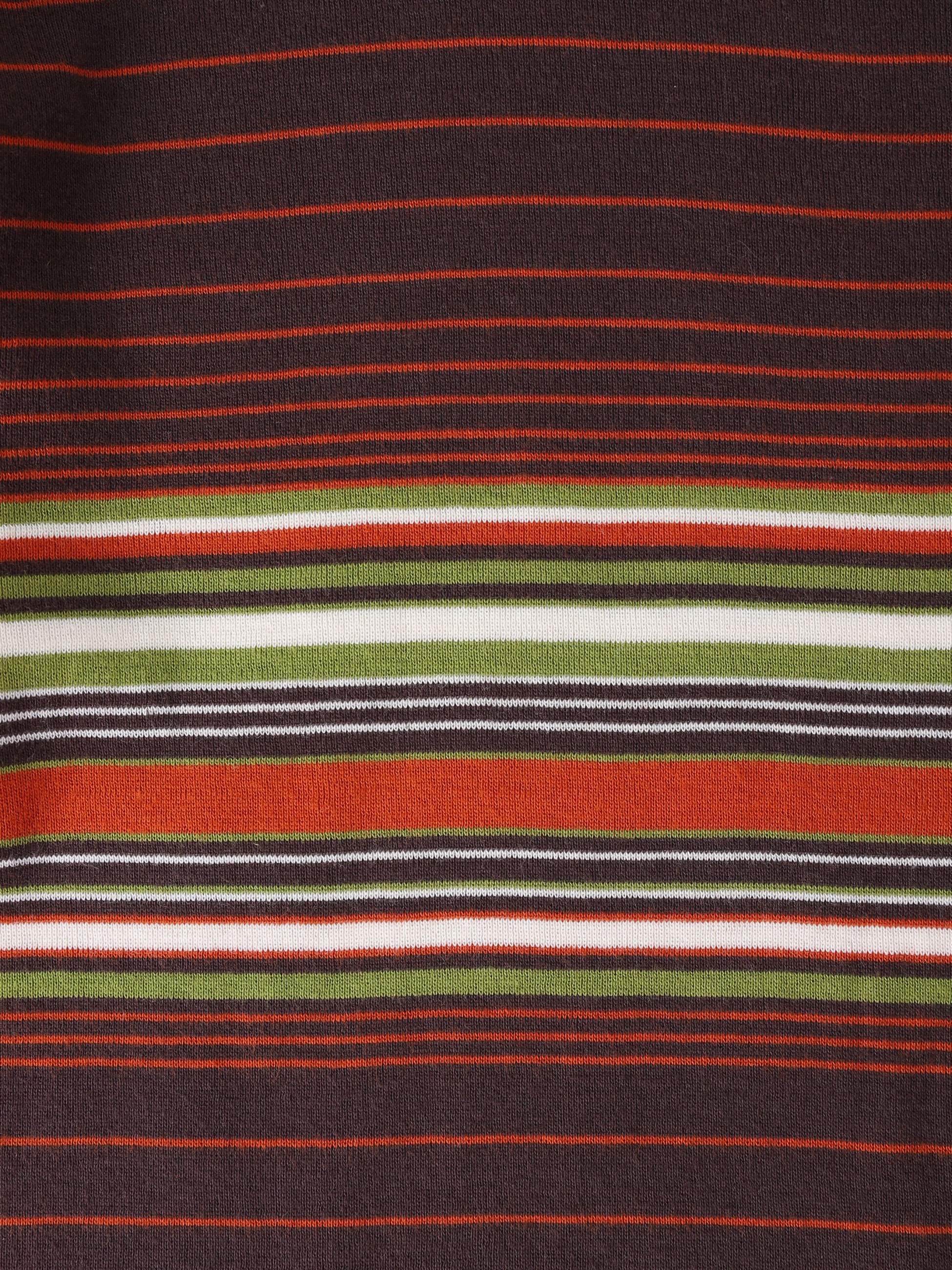 オーガニックピマコットンを使用したロングスリーブTシャツは、ゆったりとしたボクシーなシルエットとドロップショルダー、肩のスナップ留めが特徴です。秋冬を思わせるカラーリングは、それぞれのストライプの色を別々に染めてから編み合わせているため色持ちが良く、着心地の良さも兼ね備えています。