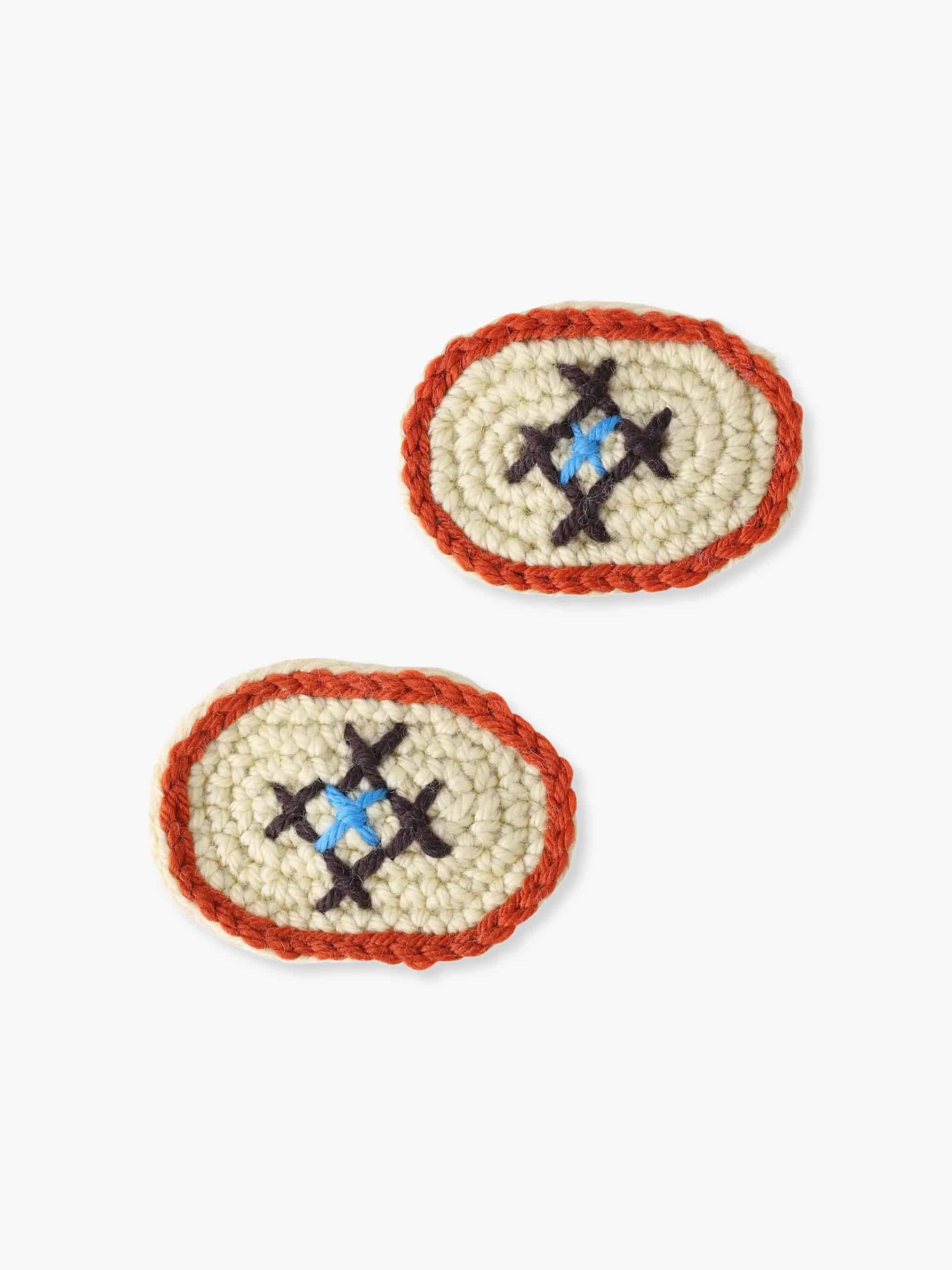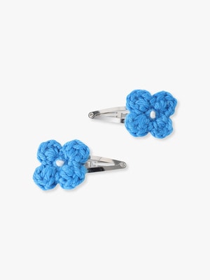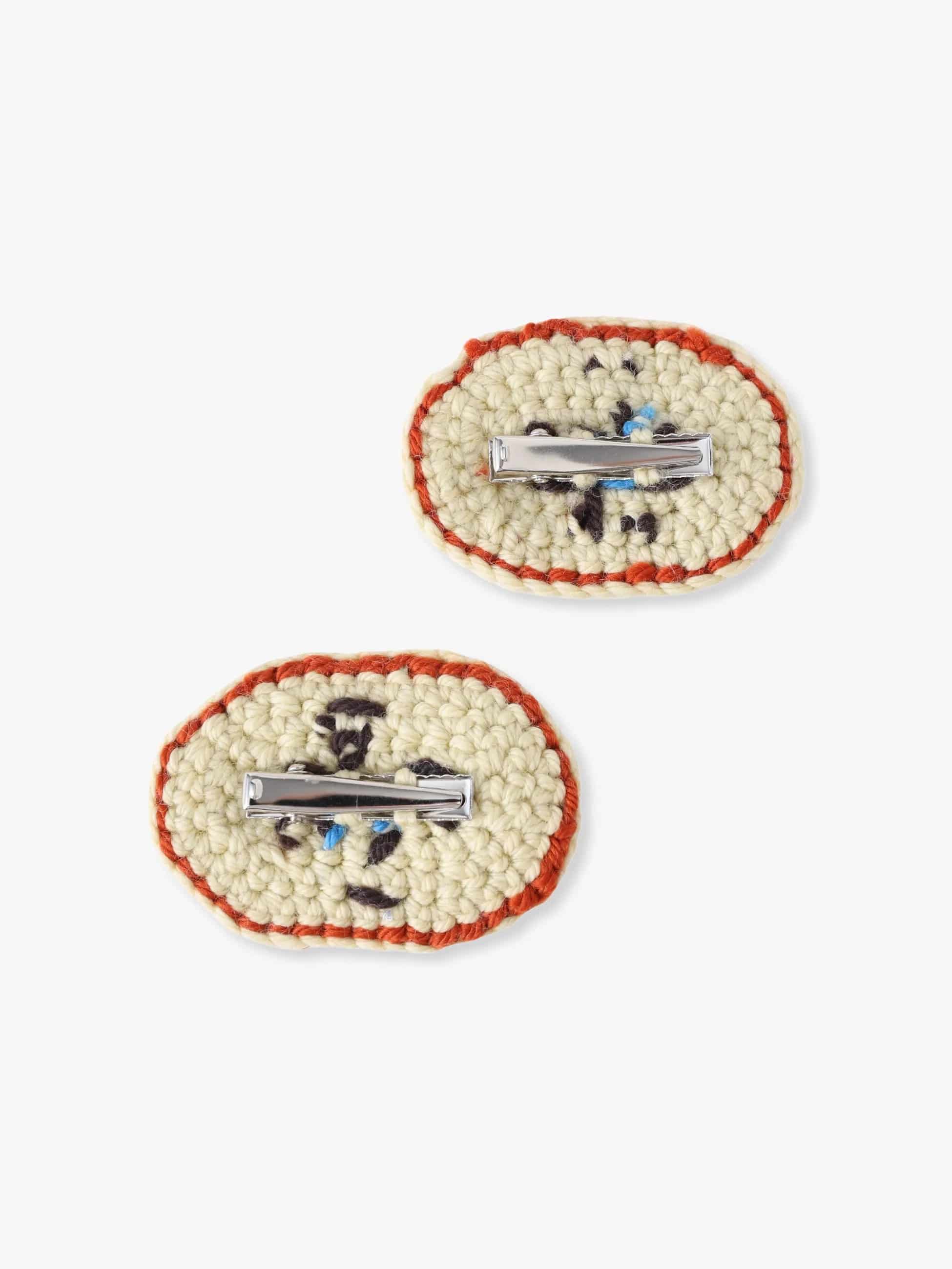 手編みのクロスステッチがアクセントのへアクリップセットは、ワニ口クリップ仕様で簡単に着脱できます。コーディネートにさりげない華やかさを添えてくれます。