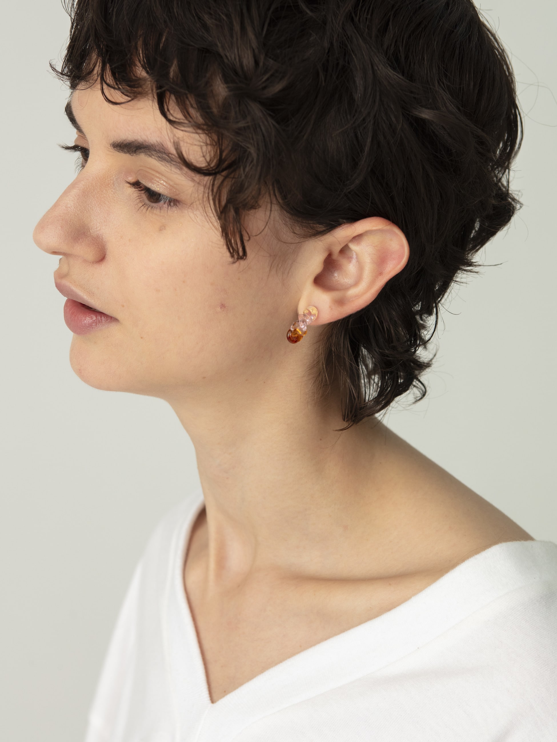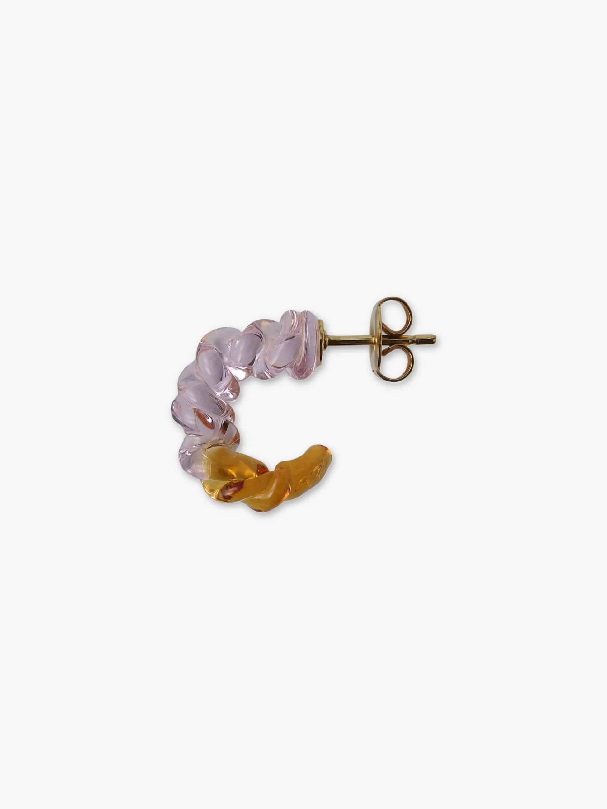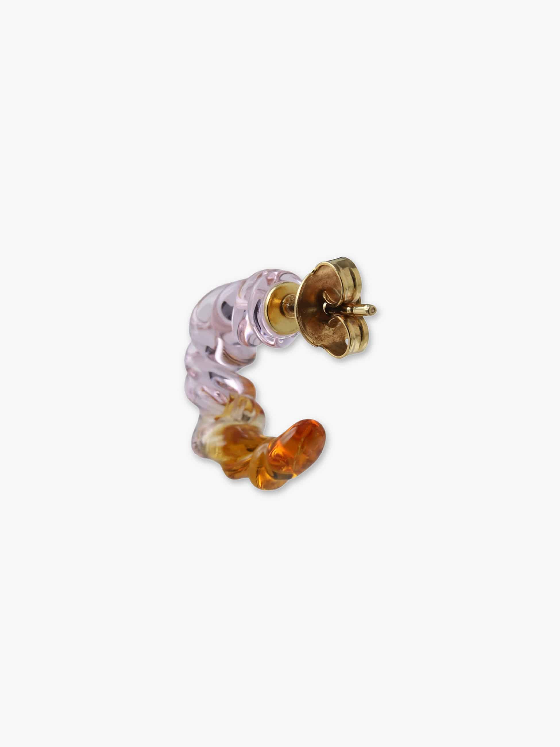 - バイカラーの半円フープピアスは、甘酸っぱいカラフルなカラーリングをセレクトし、程よいボリューム感でRHC ロンハーマンのカジュアルなスタイリングにも好相性です。1点ずつハンドメイドで生み出される、繊細なガラスならではの質感と、自由で個性豊かな表情をぜひお楽しみください。