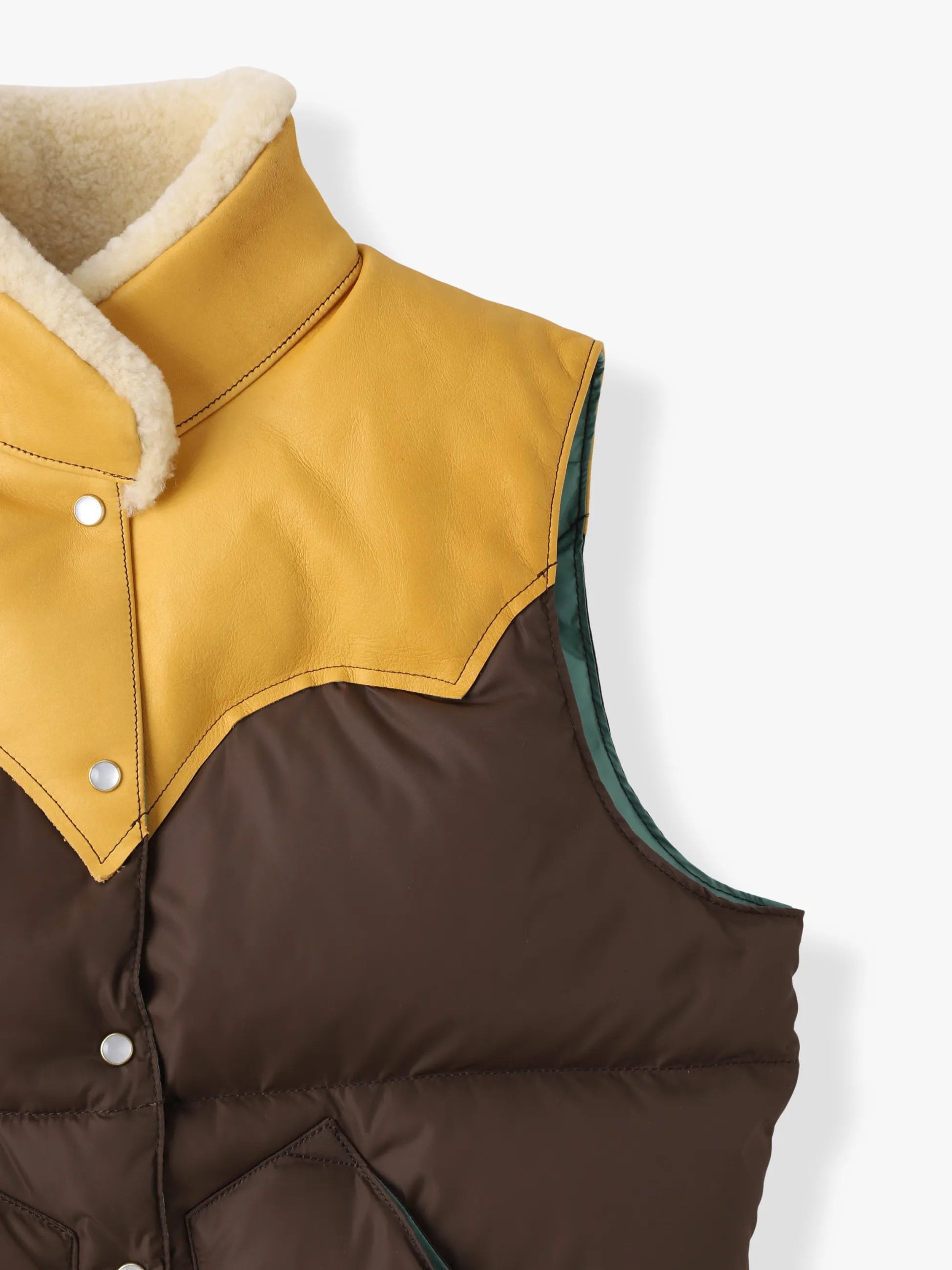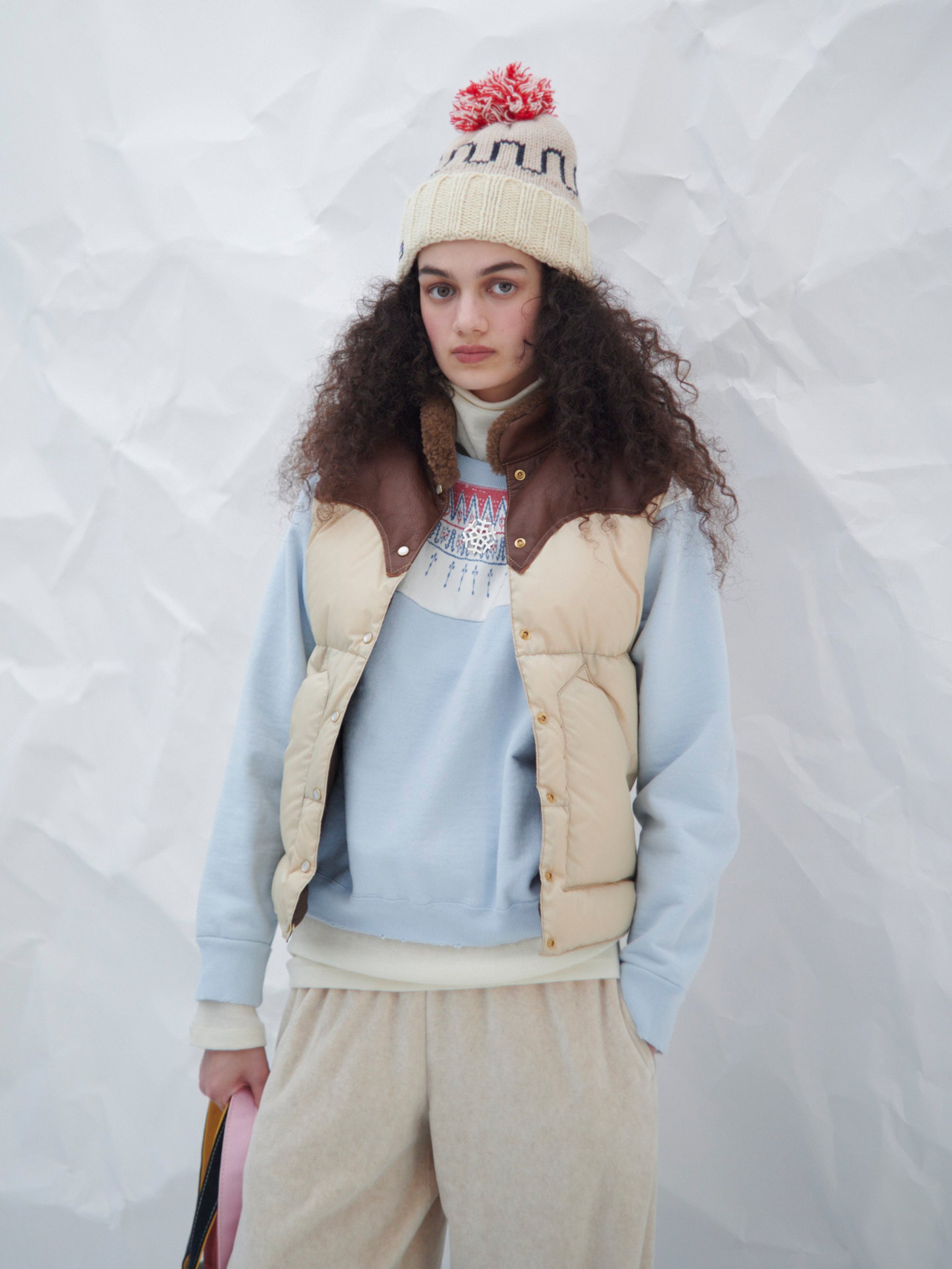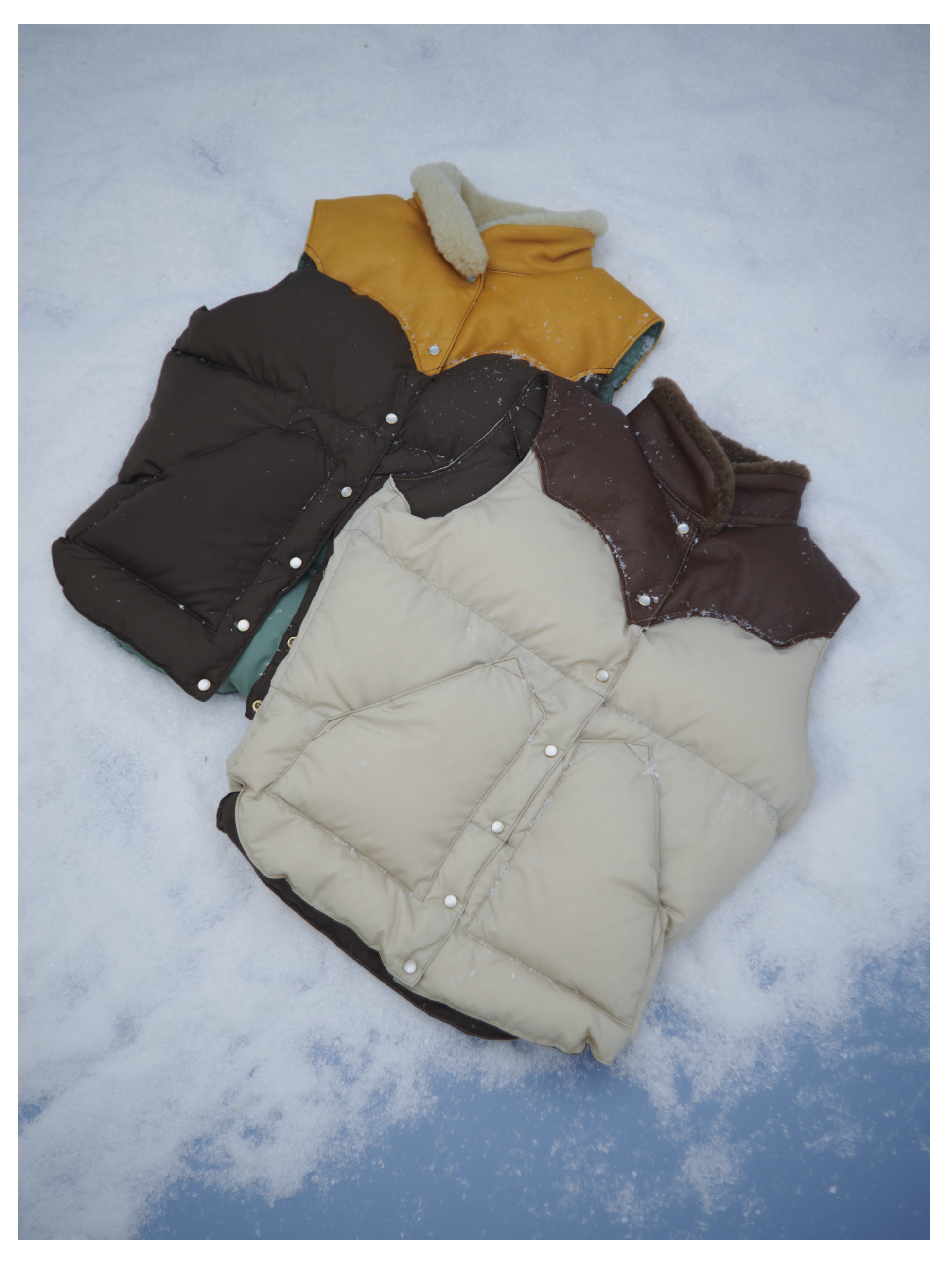 アーカイブアイテムの中から、復刻で別注したスペシャルなクリスティーベストが登場です。表地と裏地のナイロンとヨーク部分のレザーのカラーを選び、配色にしています。スタイリングにカウボーイテイストがプラスされ、デニムボトムとのカジュアルなスタイリングにも好相性です。スウェットやフーディーとのレイヤードも様になります。