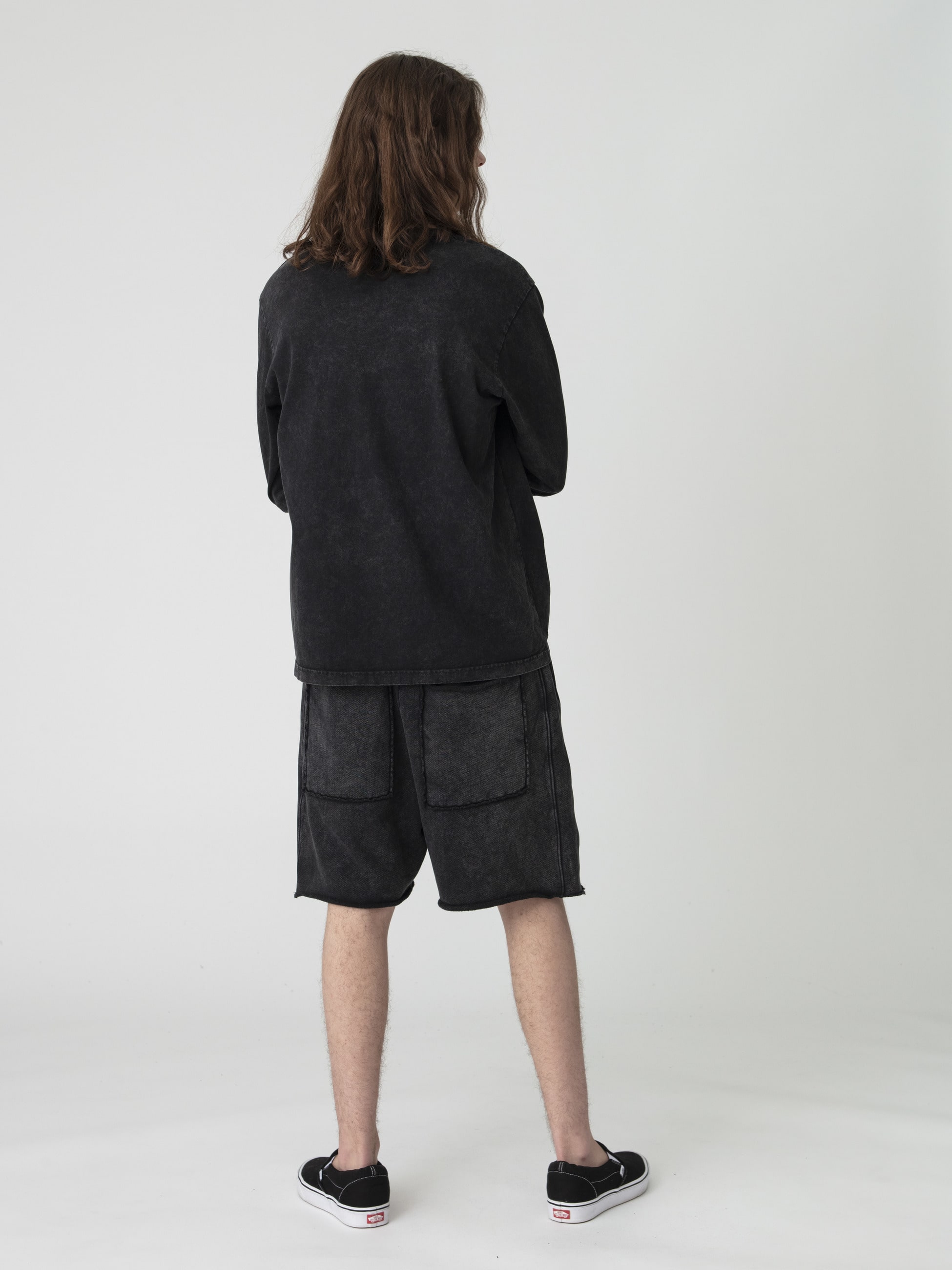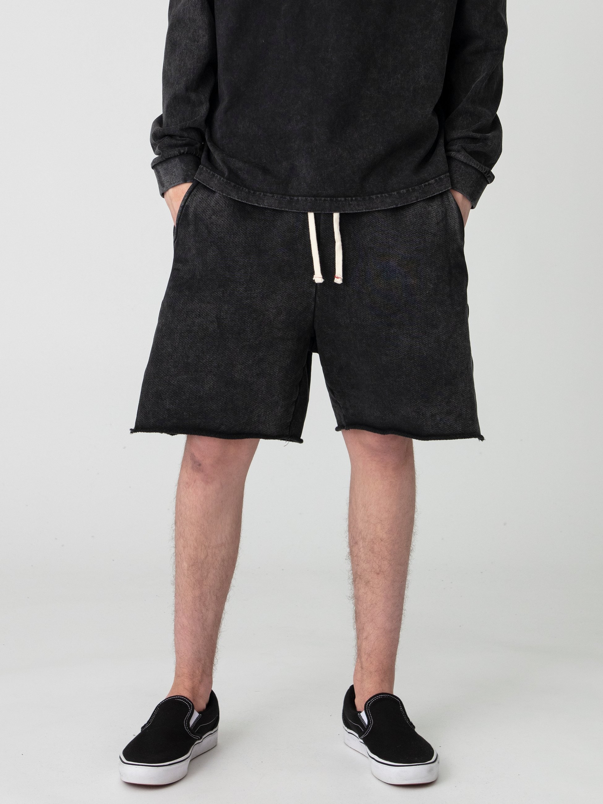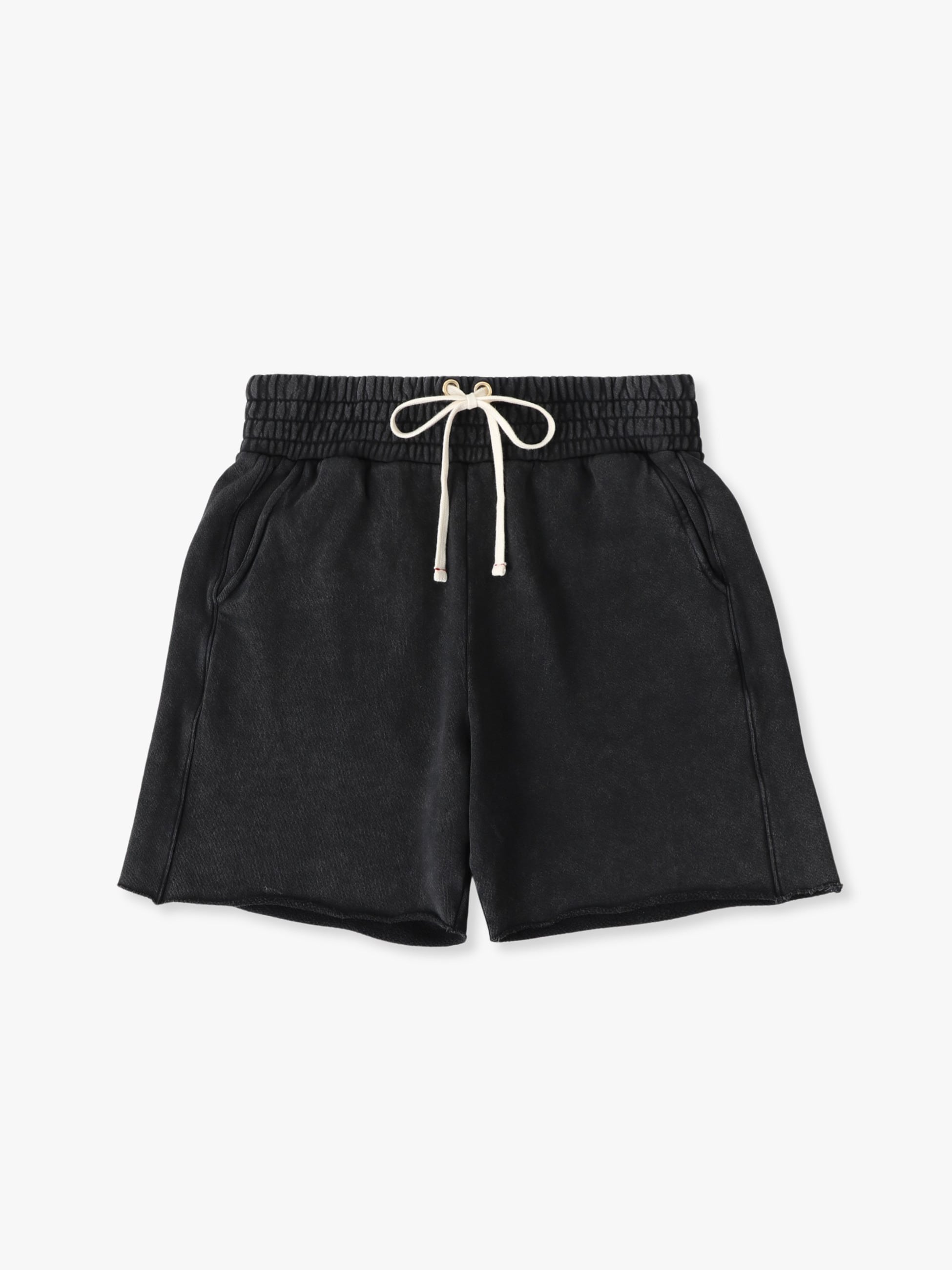 - LES TIENとの別注アイテムから、重厚かつ柔らかな風合いが特徴の「INDIGO FLEECE SERIES」をベースにしたスウェットショートパンツの登場です。通常の展開にはない「Black」カラーを、インディゴ染めと同じ工程で製作し、奥行きのあるカラーリングへアップデート。また、インディゴ染料特有の芯まで染まりきらない性質をブラックで再現することで、自然なムラ感や縫い目に現れるパッカリングを引き出しています。さらに、made in LAの肉厚なフリース素材は、着こむほどに体に馴染む経年変化を楽しめる一着です。LES TIENによるベーシックで秀逸なデザインに、RHCのエッセンスを落とし込んだスペシャルなアイテムをお楽しみください。