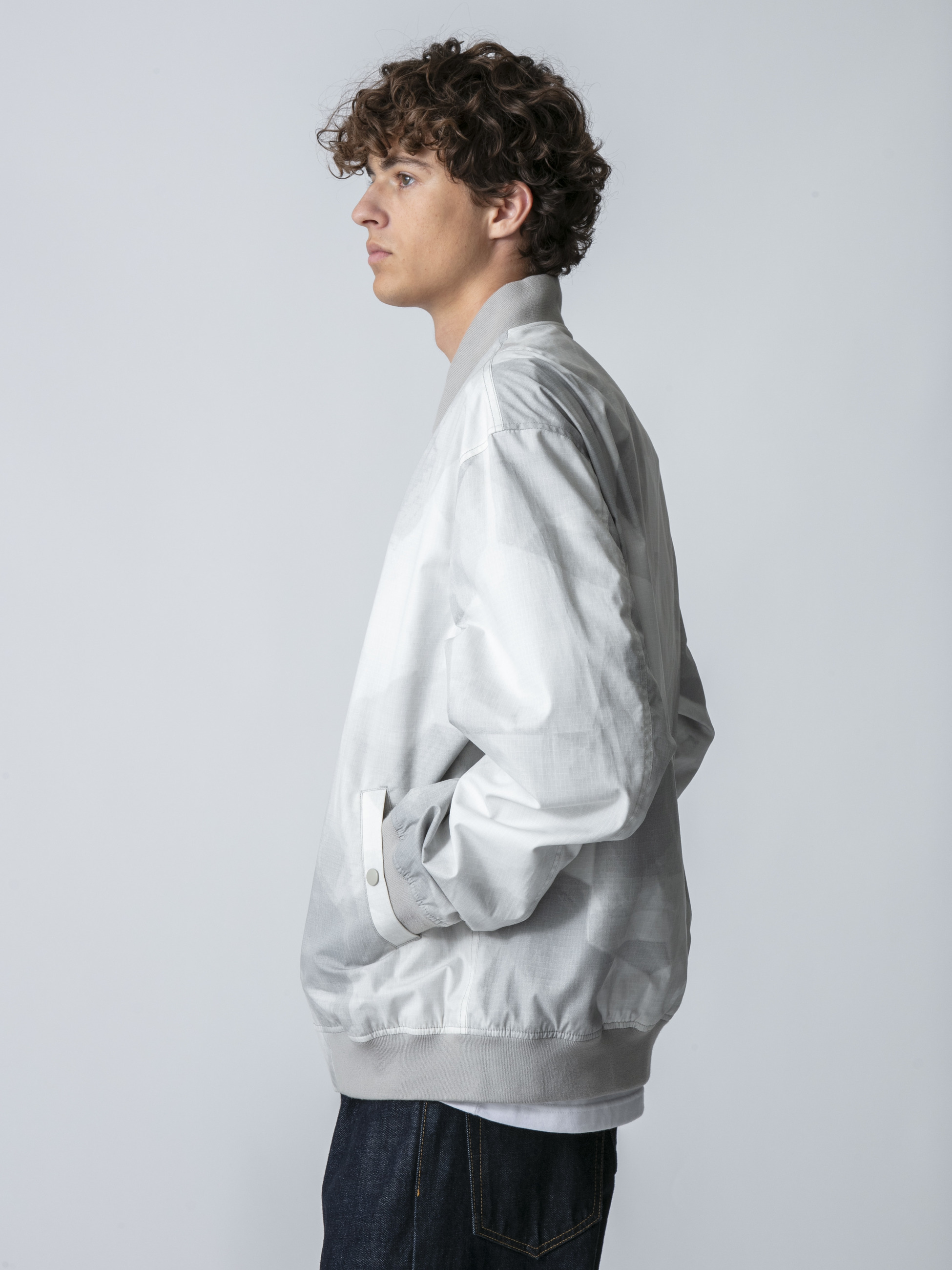 ArkAirとの別注アイテムから、英国軍をはじめとして、世界中の部隊で採用実績のある柔らかで軽やかなコットン50%とポリエステル50%の混紡リップストップ生地を使用した、MA-1が登場です。DWR加工が施された生地は、優れた耐久性撥水により、雨天時でも浸水を防ぎ、ドライな肌触りを実現します。また、パターンを一から別注した、程よくゆったりとしたフィットも魅力のひとつ。さらに、whiteカラーは独自開発された、大きなぼやけた六角形のモフラージュ柄がアクセントになっています。ArkAirによるミリタリーウェアが持つ高品質なファブリックと、RHCのエッセンスが合わさったスペシャルなアイテムをお楽しみください。