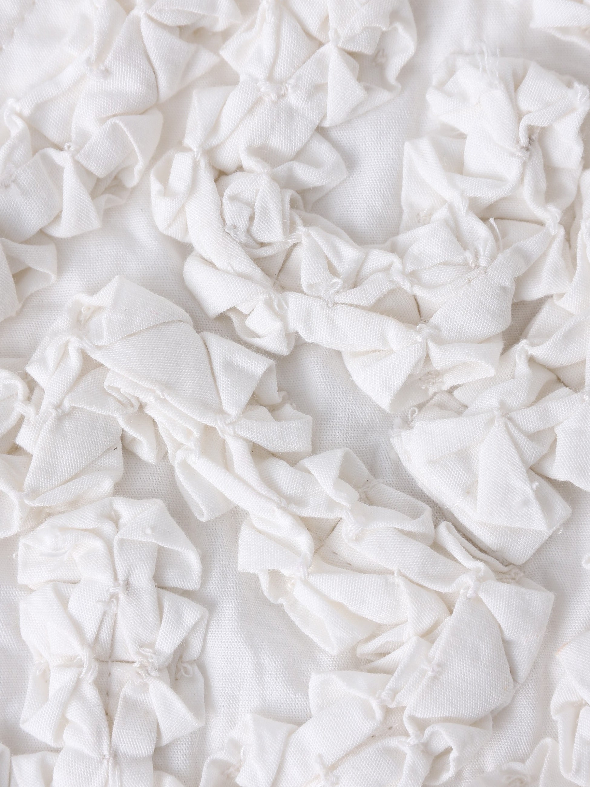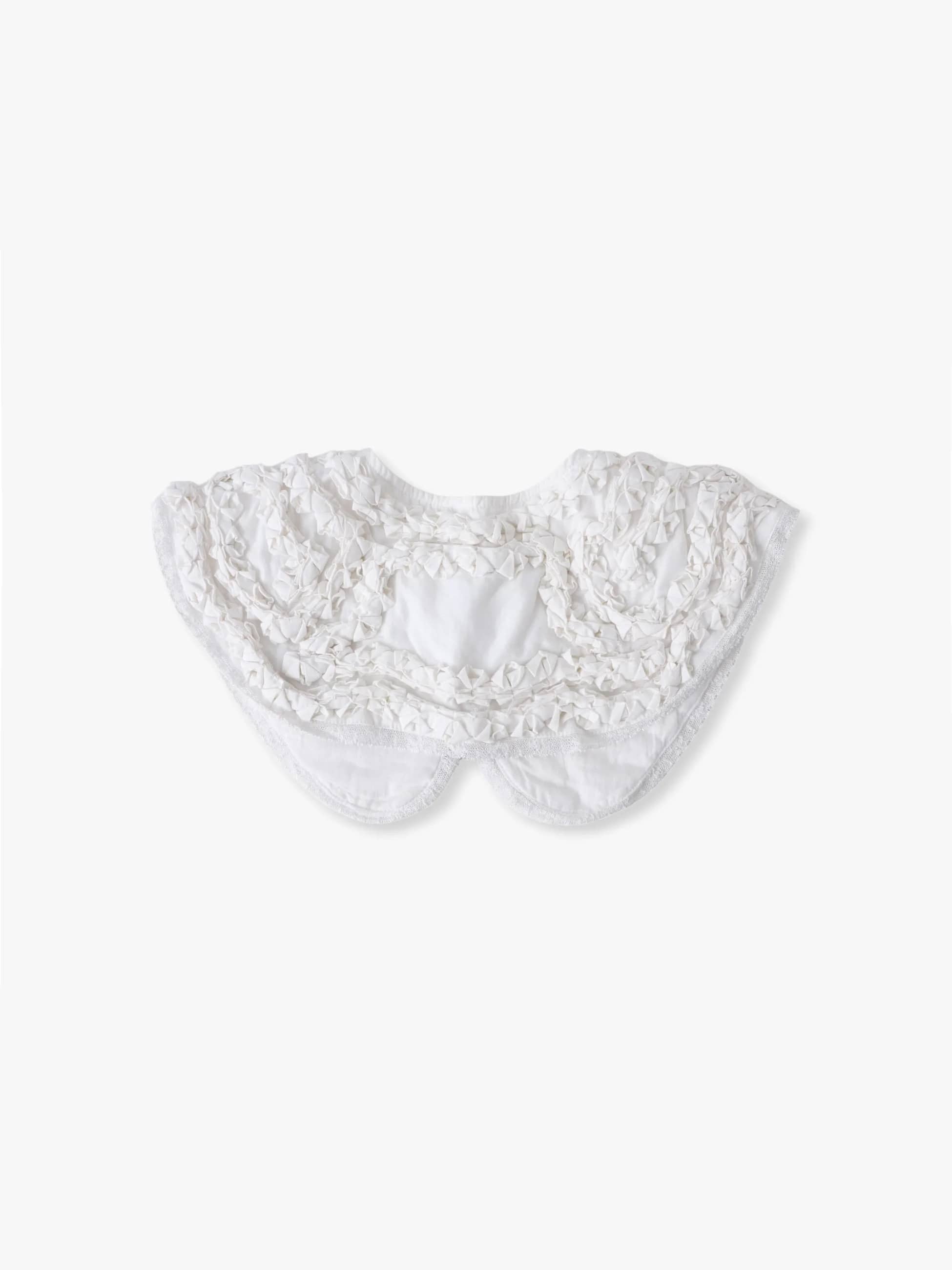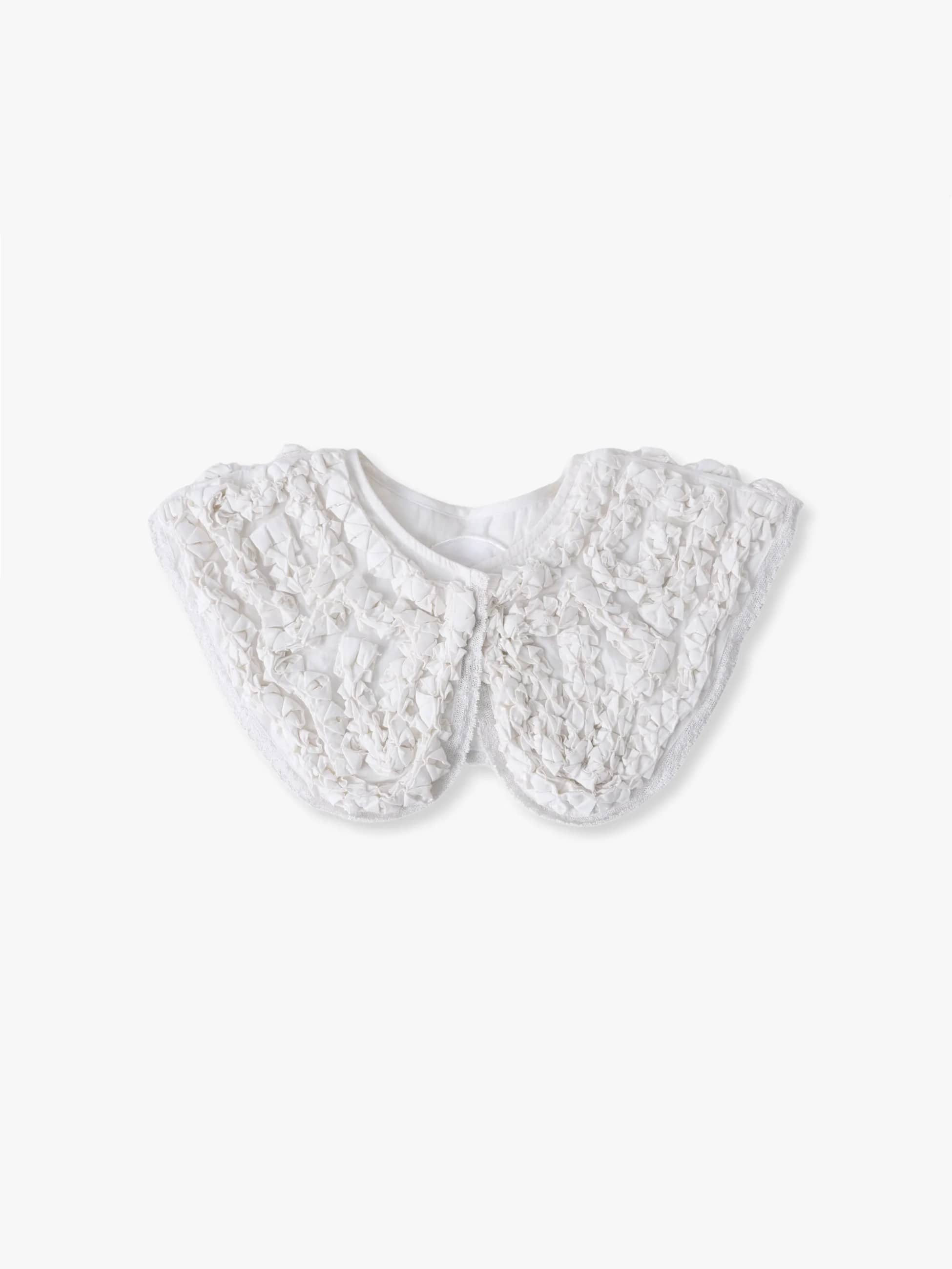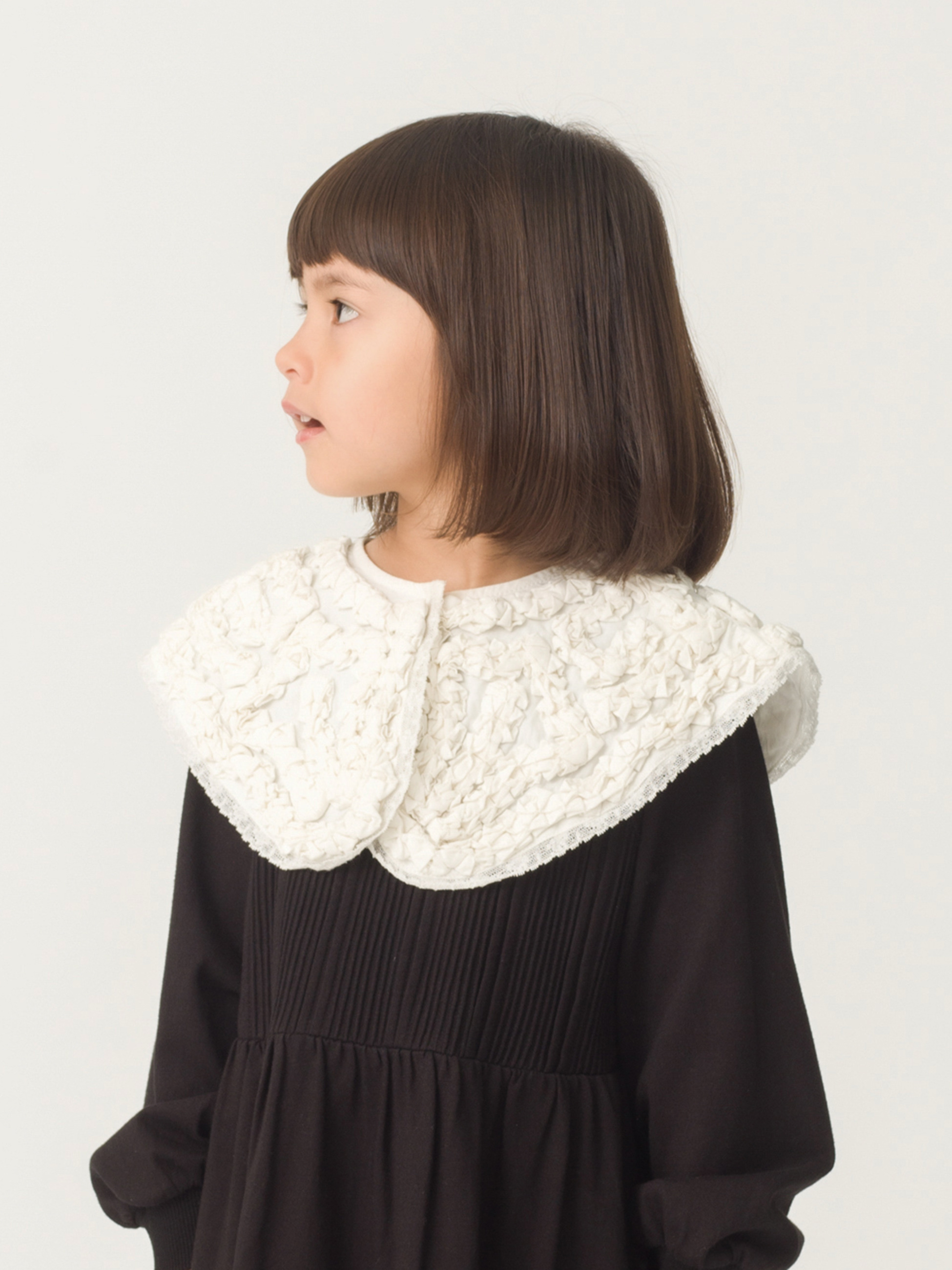 ロンハーマンキッズで別注した特別なアナベルカラーが登場です。職人の技術により、折り紙のように一つ一つ丁寧にタックを織り上げ、フリルのような立体感と、ヘムラインにあしらわれたレースが思い切りキュートな仕上がりに。クリアなホワイトと、モノトーンのギンガムチェックの2色展開で、カットソーやワンピース、アウターの上から重ねるだけで、スタイリングをより華やかに演出します。